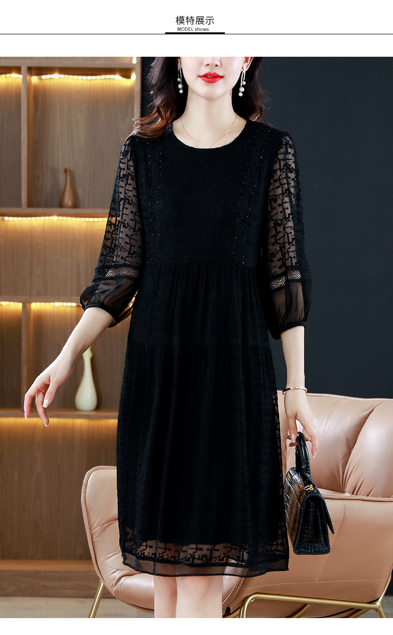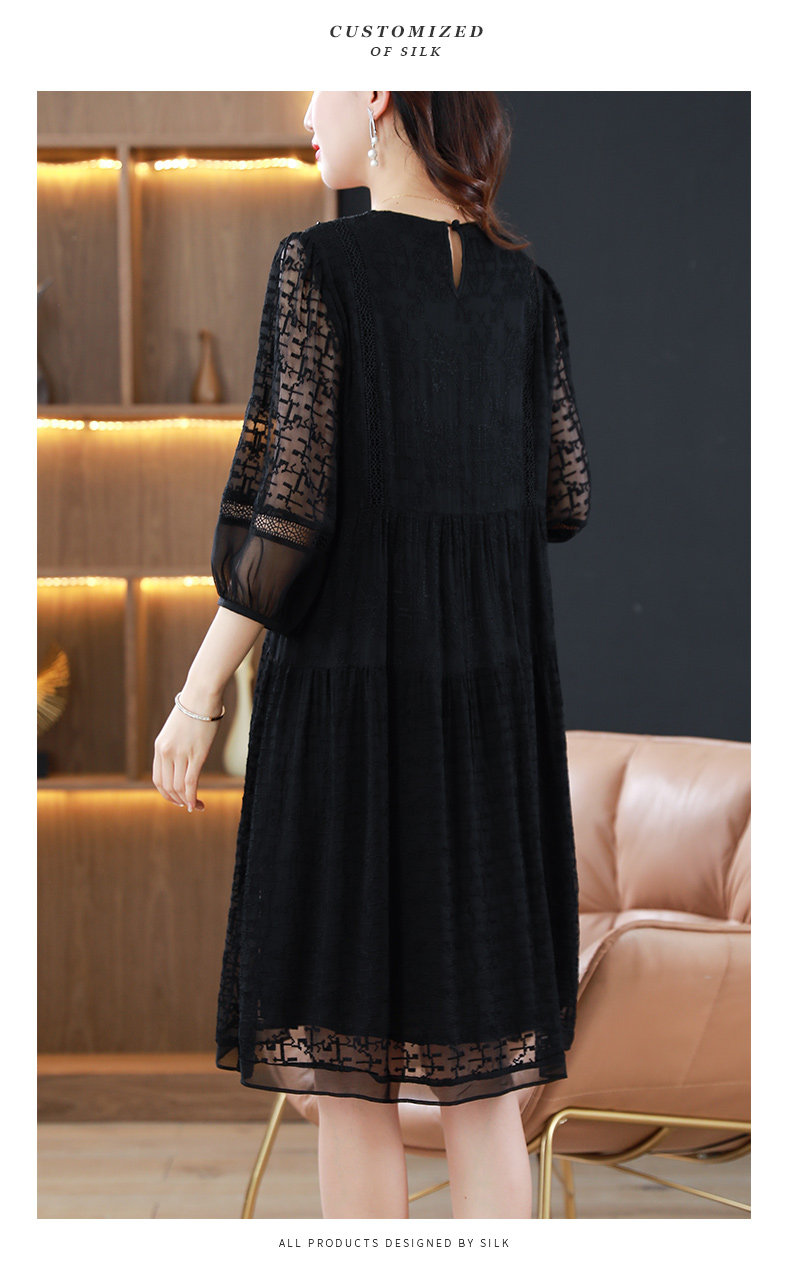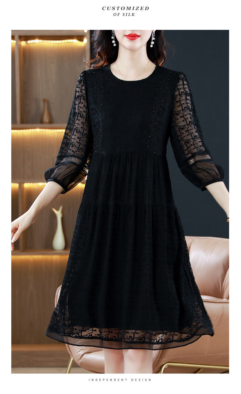 杭州大牌真絲桑蠶絲連衣裙2026新款夏季杭州黑色刺綉寬鬆大碼裙子