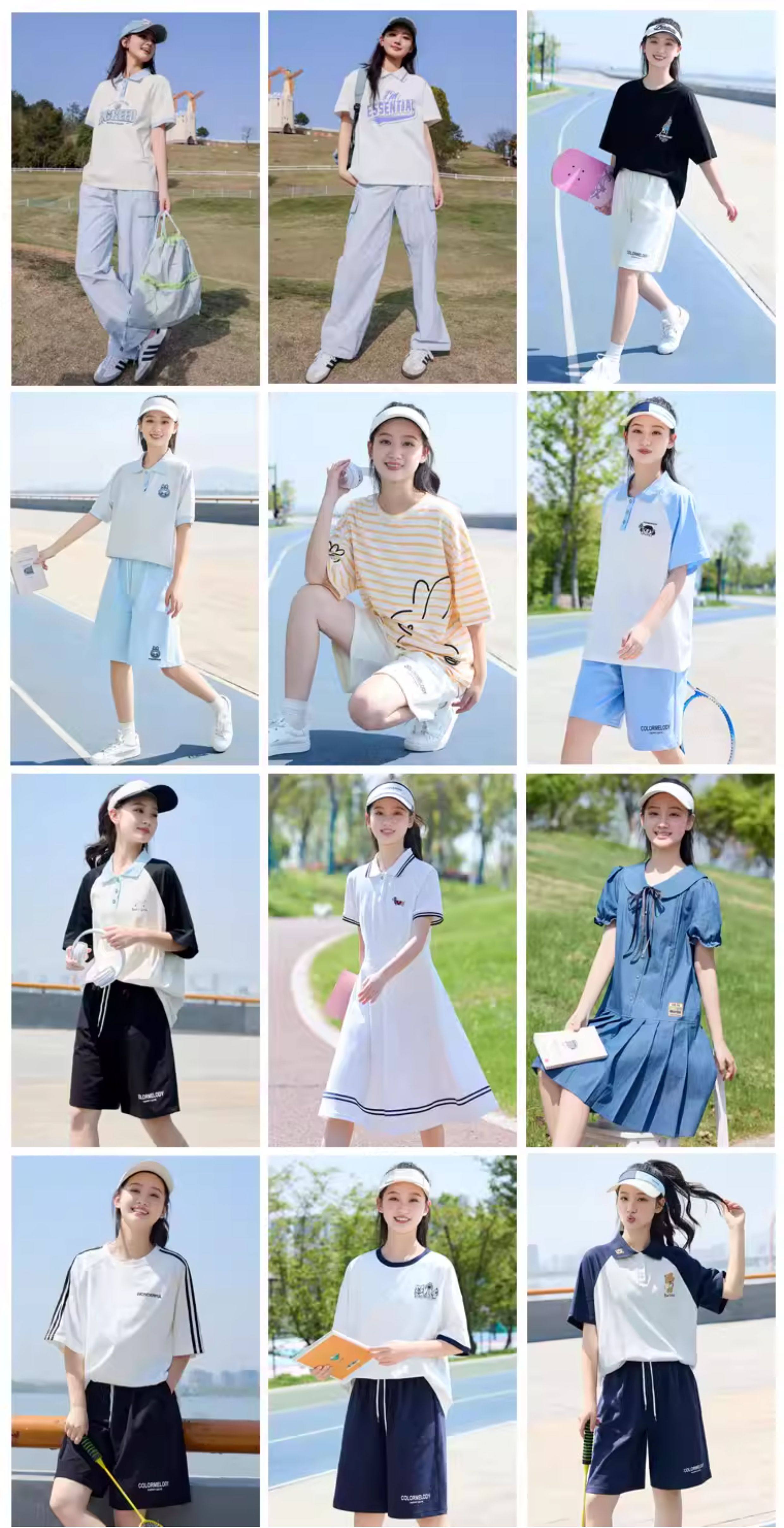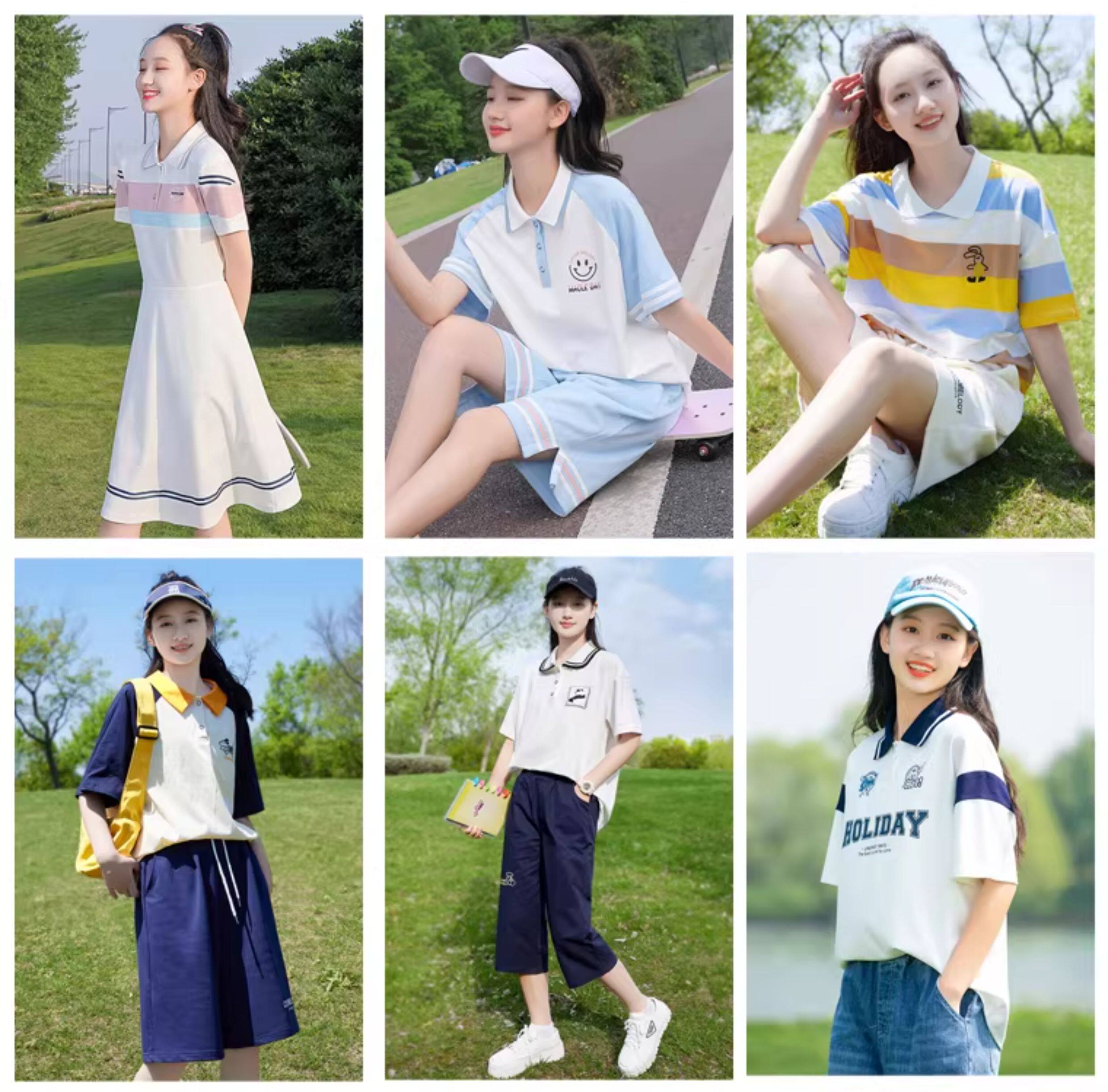 少女連衣裙甜美收腰初中生夏裝12嵗13大童16學生POLO裙學院風裙子