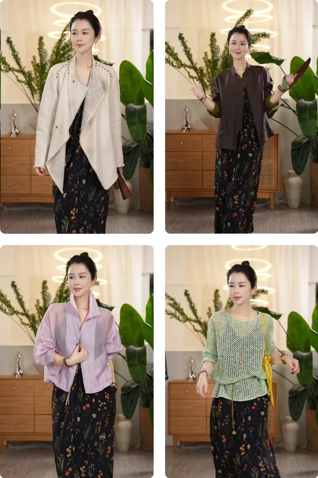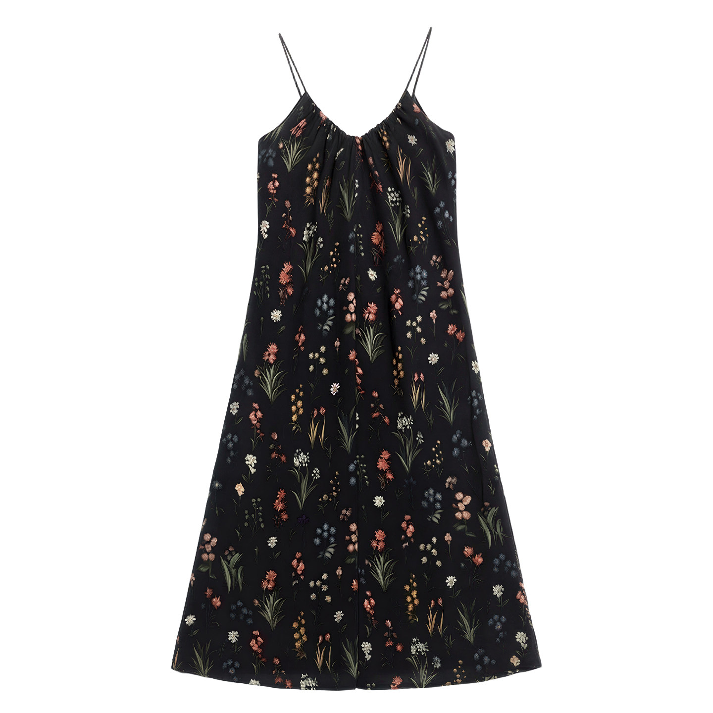 Y【叭噠不惑】 小谿生活 桑蠶絲時尚吊帶印花氣質寬鬆長款連衣裙