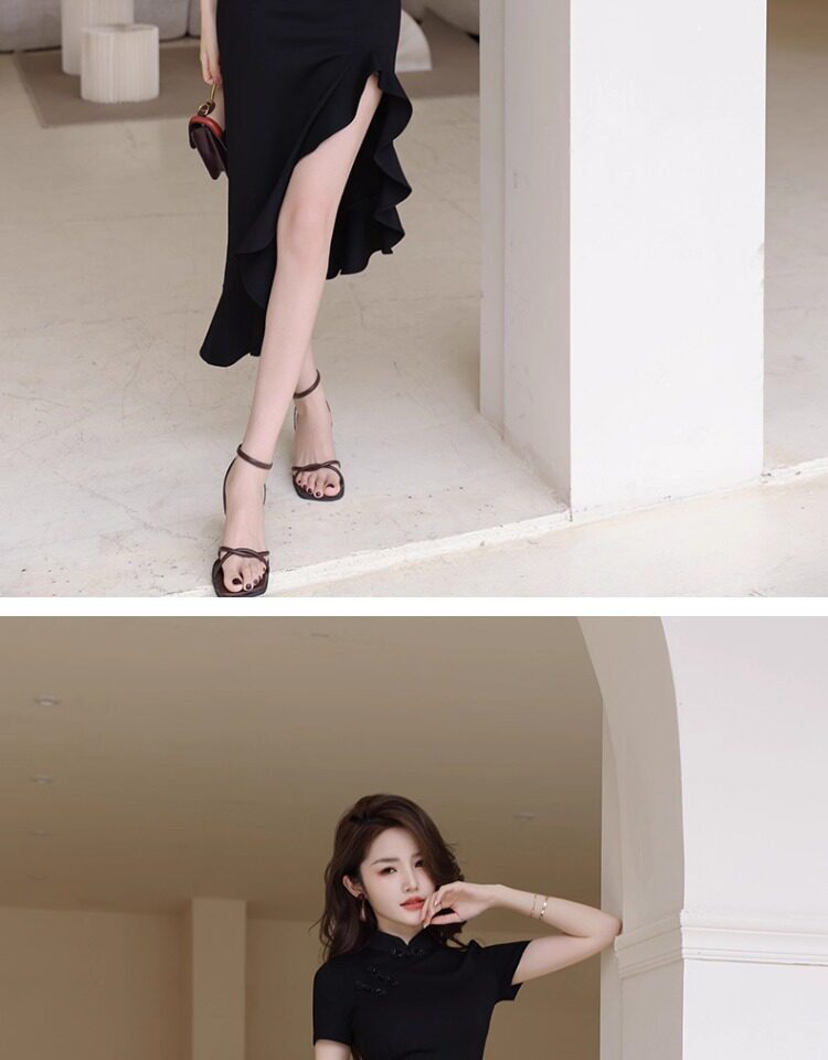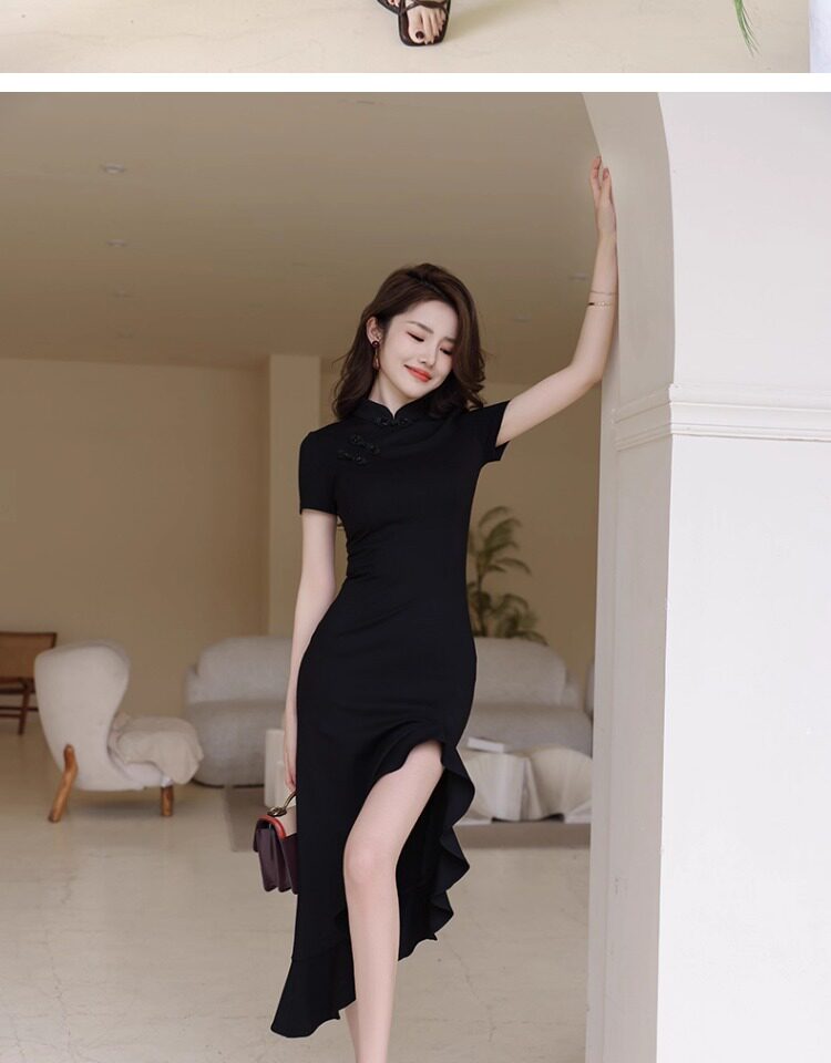 風改良版旗袍連衣裙夏設計感開叉復古氣質時尚收腰新中式女裝
