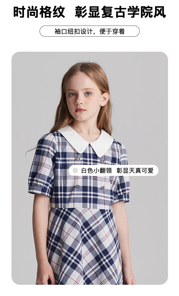 eland kids衣戀童裝女童連衣裙夏季兒童復古學院風格紋裙子洋氣
