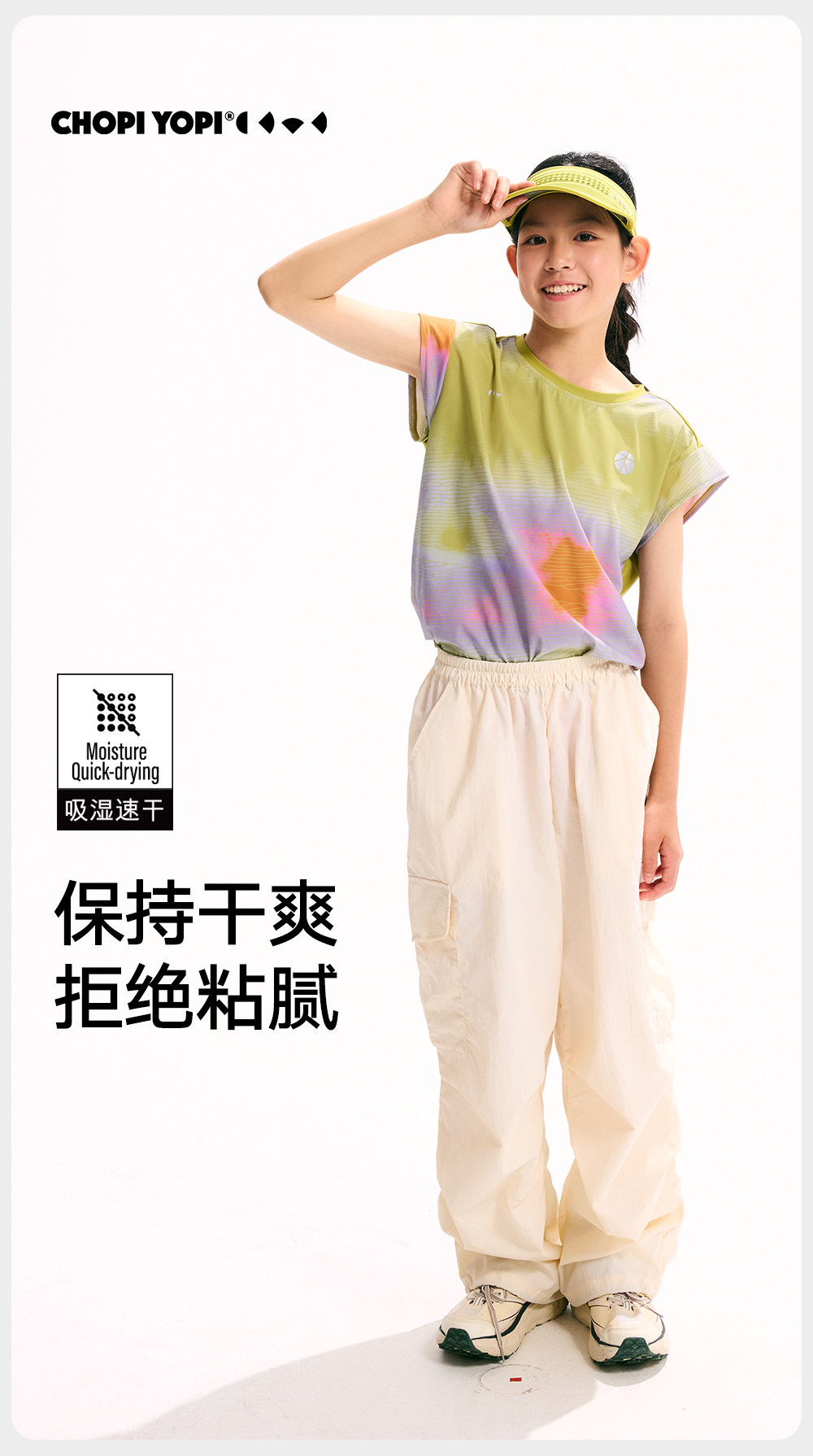 chopiyopi【薄荷皮】女童印花速乾飛袖T恤夏季新款防曬涼感運動T