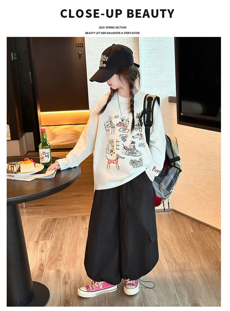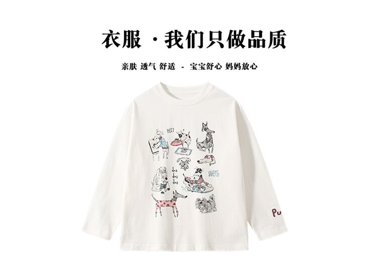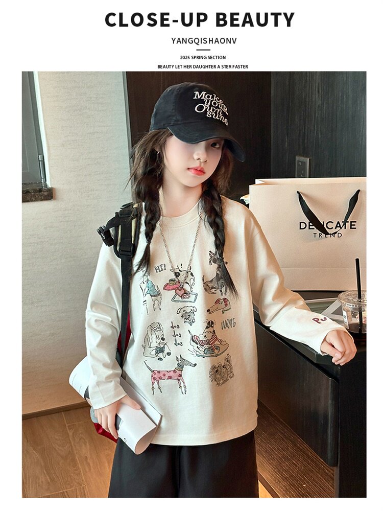 女童卡通印花小狗長袖防曬T恤2026春夏新款洋氣寬鬆薄款韓系上衣