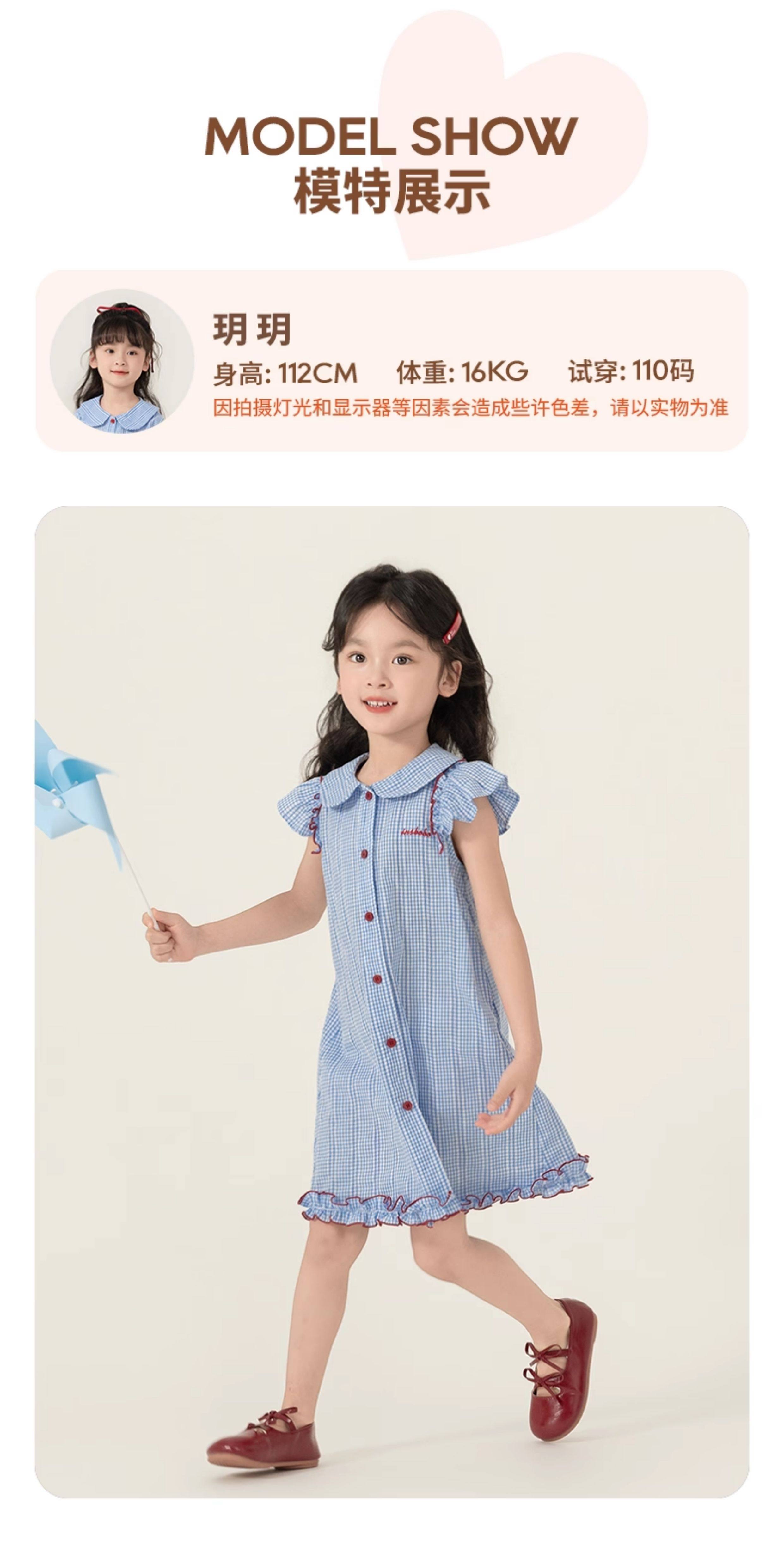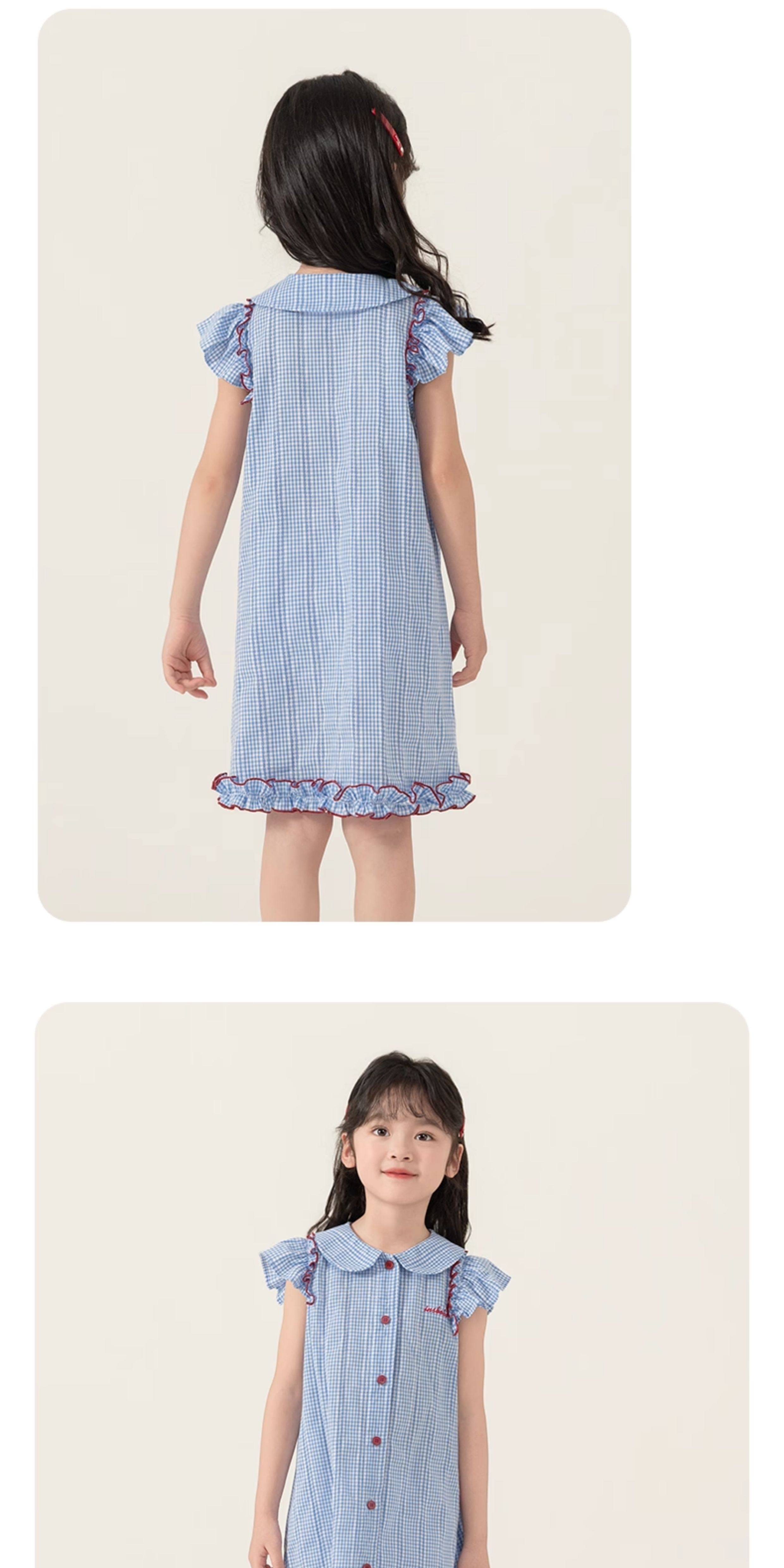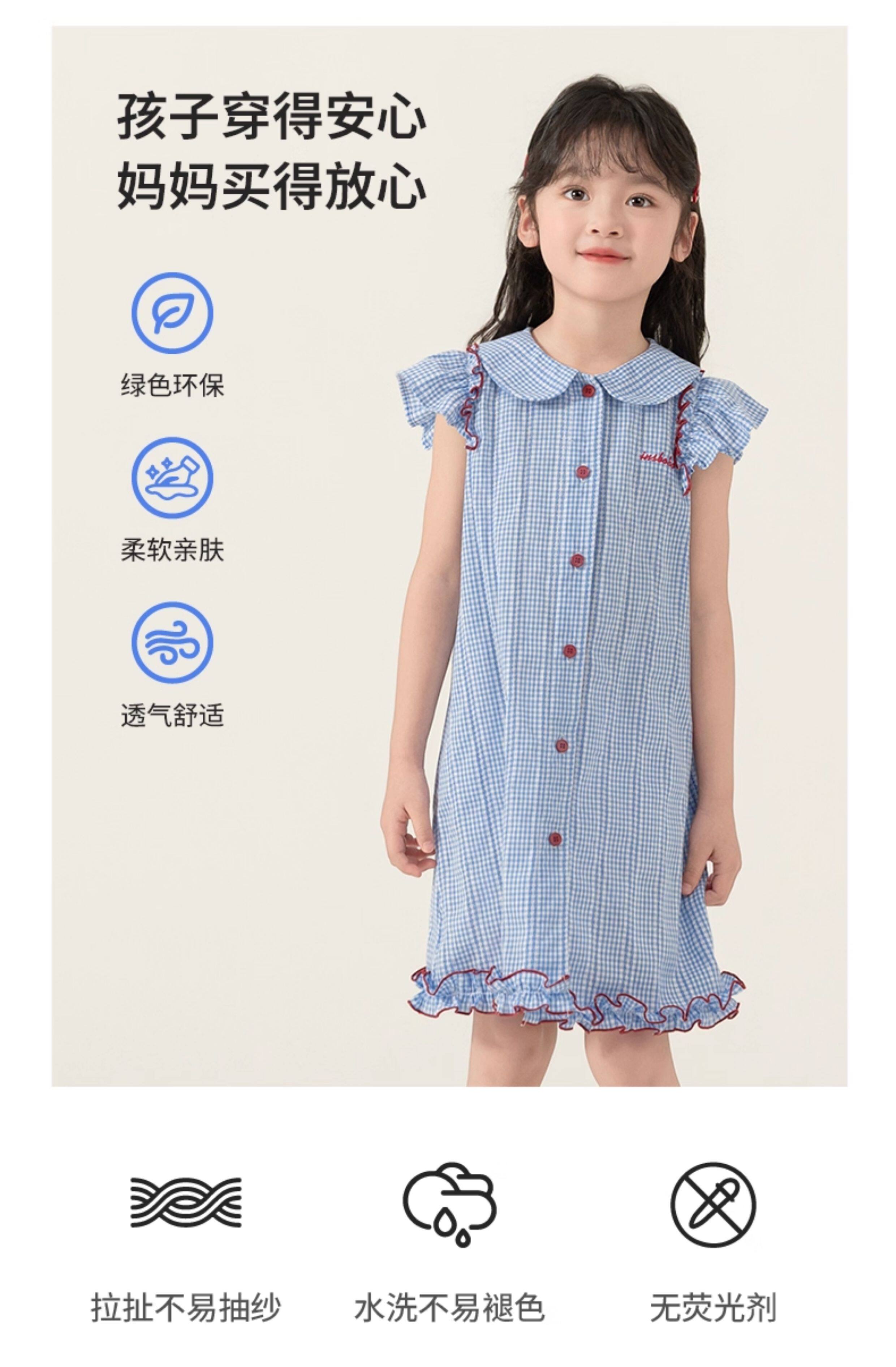 女童連衣裙兒童裙子女孩格子裙大童超好看夏裝高級感童裝漂亮衣服