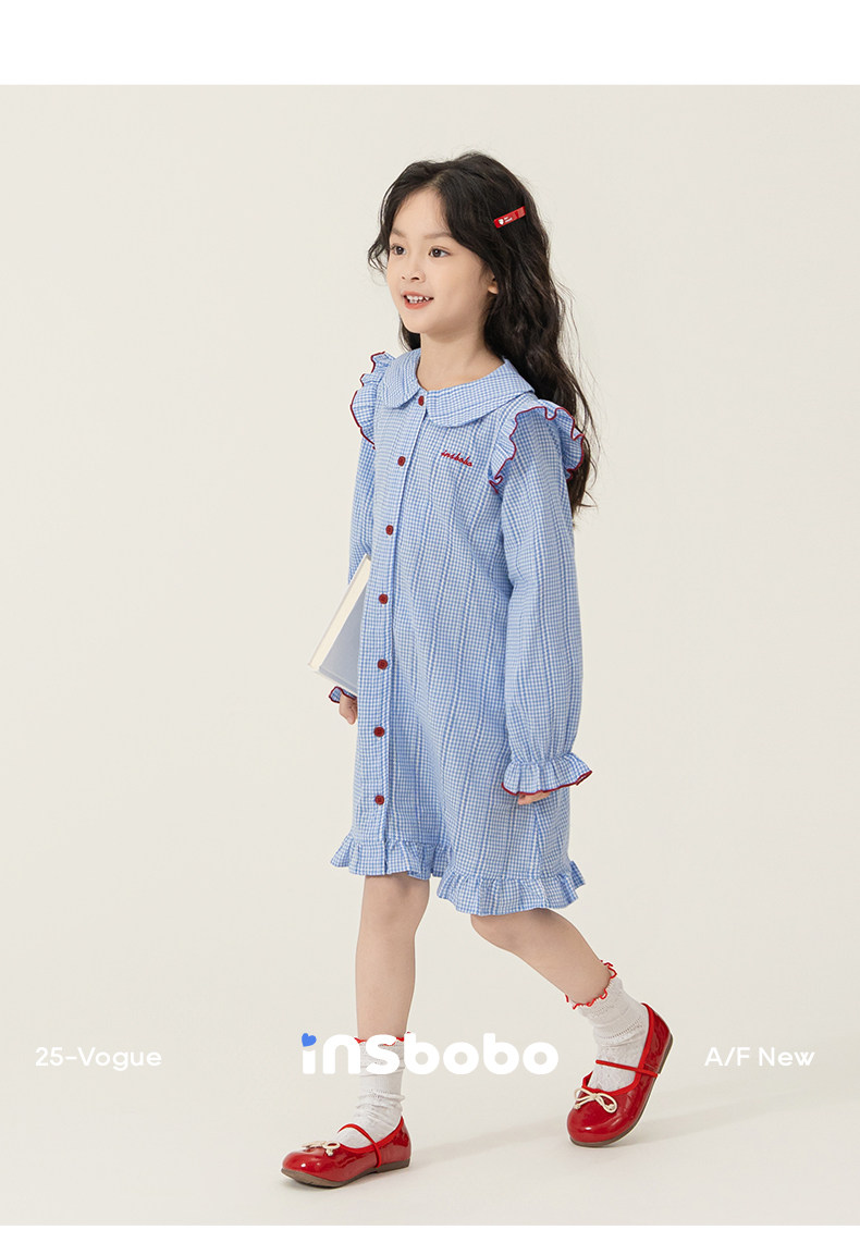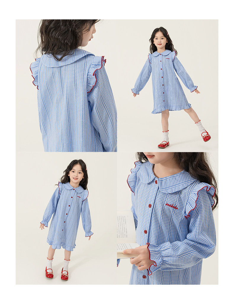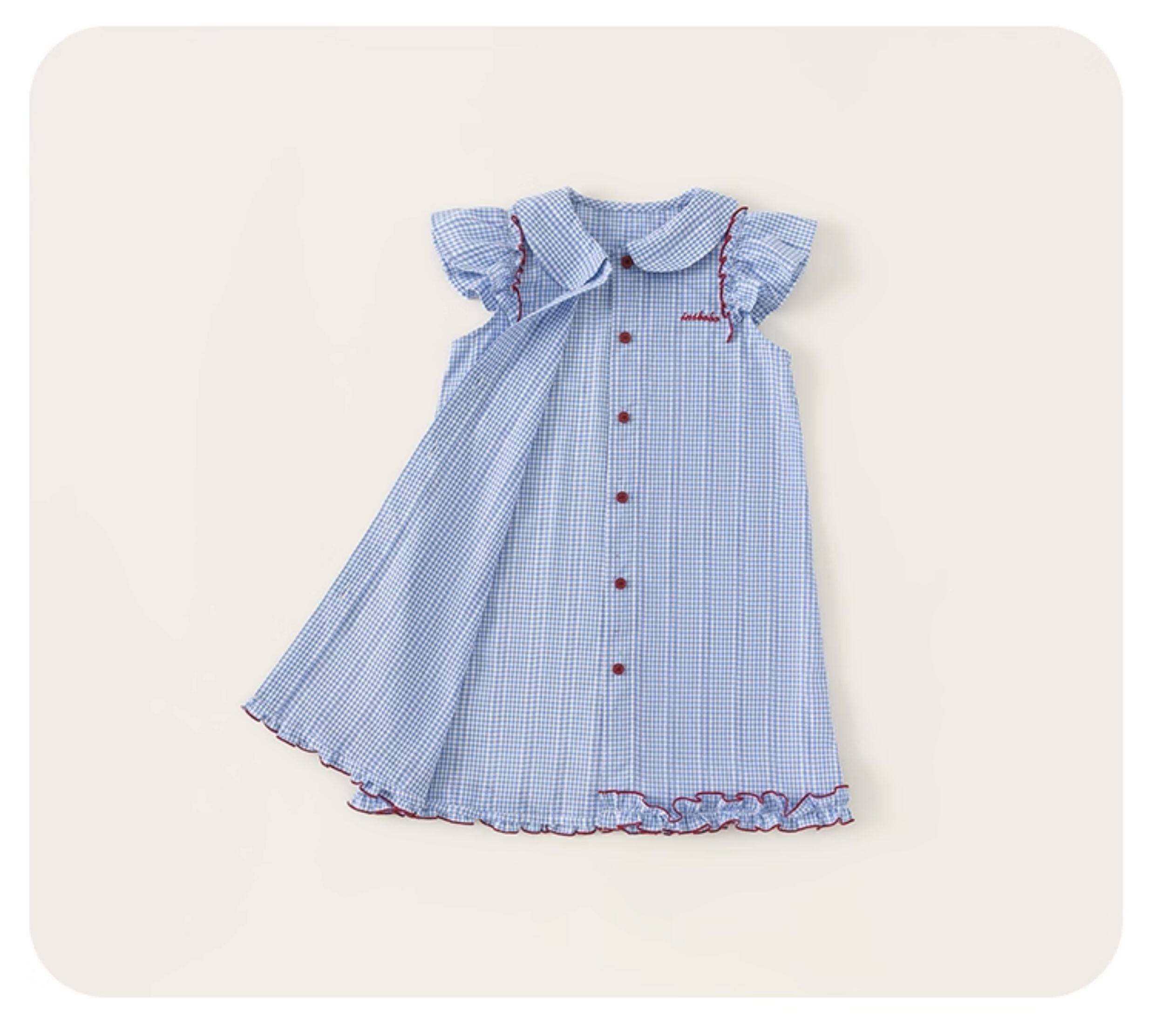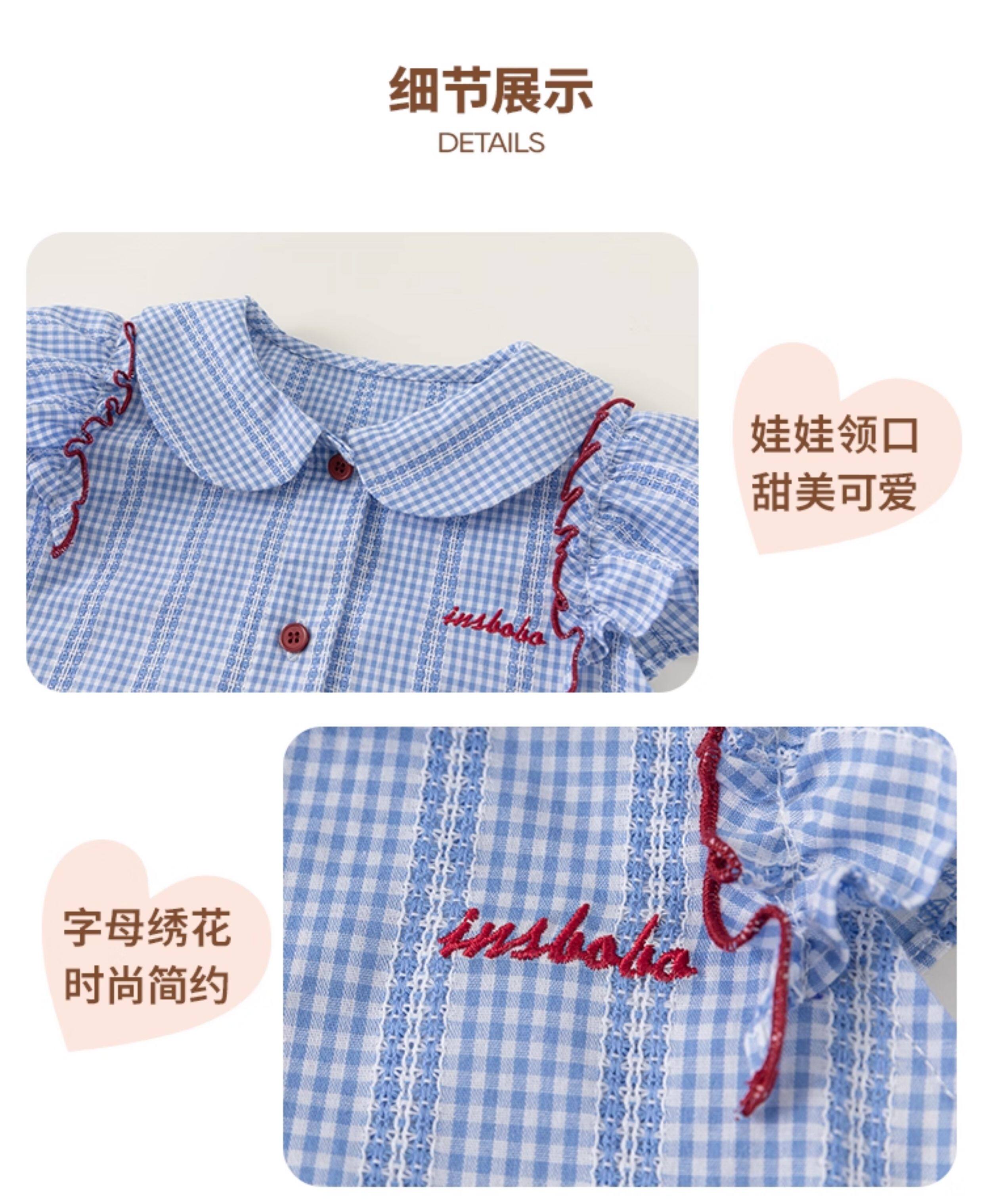 女童連衣裙兒童裙子女孩格子裙大童超好看夏裝高級感童裝漂亮衣服