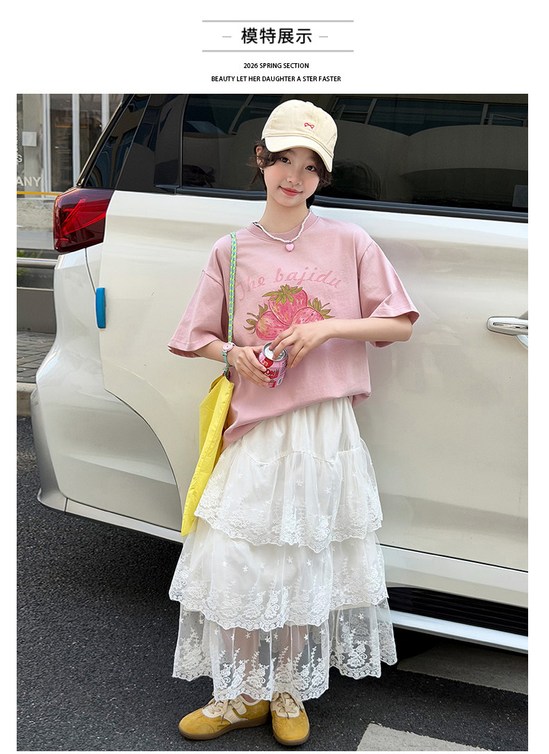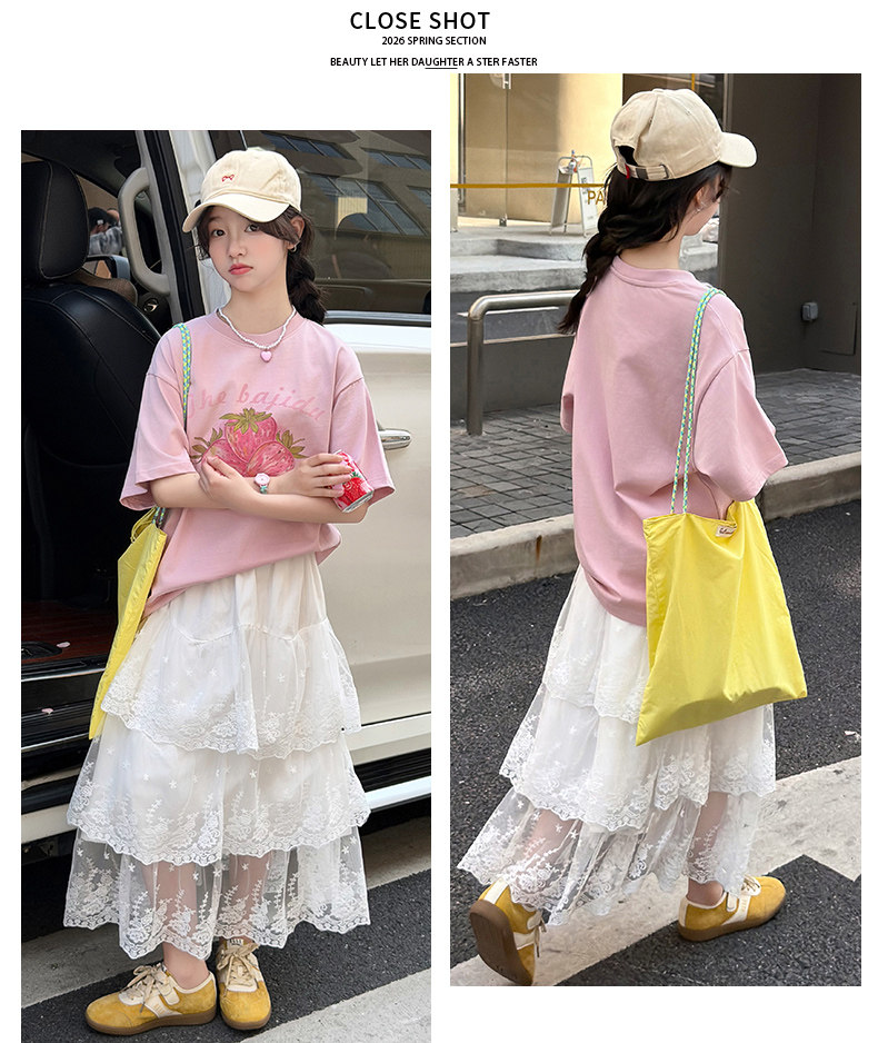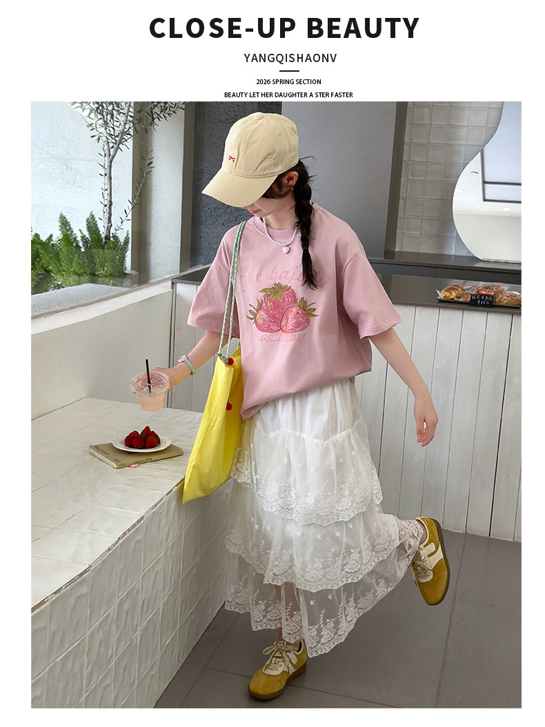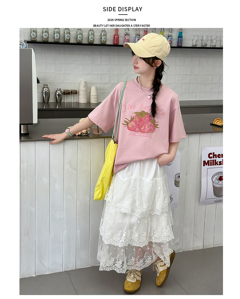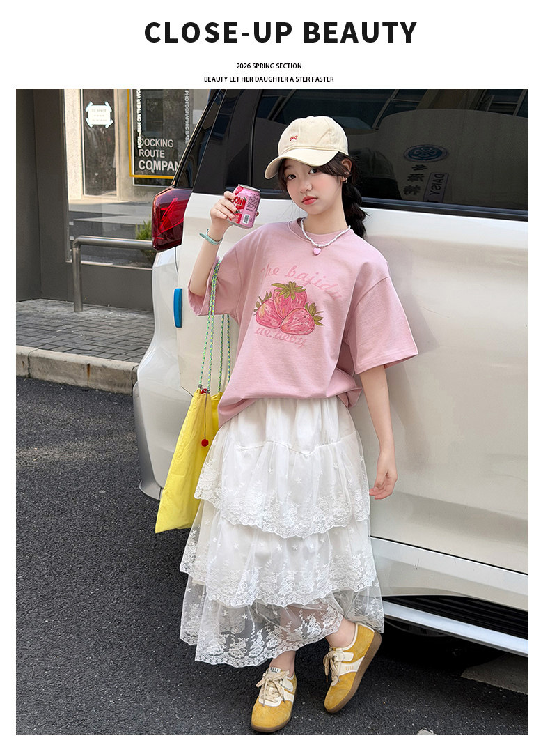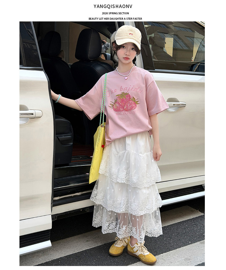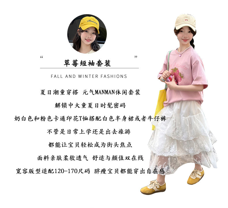 女童夏季蛋糕裙套裝2026新款洋氣女大童夏裝半身裙兒童短袖兩件套