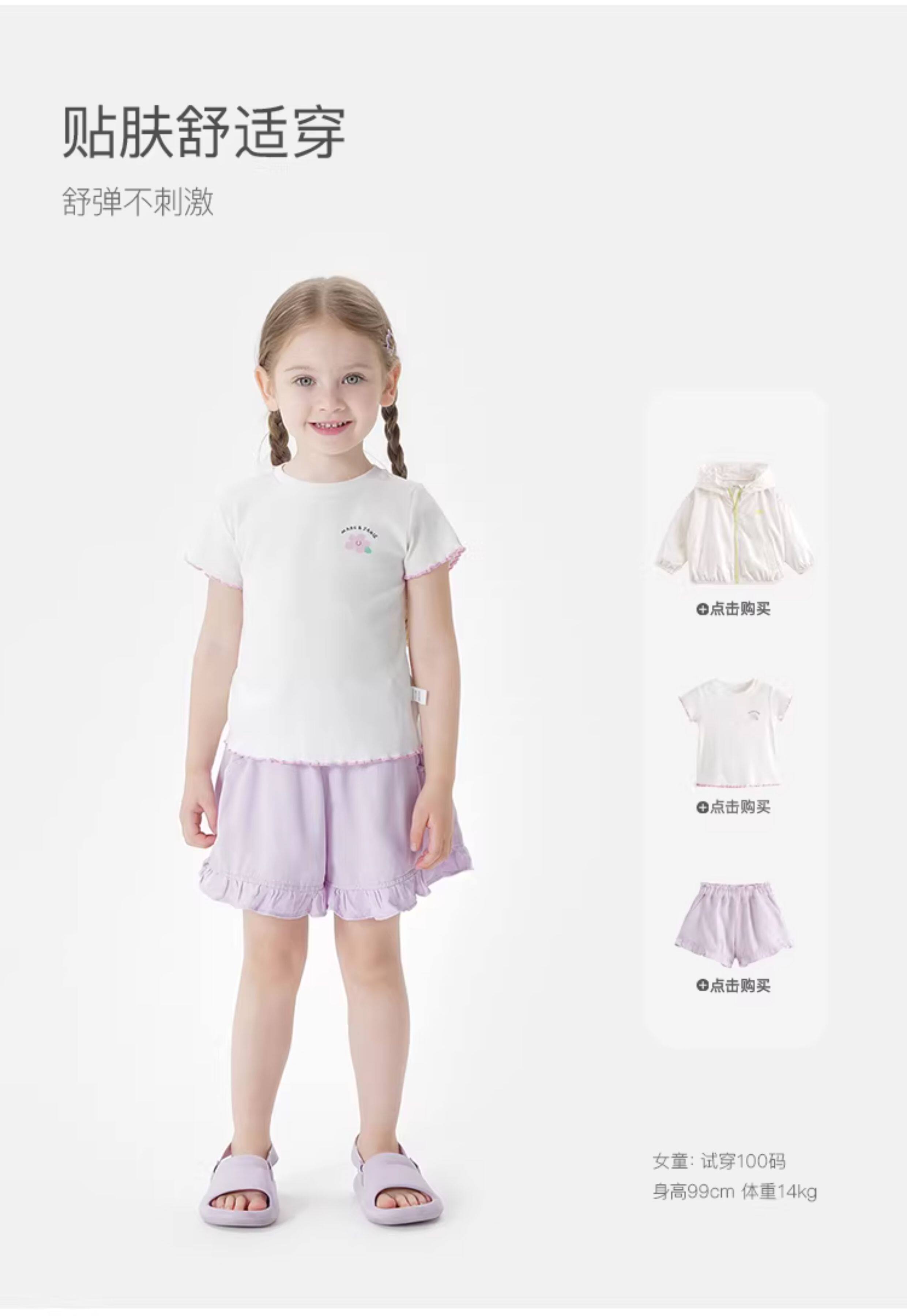 馬克珍妮女童繽紛夏日花邊彈力短袖T恤 兒童上衣夏裝新款550902