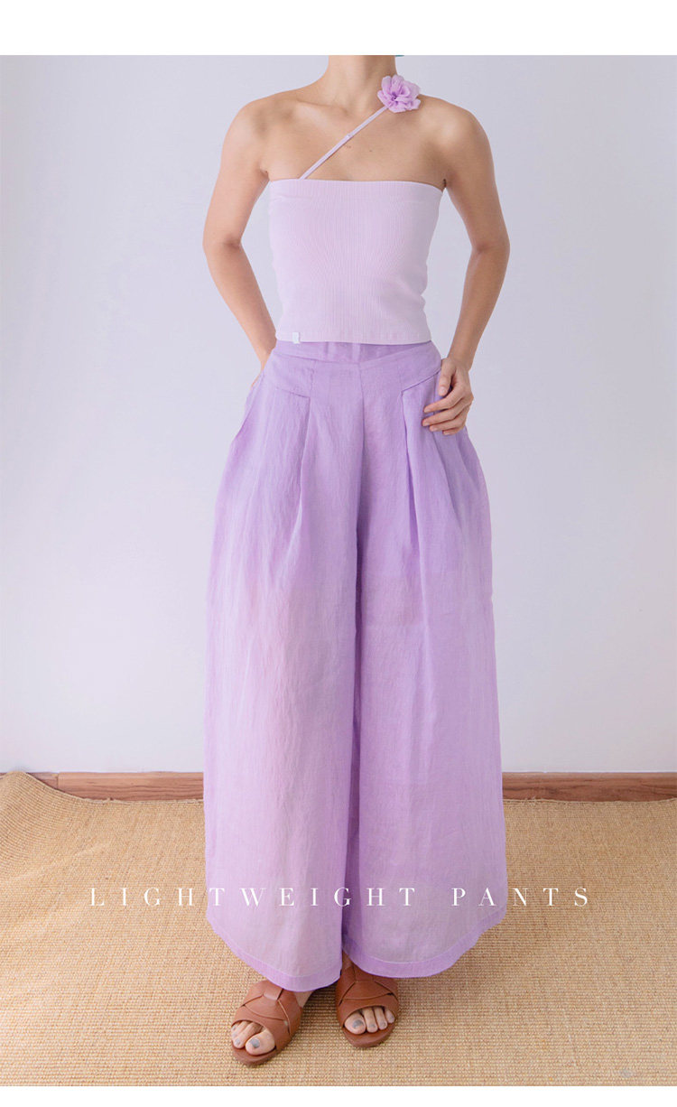 slenddy輕盈褲舒適寬鬆休閒褲輕薄透氣長款濶腿褲女春夏裙褲S6018