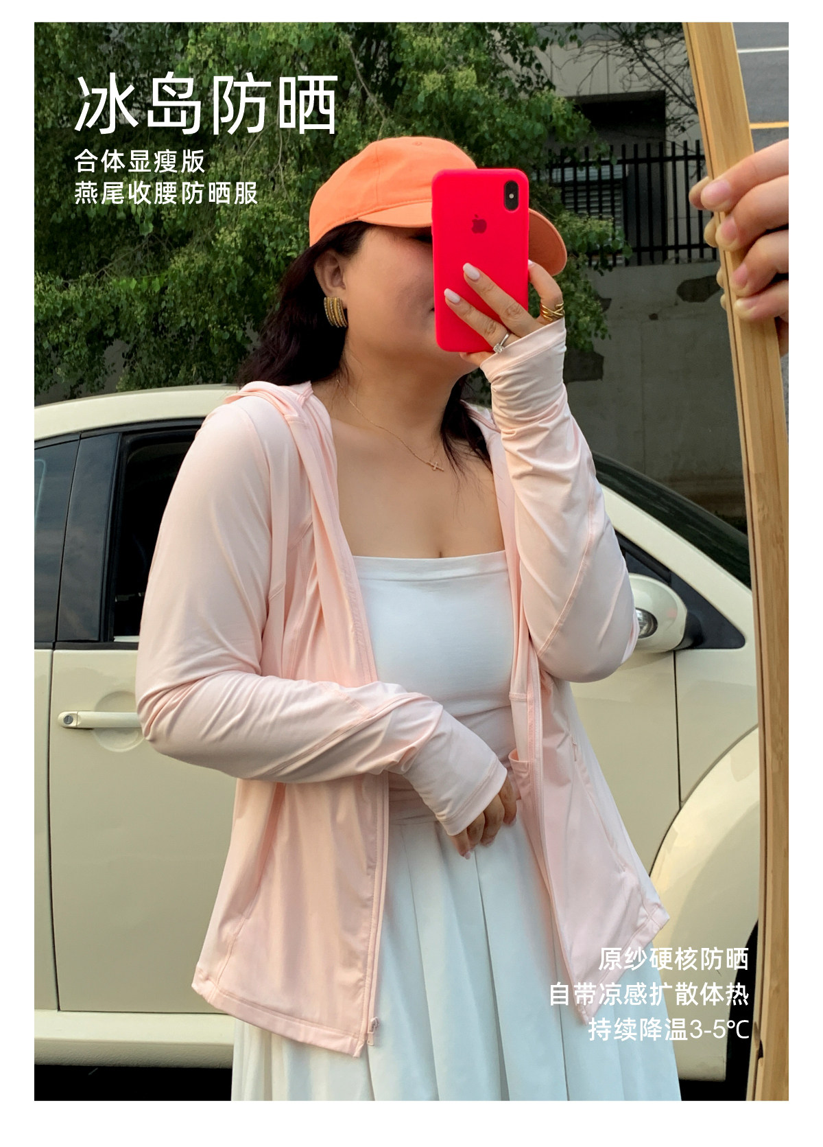 UPF50+胖mm合體收腰原紗防曬衣夏木子理想大碼燕尾輕薄顯瘦防曬服