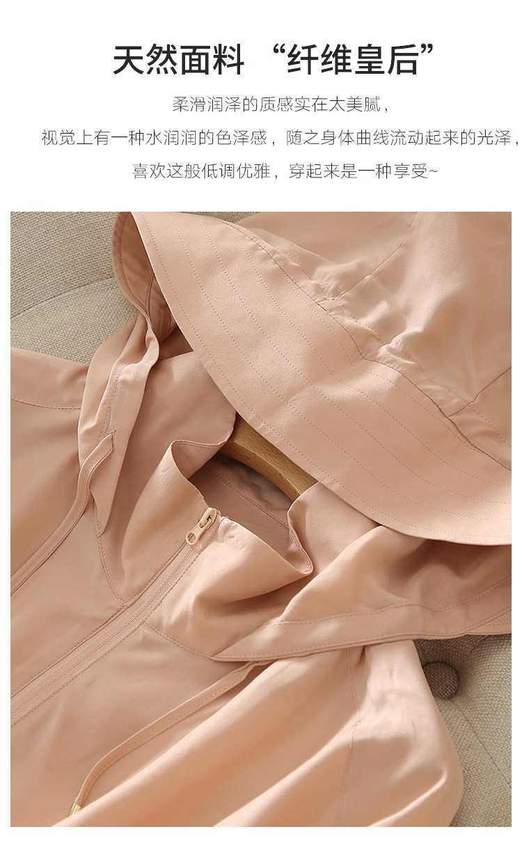 UPF50+防曬服100%桑蠶絲連帽防曬衣女夏季寬鬆休閒外穿真絲上衣