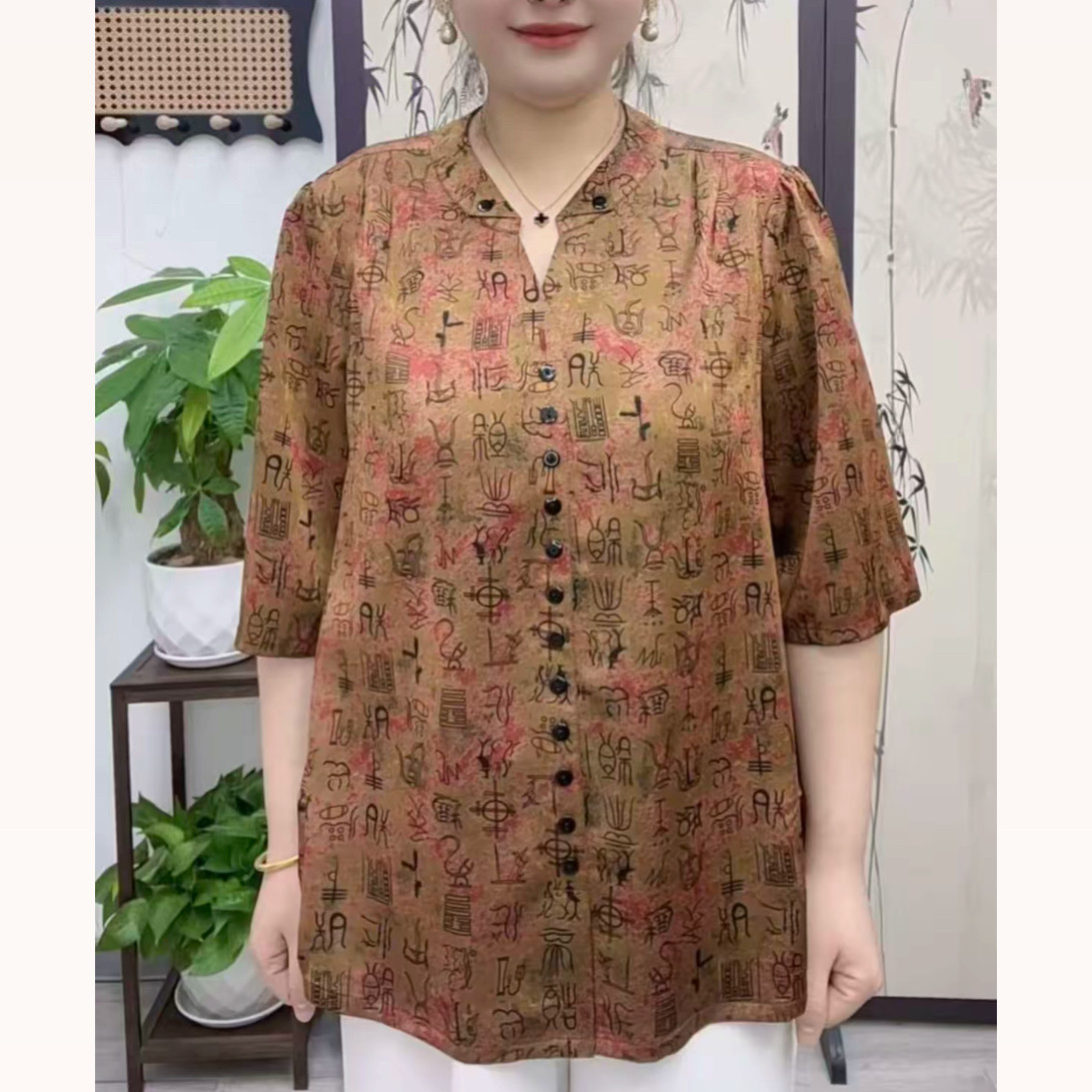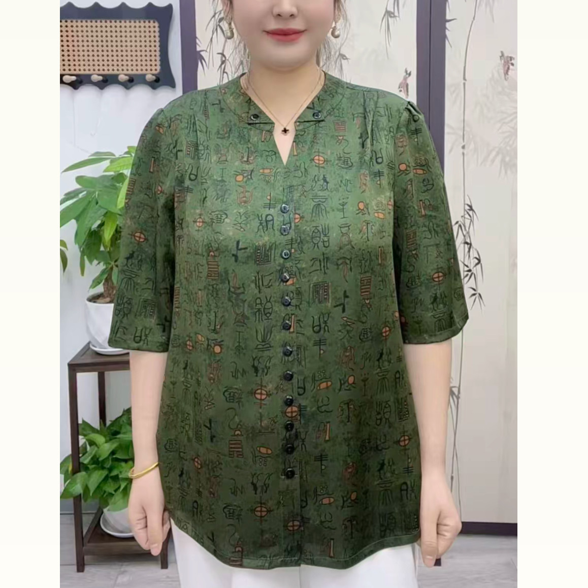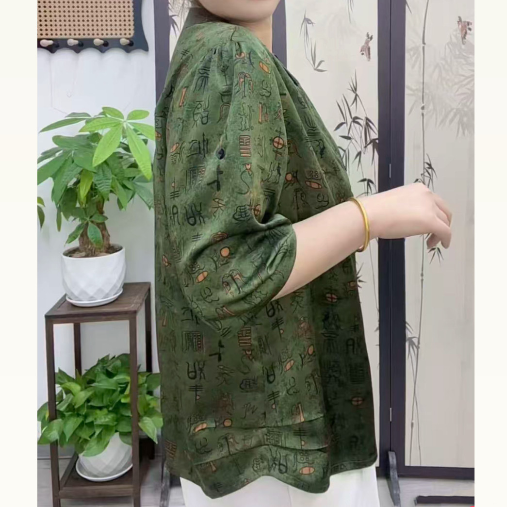 26夏新款中年裝洋氣媽媽裝套頭加肥上衣減齡夏季大碼八分袖小衫