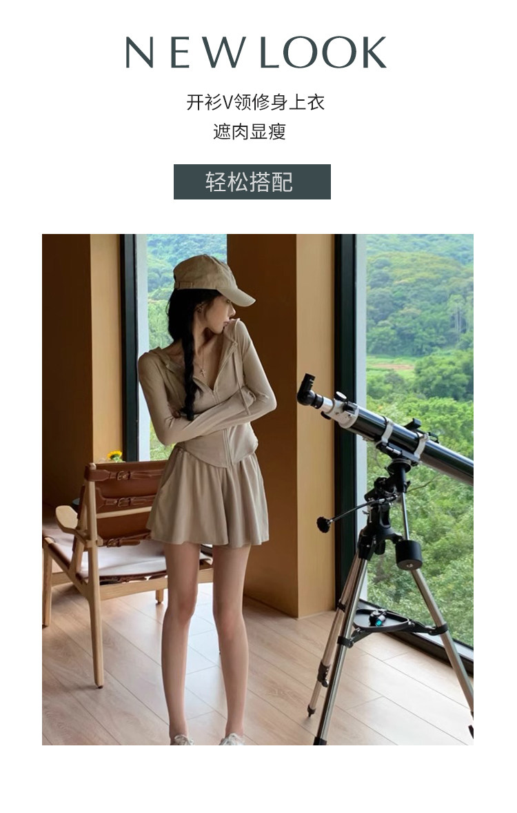 休閒運動套裝女夏季2026新款時尚顯瘦戶外防曬衣短褲跑步兩件套薄
