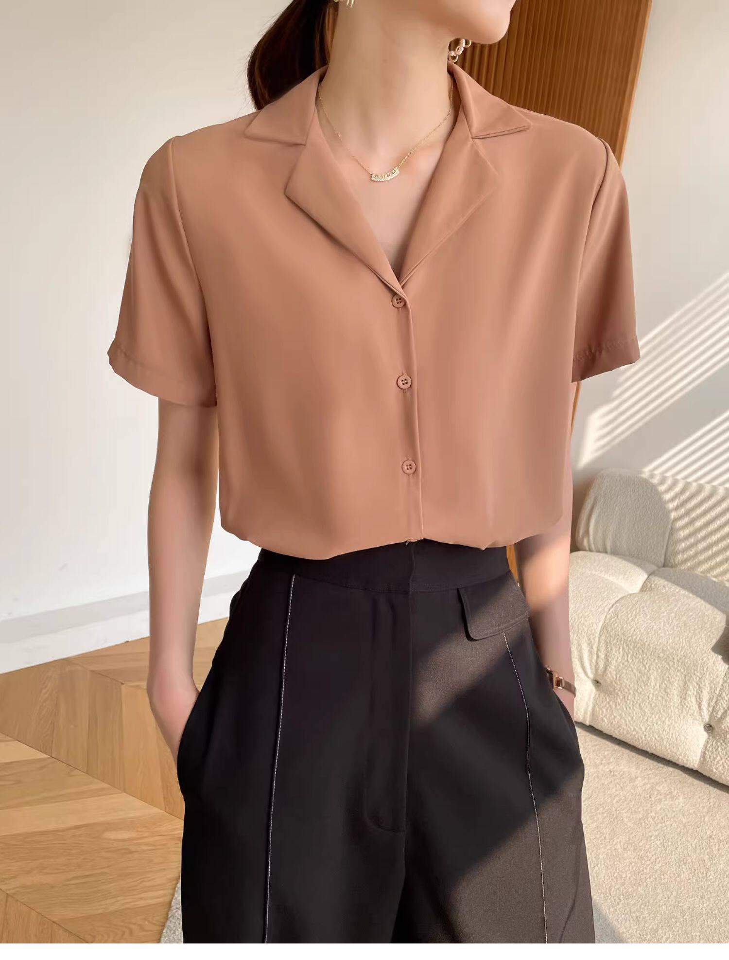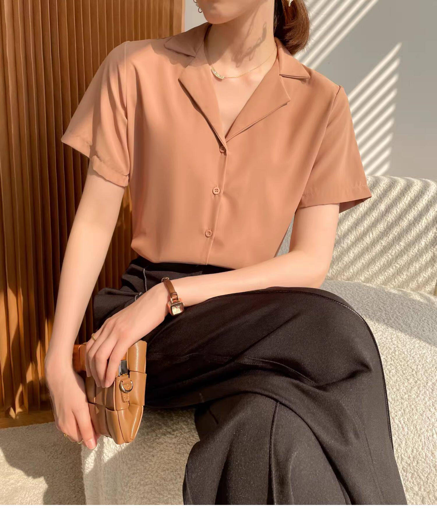 雪紡襯衫女短袖白襯衣通勤職業夏季白色職場面試春季穿搭正裝上衣