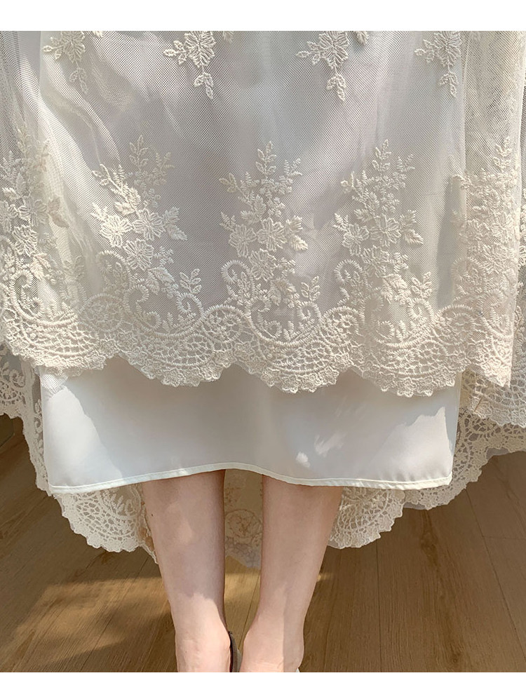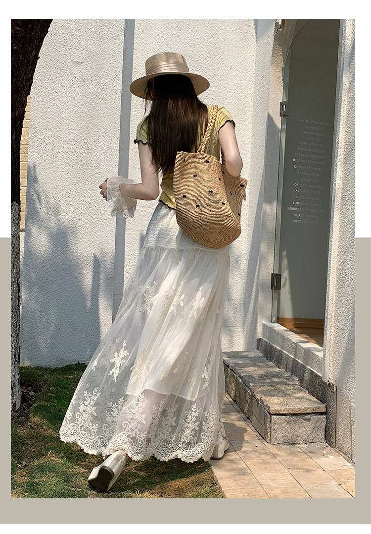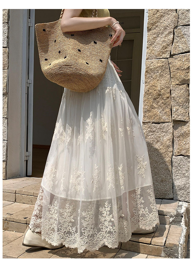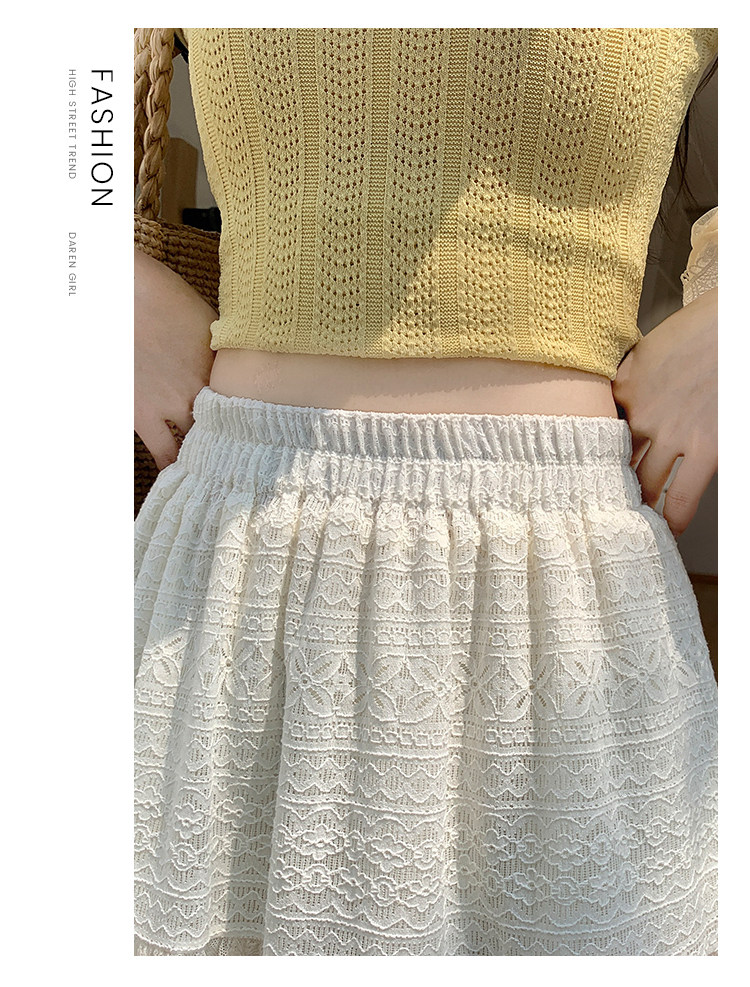 法式白色半身裙女春季2026新款設計感蕾絲花邊a字裙高腰氣質長裙