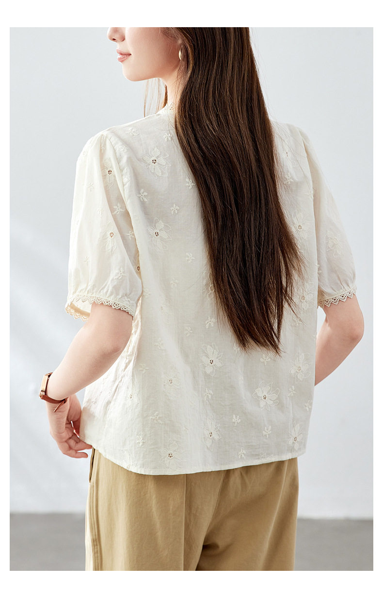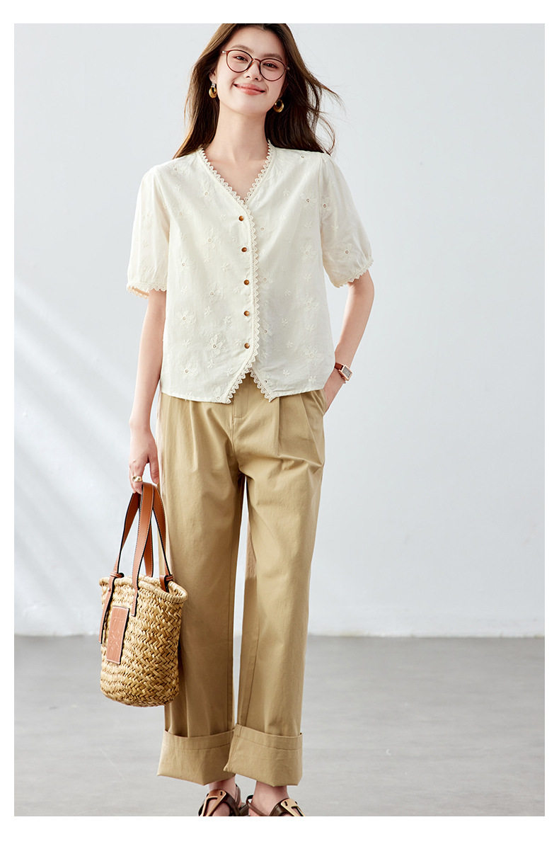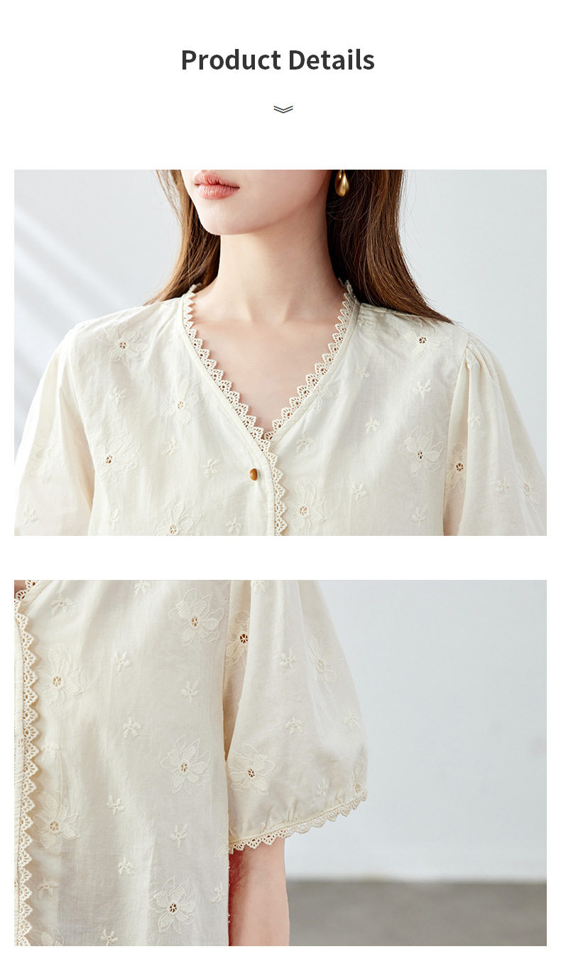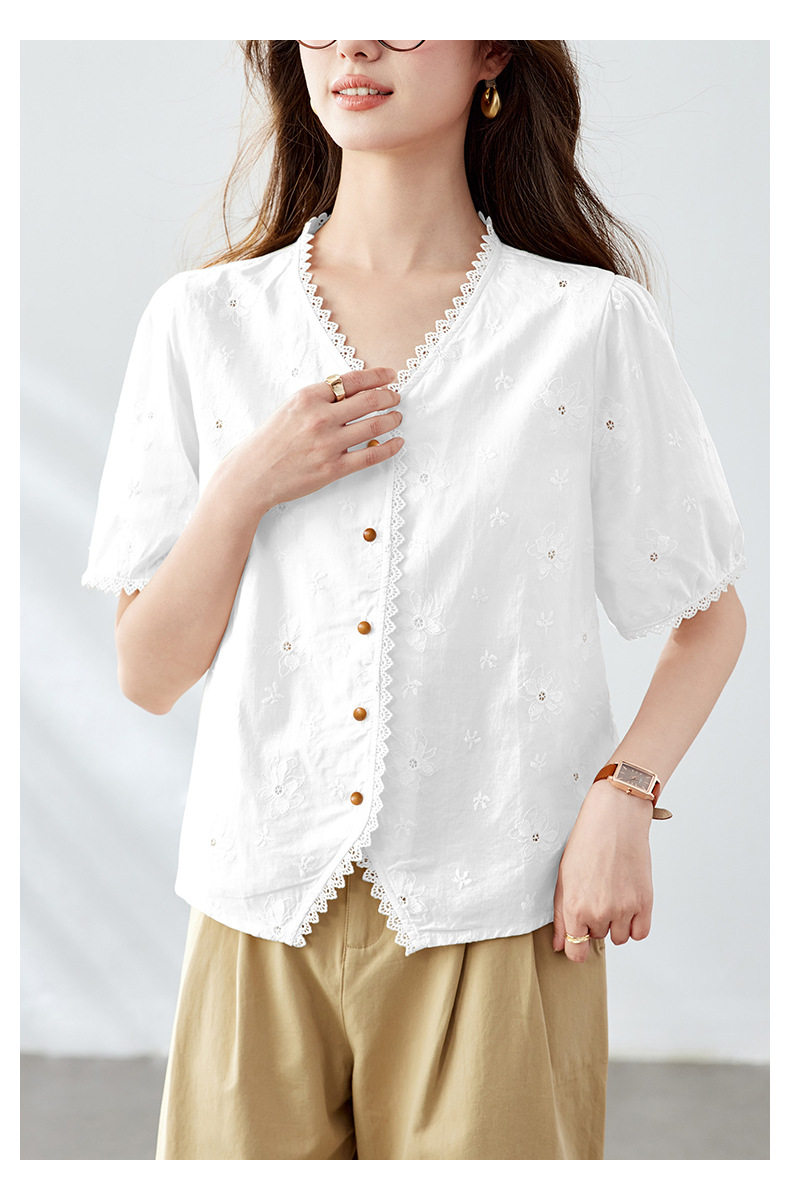 2026夏純棉小個子短款襯衫女短袖上衣花邊V領設計感洋氣減齡襯衣