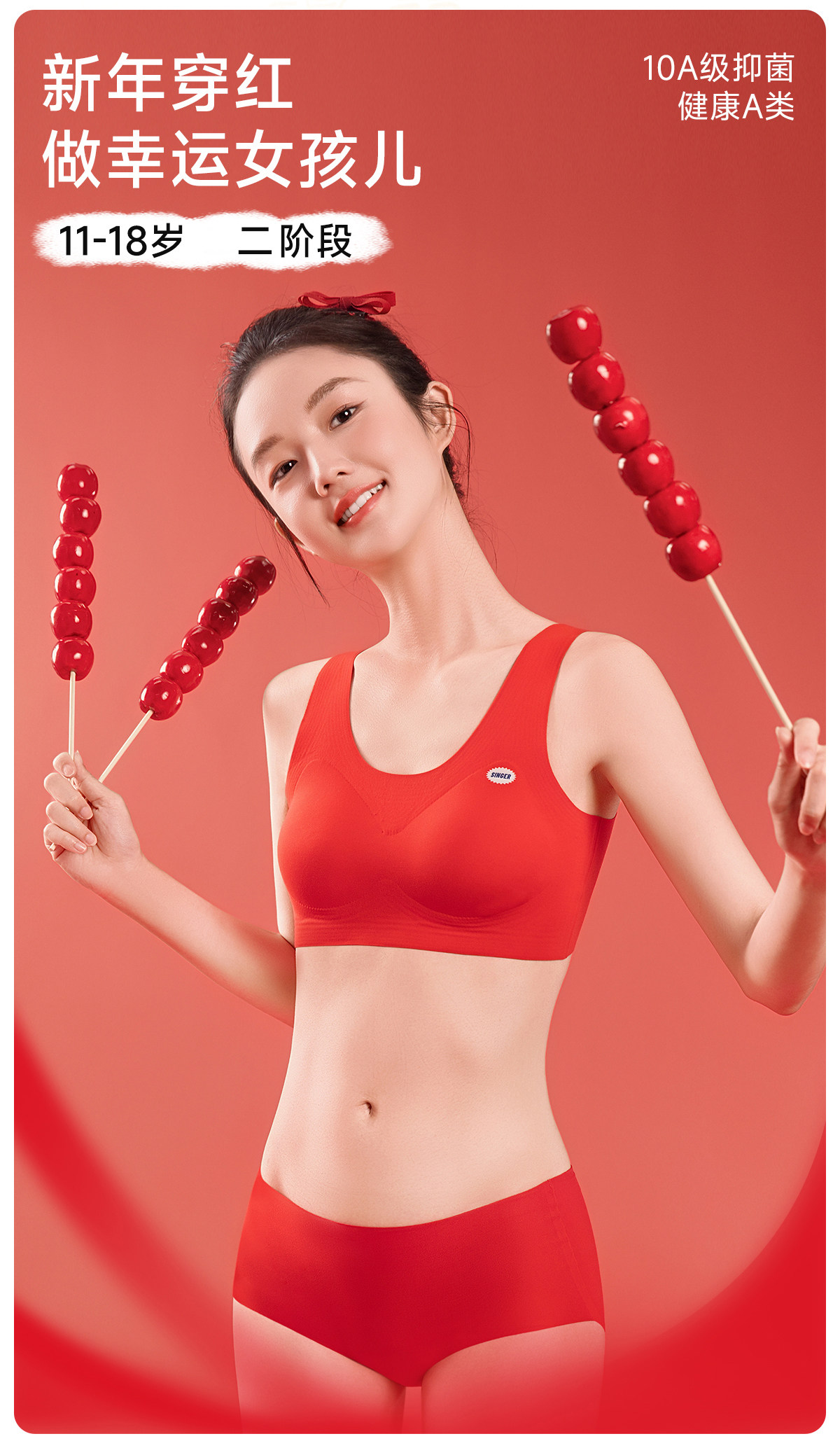歐迪芬少女內衣女學生初中發育期專用新年鴻運兒童本命年內衣套裝