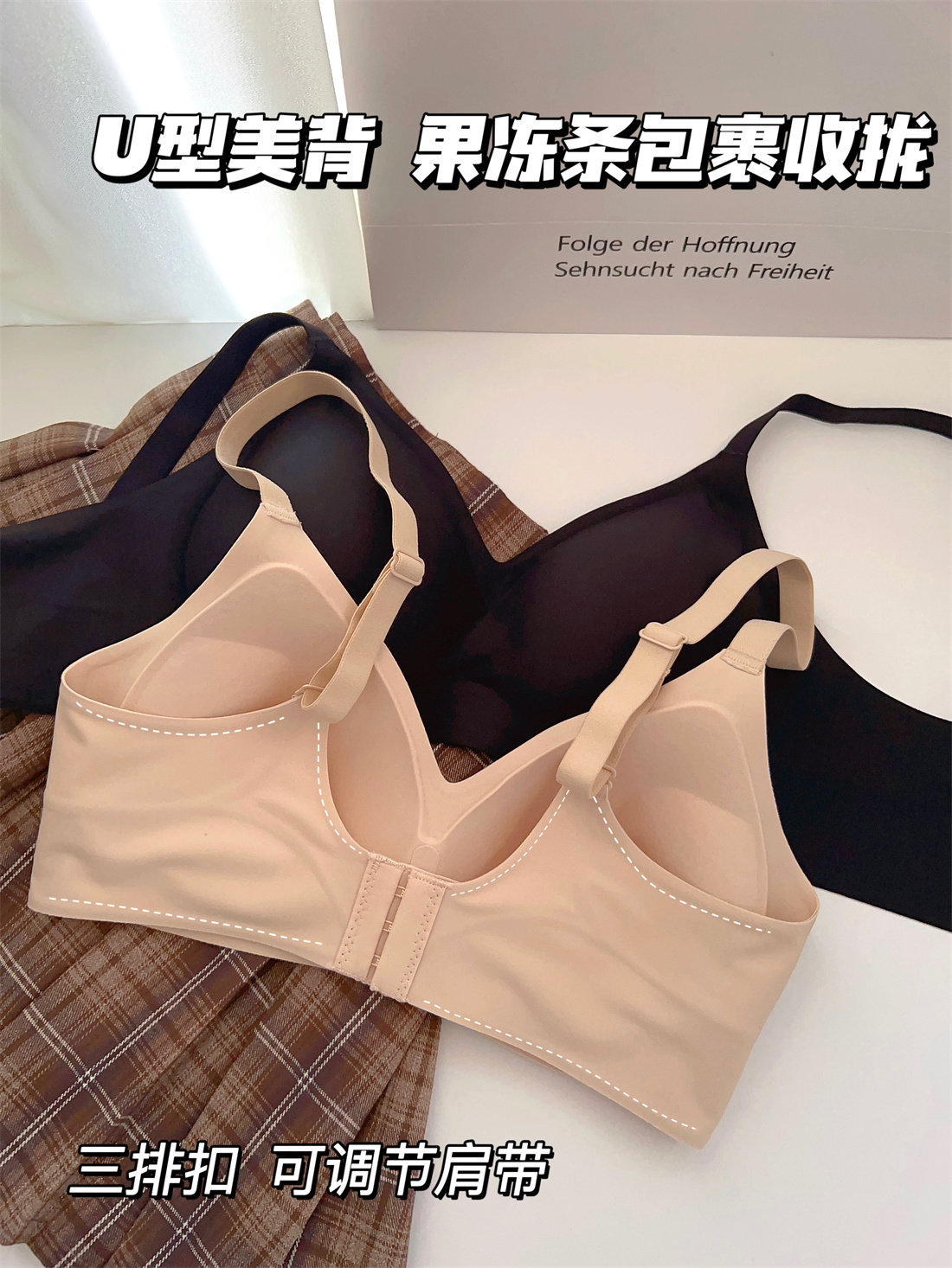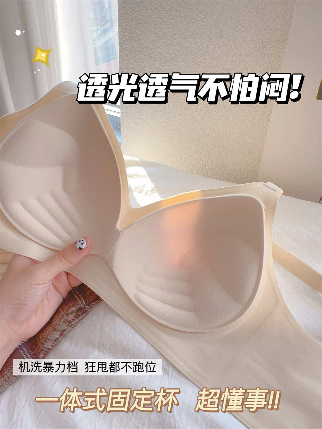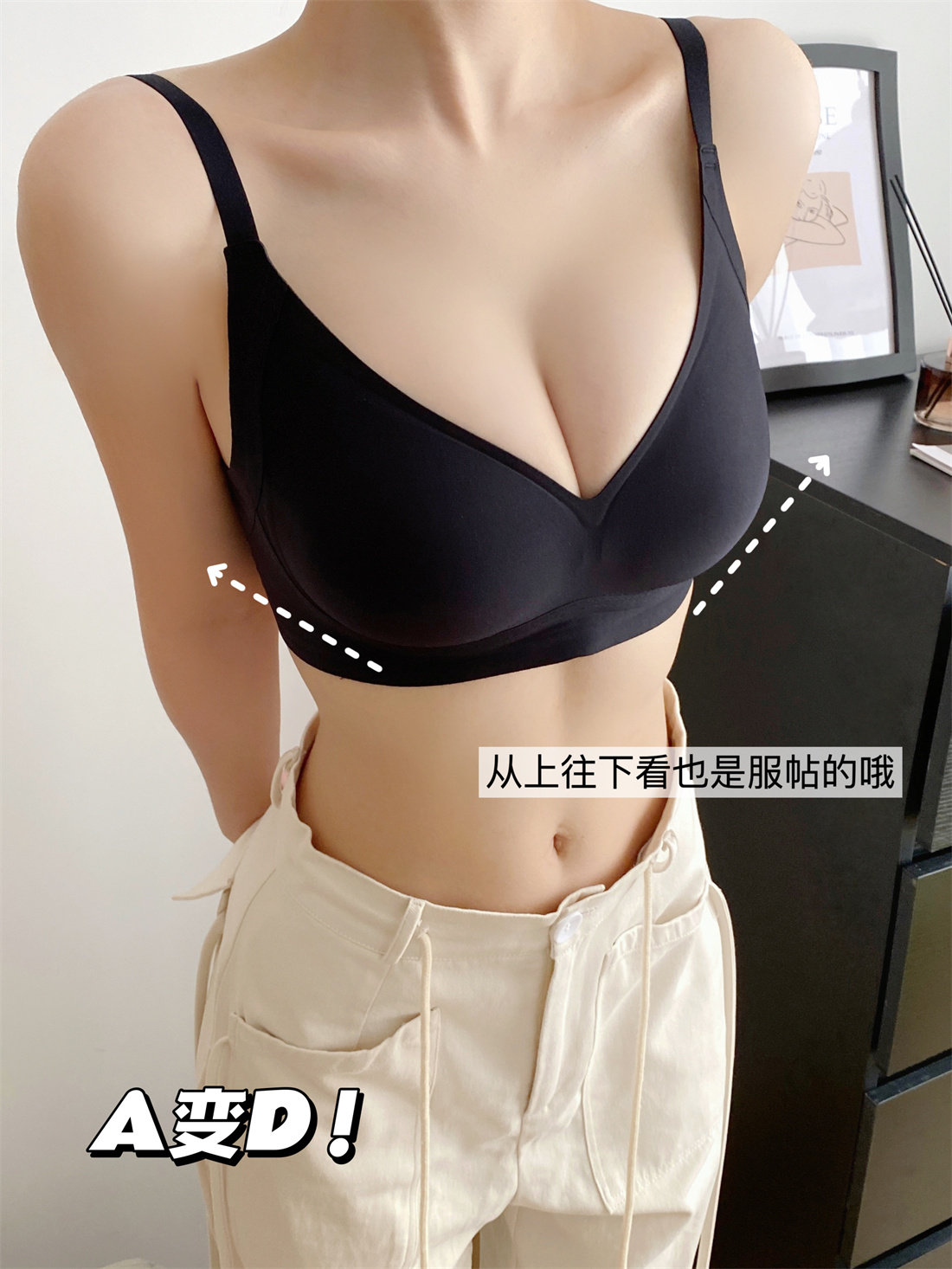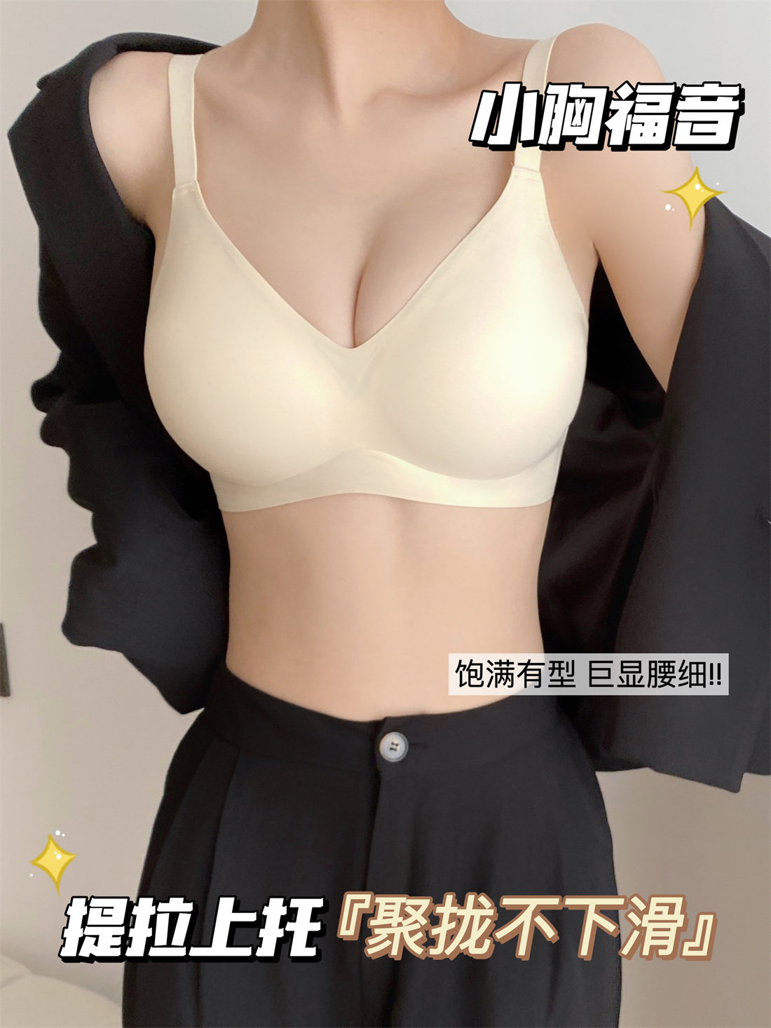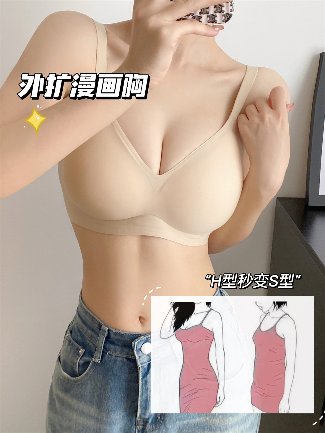 漫畫手 隱形外擴顯腰細小胸聚攏內衣女A變C無痕膚色不透文胸罩
