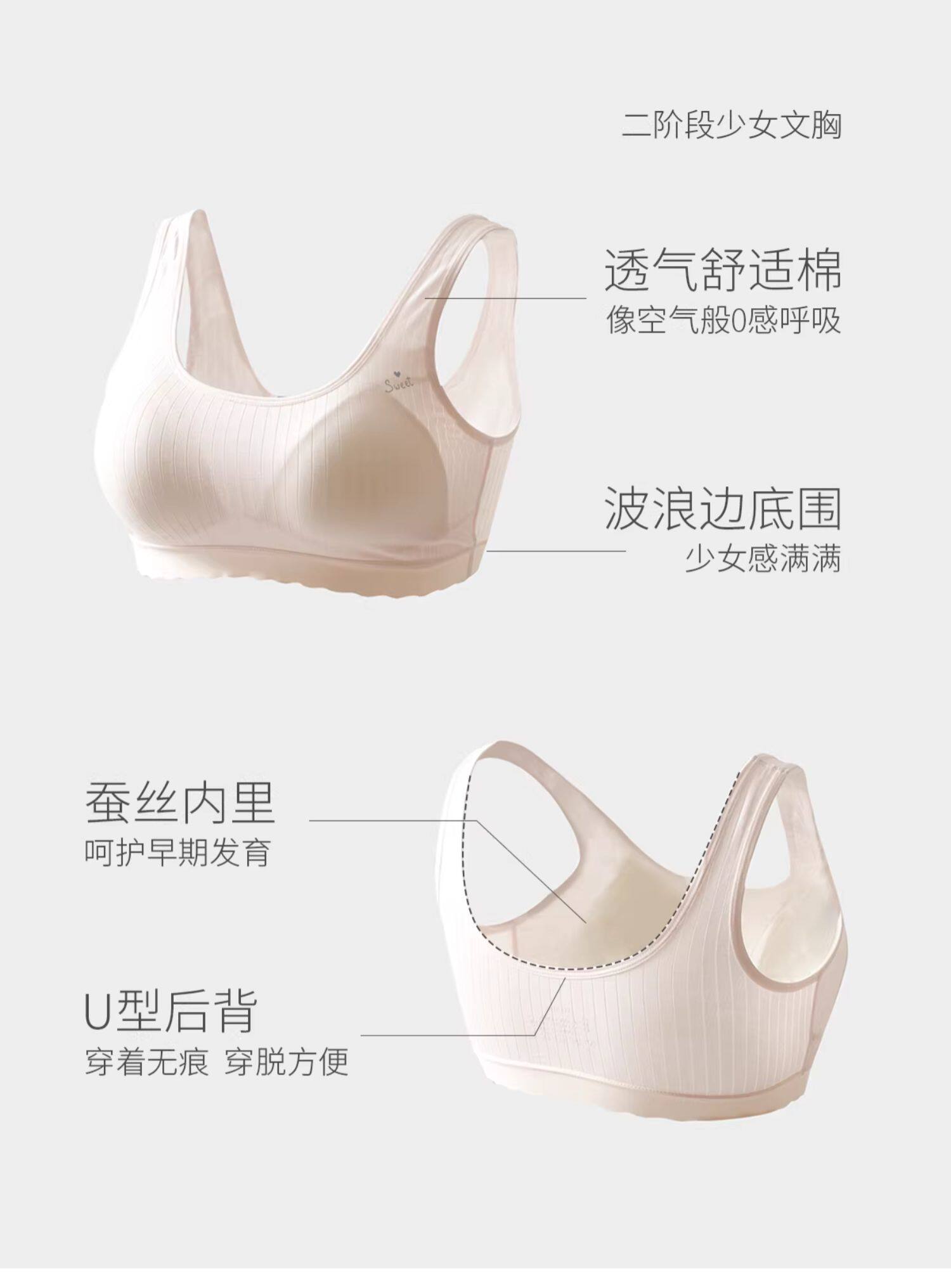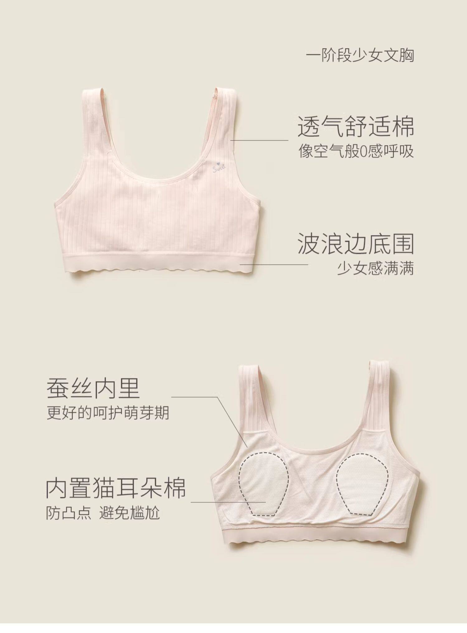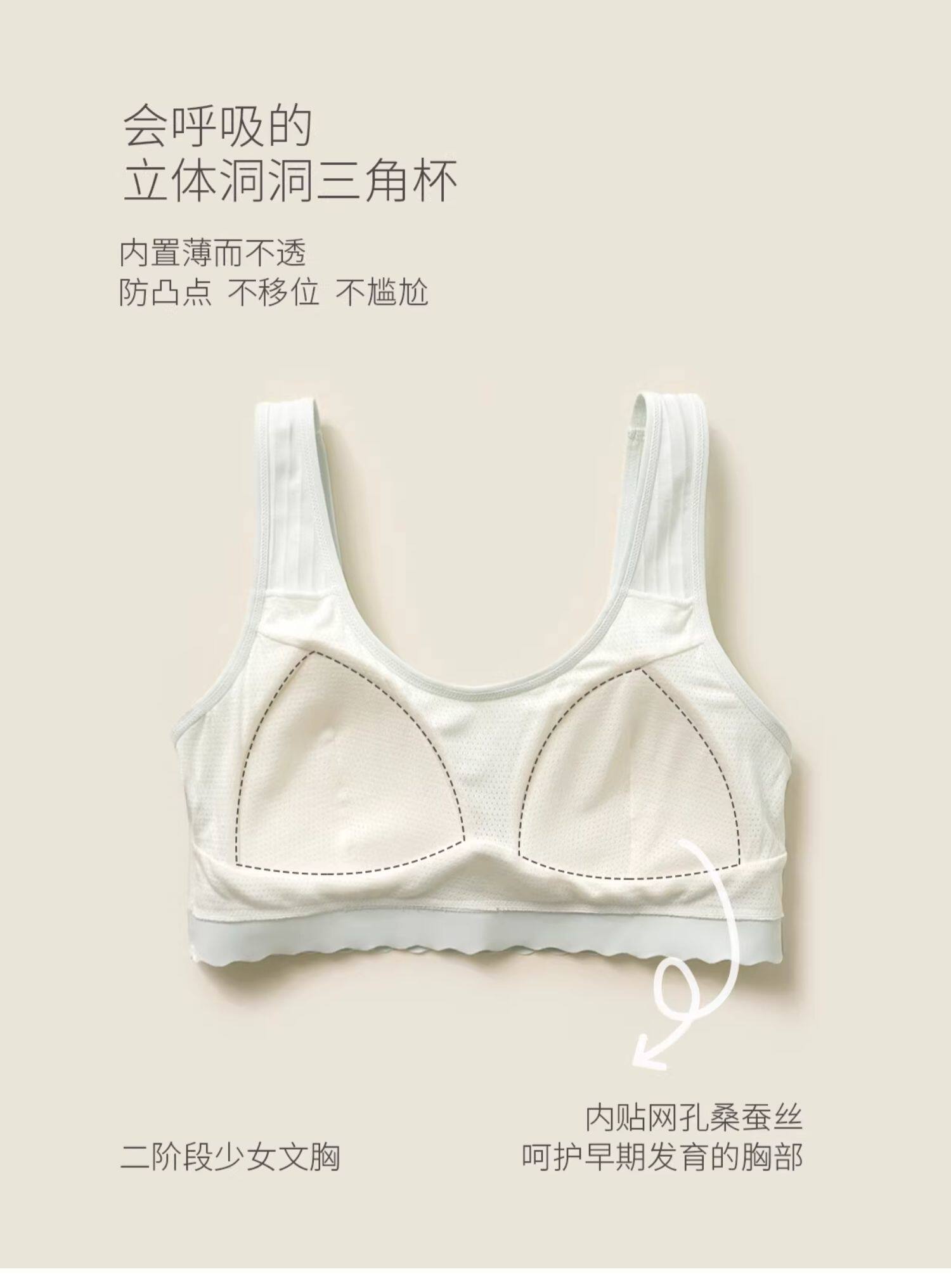 A類少女文胸 一二階段發育期bra內衣 桑蠶絲內裡 中大童 四季款