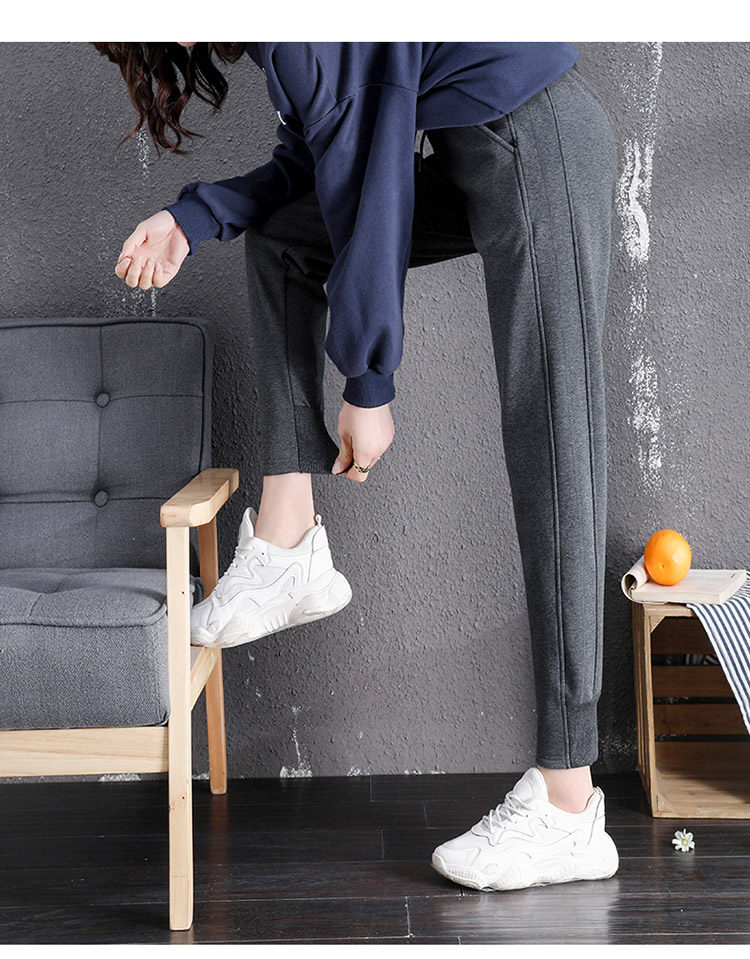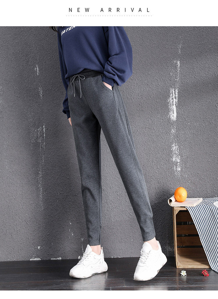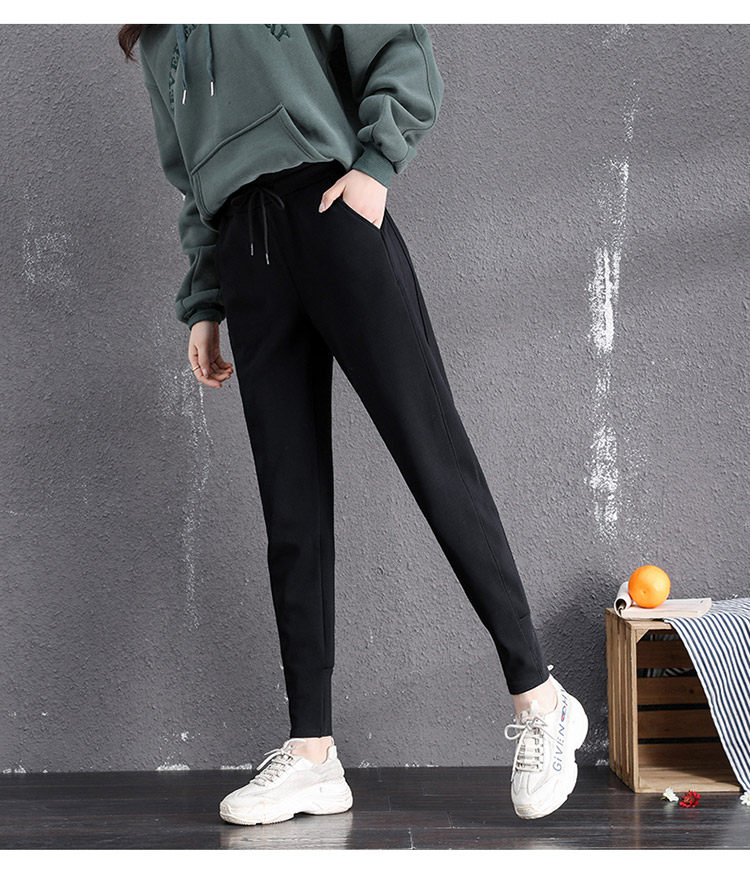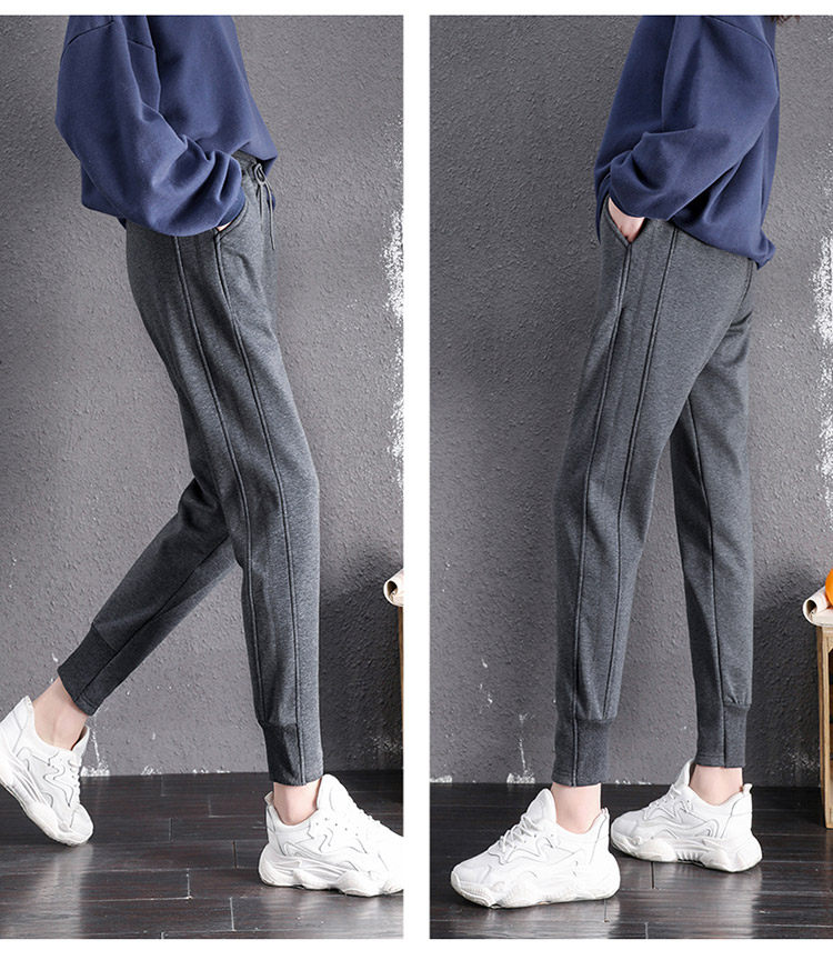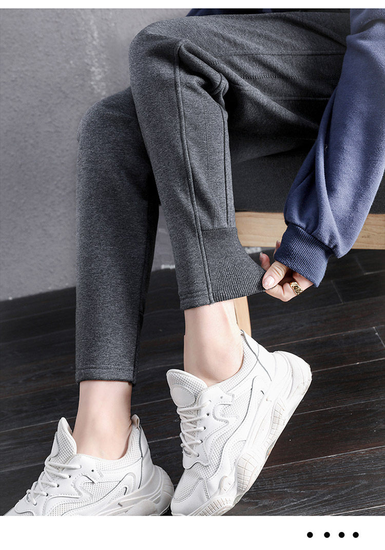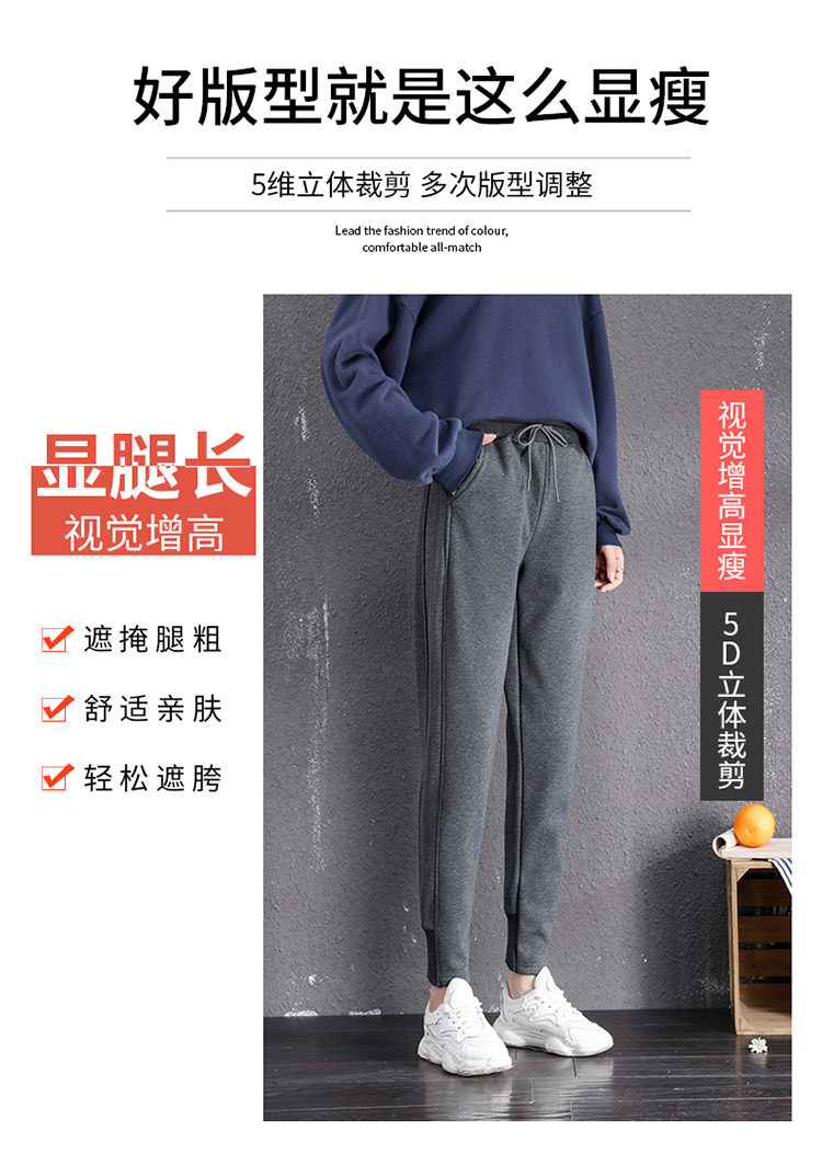 運動褲女春秋冬季2026新款衛褲灰色束腳加絨休閒仿羊羔絨哈倫褲子