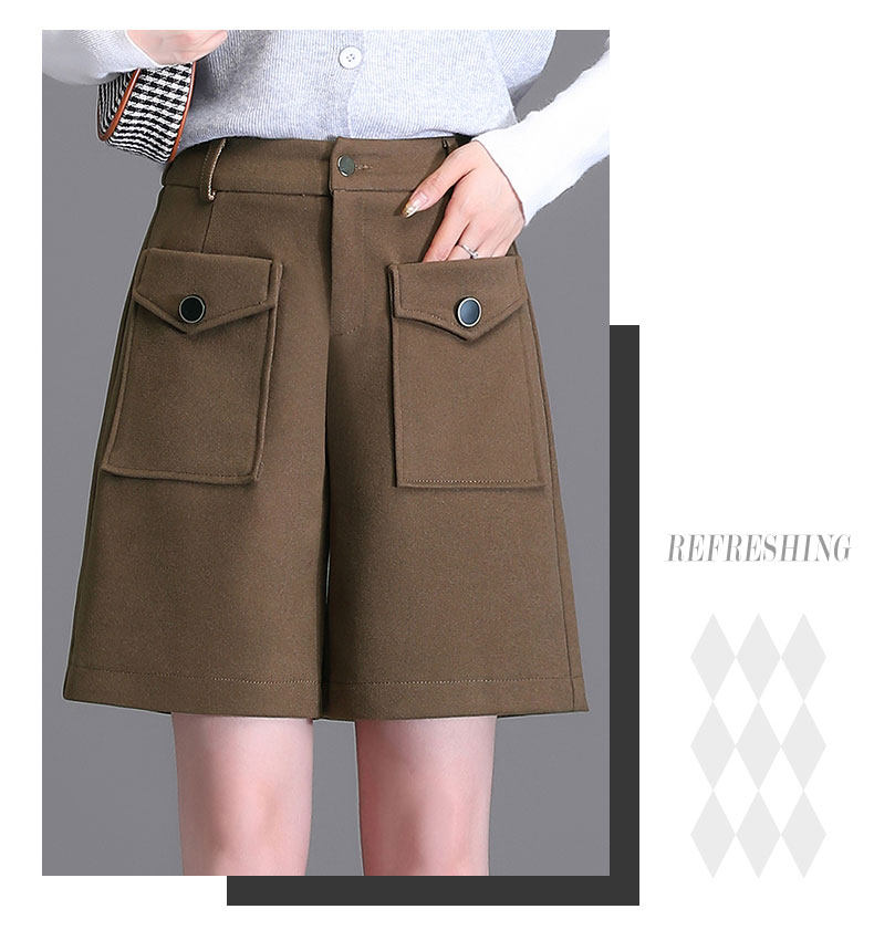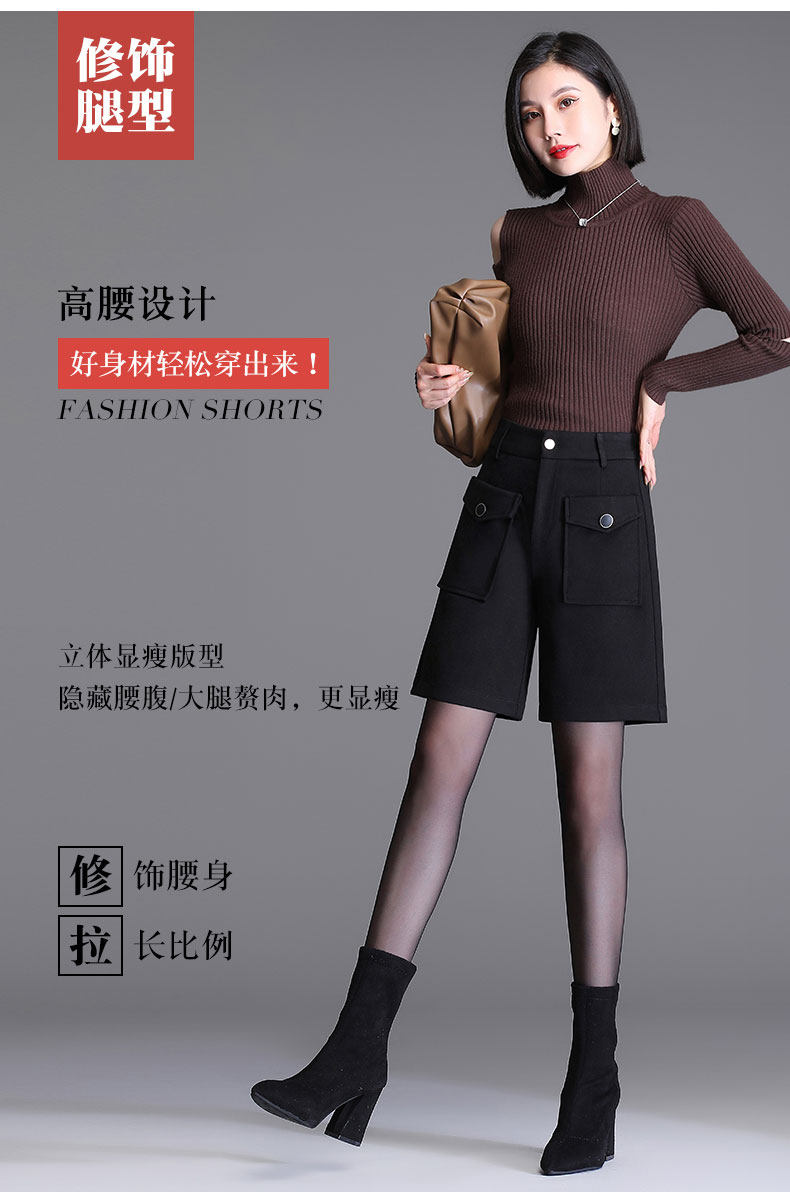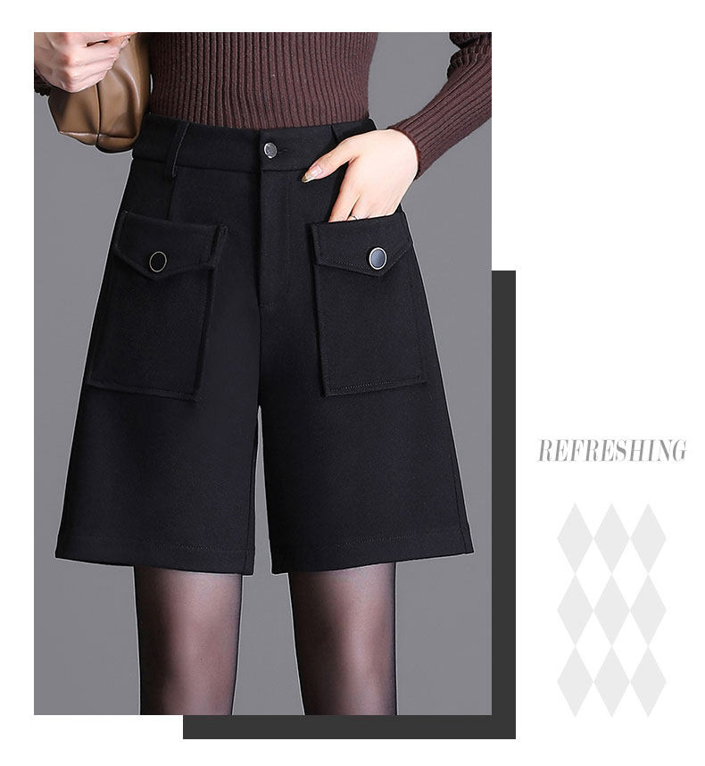 毛呢五分褲女2025秋冬新款高腰呢子靴褲時尚洋氣外穿濶腿a字短褲