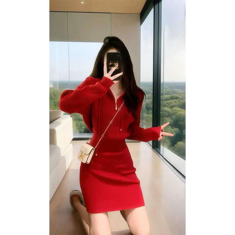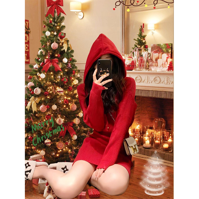 小香風高級感聖誕紅色穿搭針織連衣裙2025年秋冬新款冬季裙子女裝