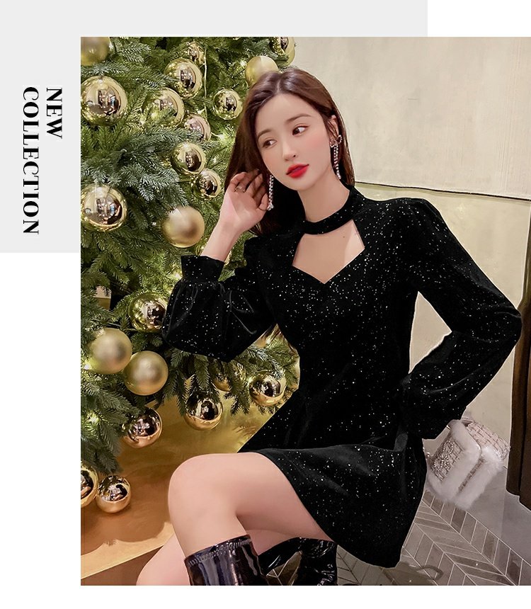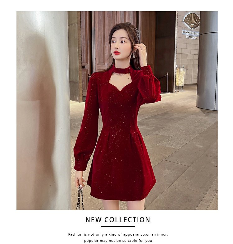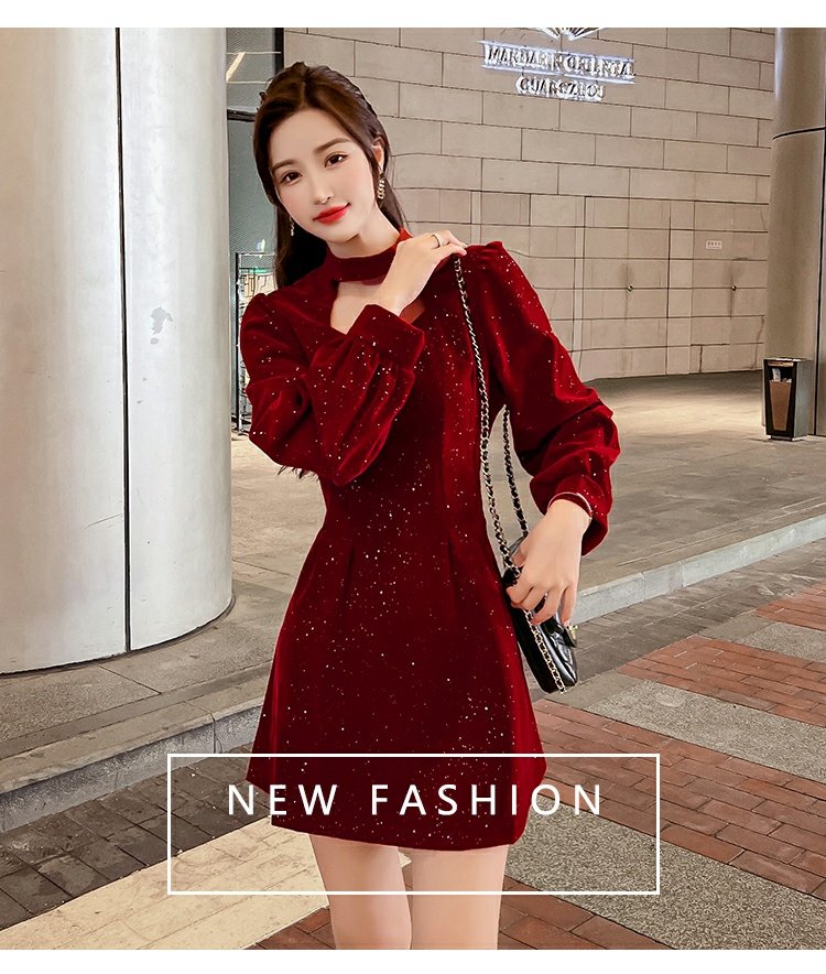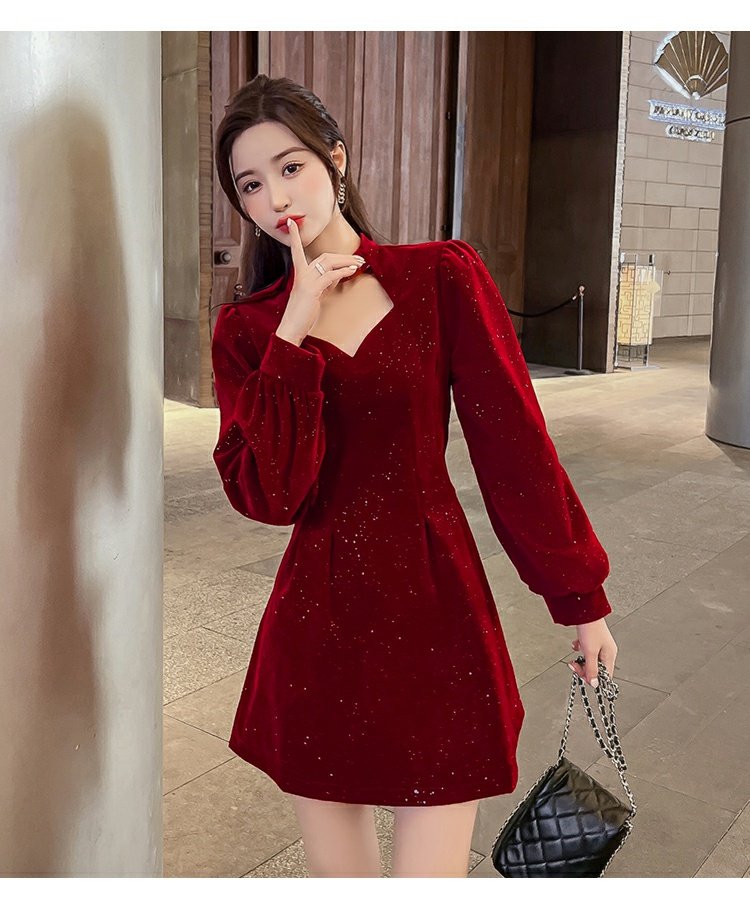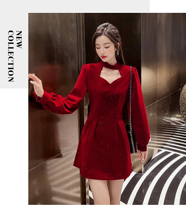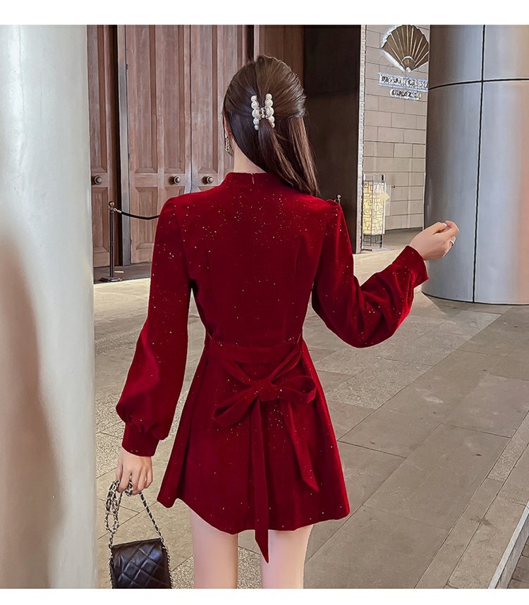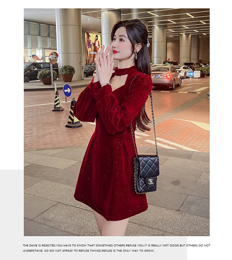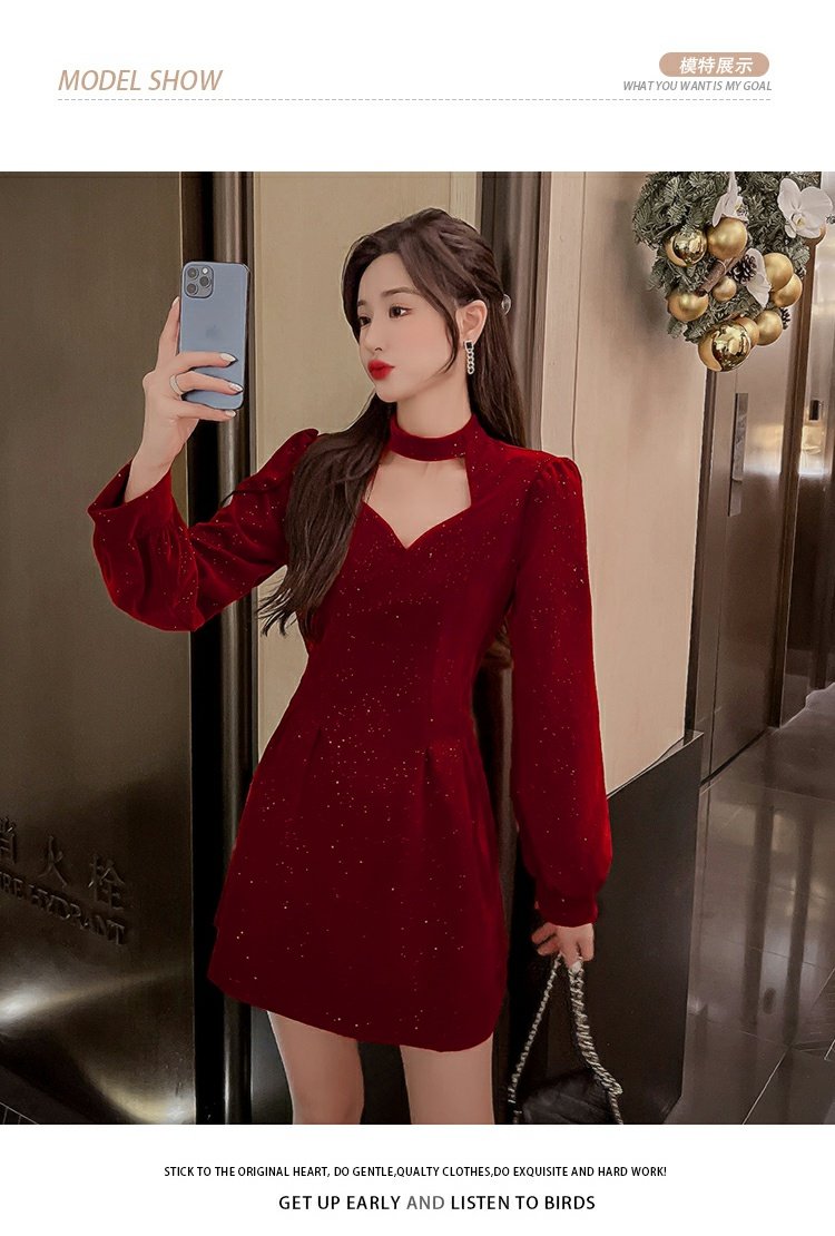聖誕紅年會連衣裙女秋冬赫本風名媛氣質高級感小個子法式收腰裙子