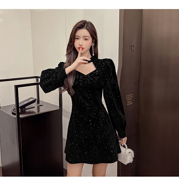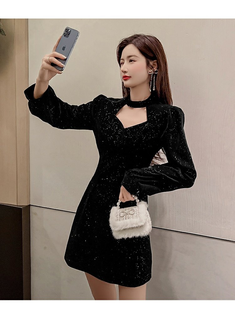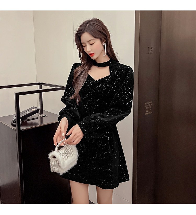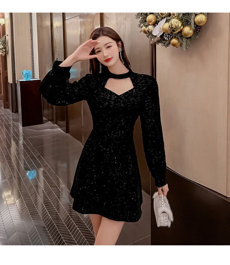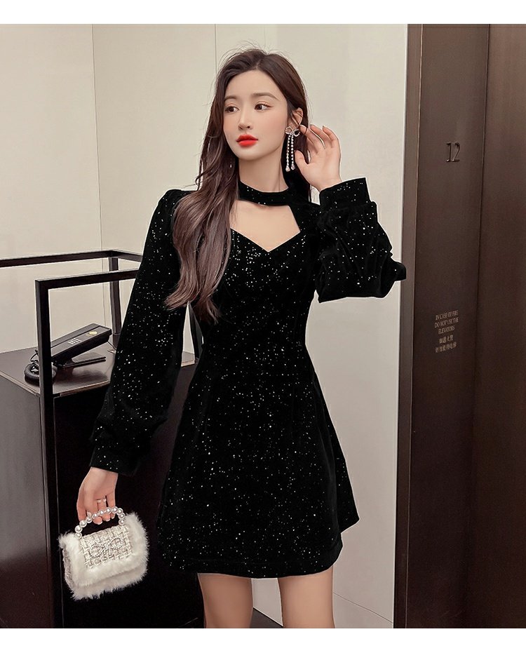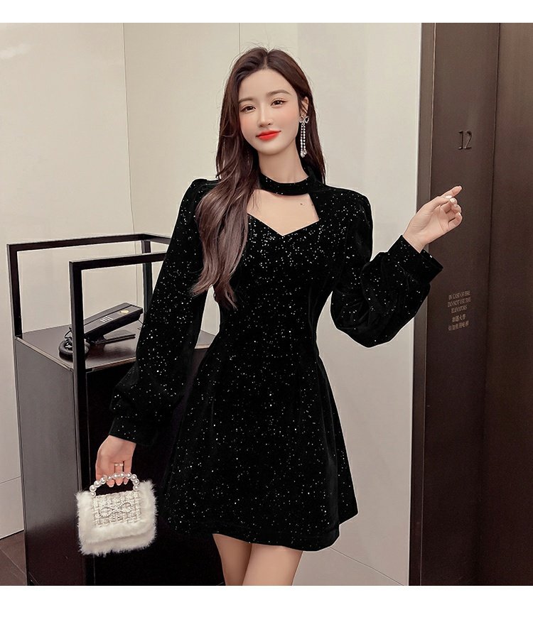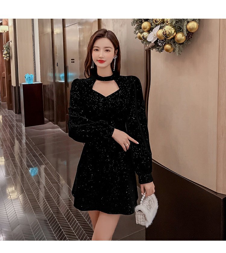 聖誕紅年會連衣裙女秋冬赫本風名媛氣質高級感小個子法式收腰裙子