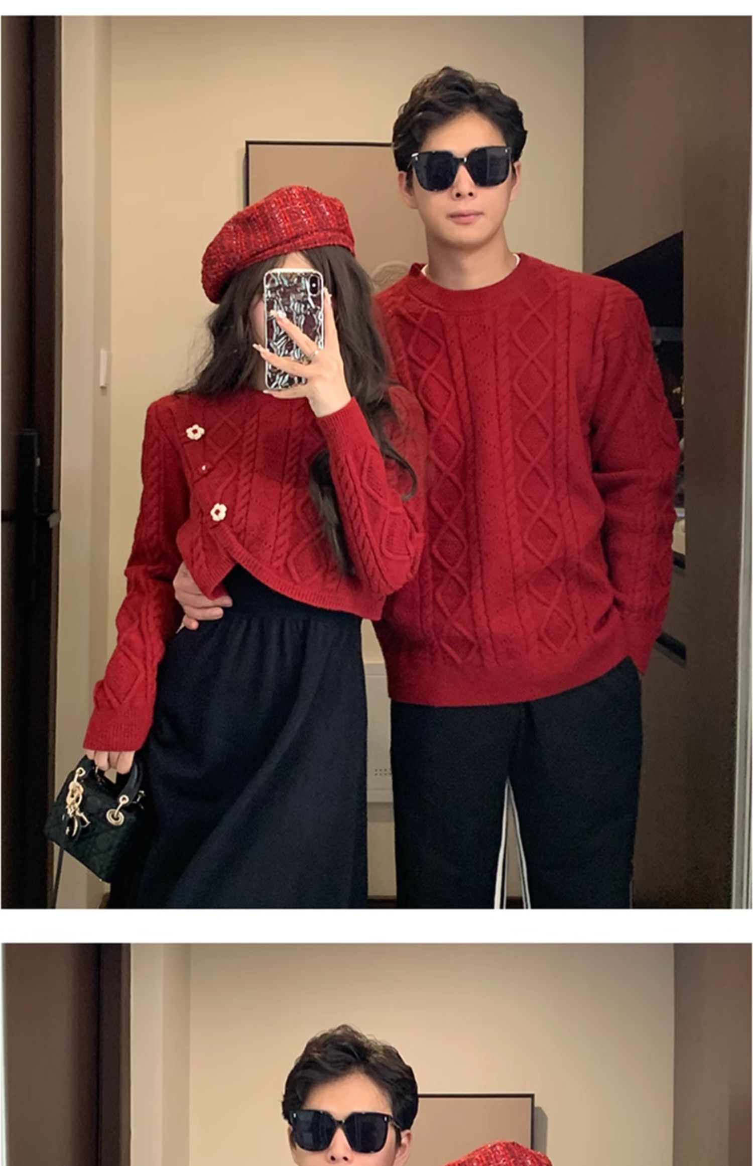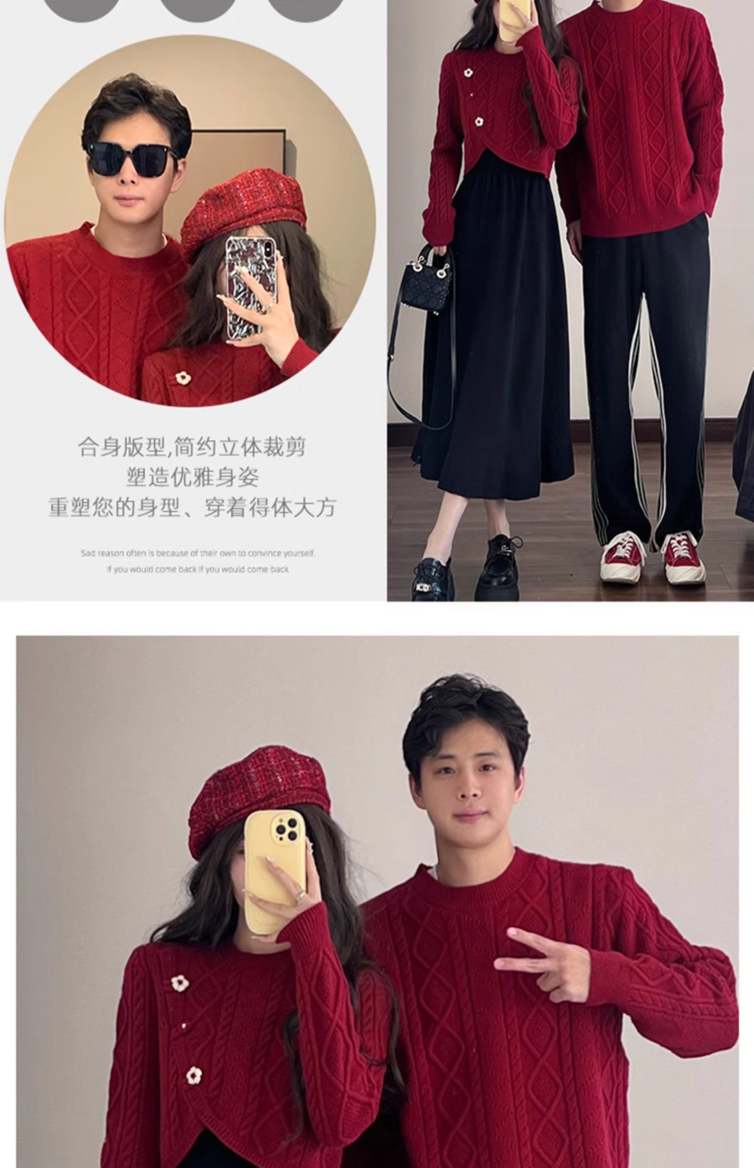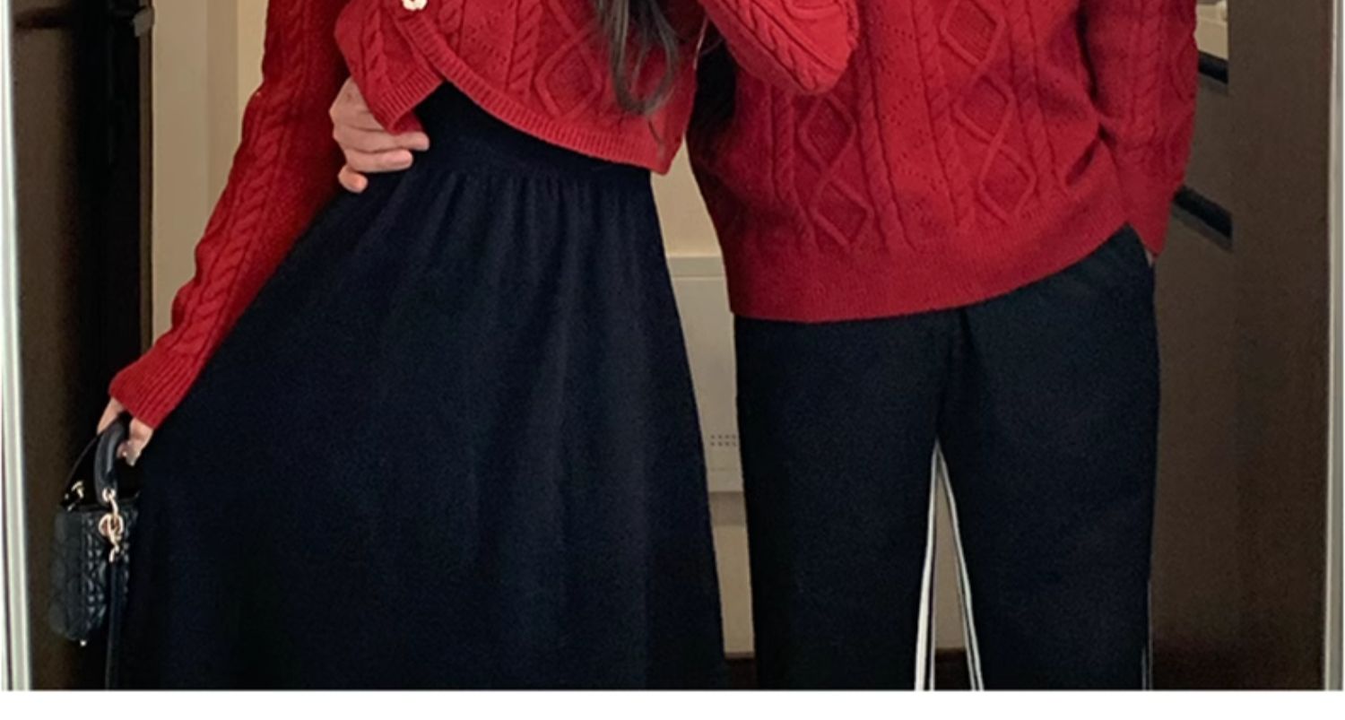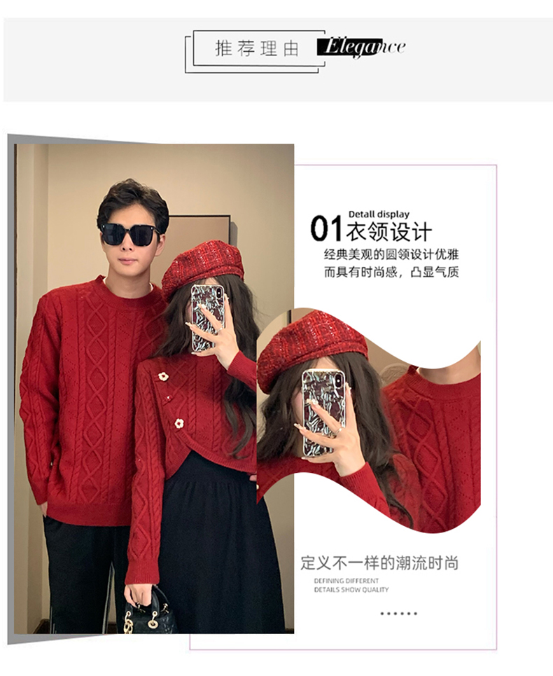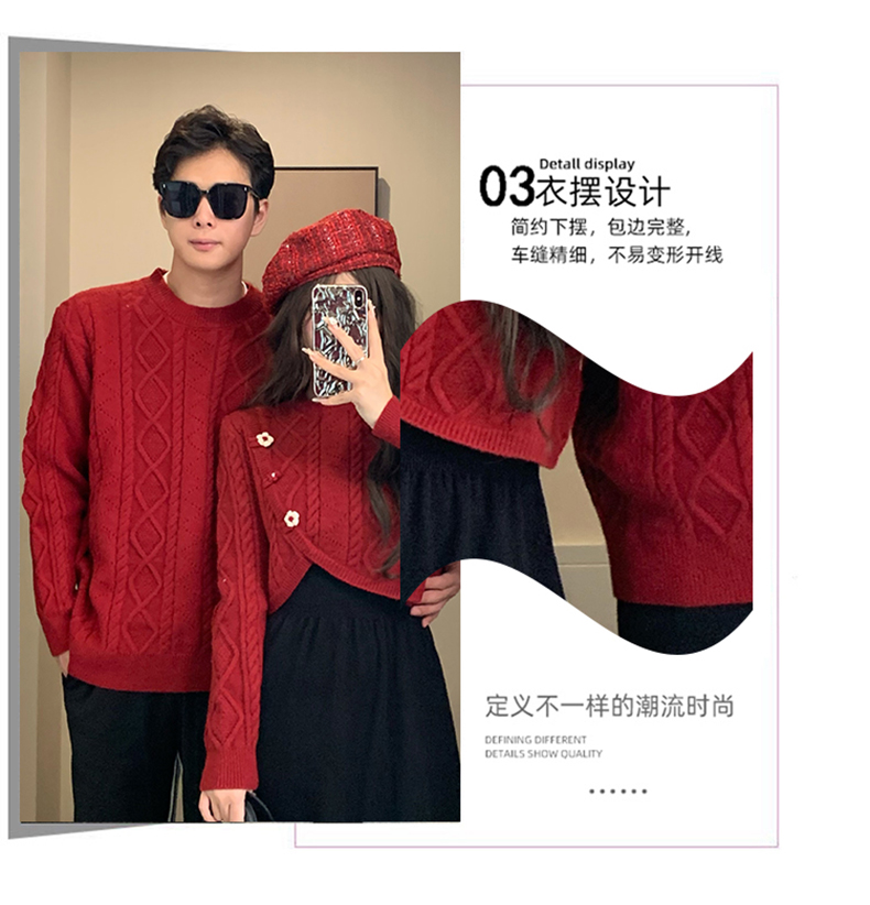 高級感情侶裝秋冬裝2025新款過年聖誕紅色毛衣連衣裙套裝一裙一衣