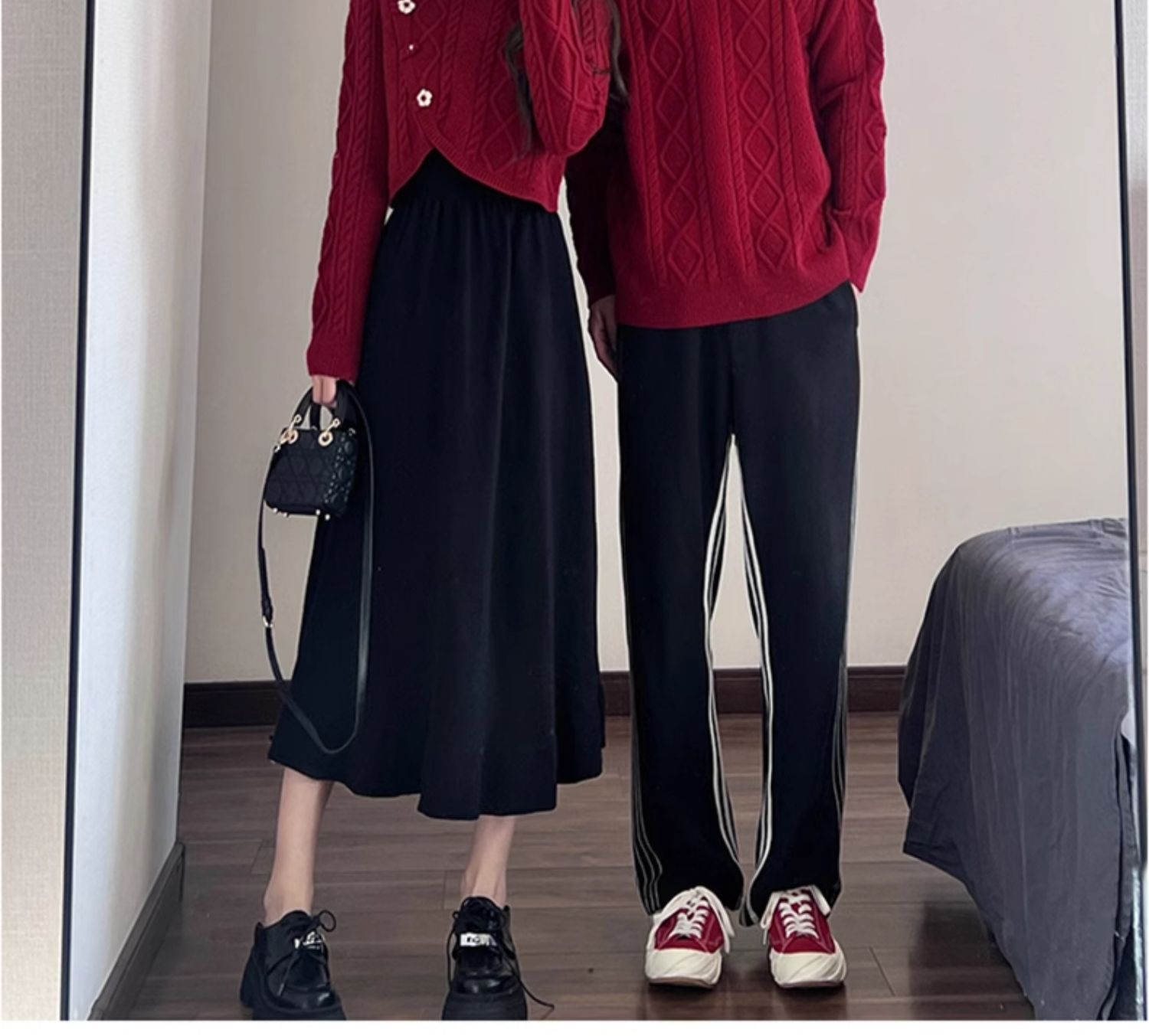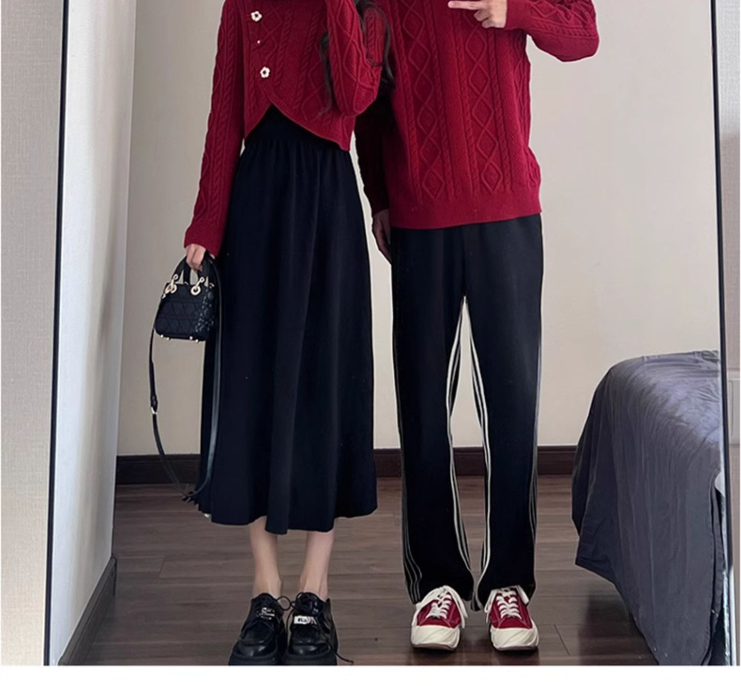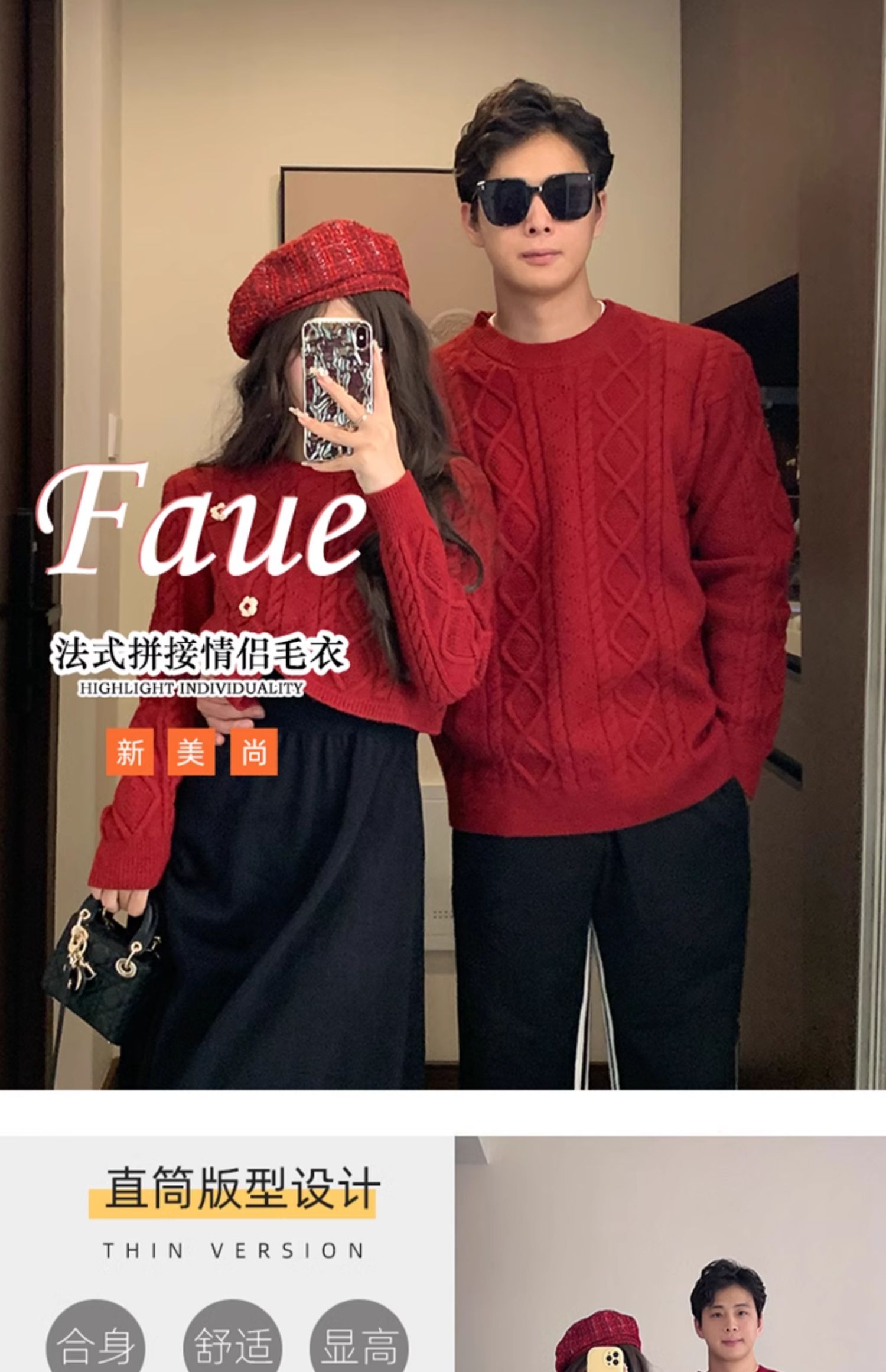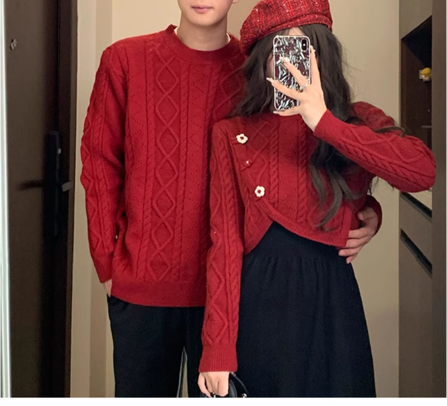 高級感情侶裝秋冬裝2025新款過年聖誕紅色毛衣連衣裙套裝一裙一衣