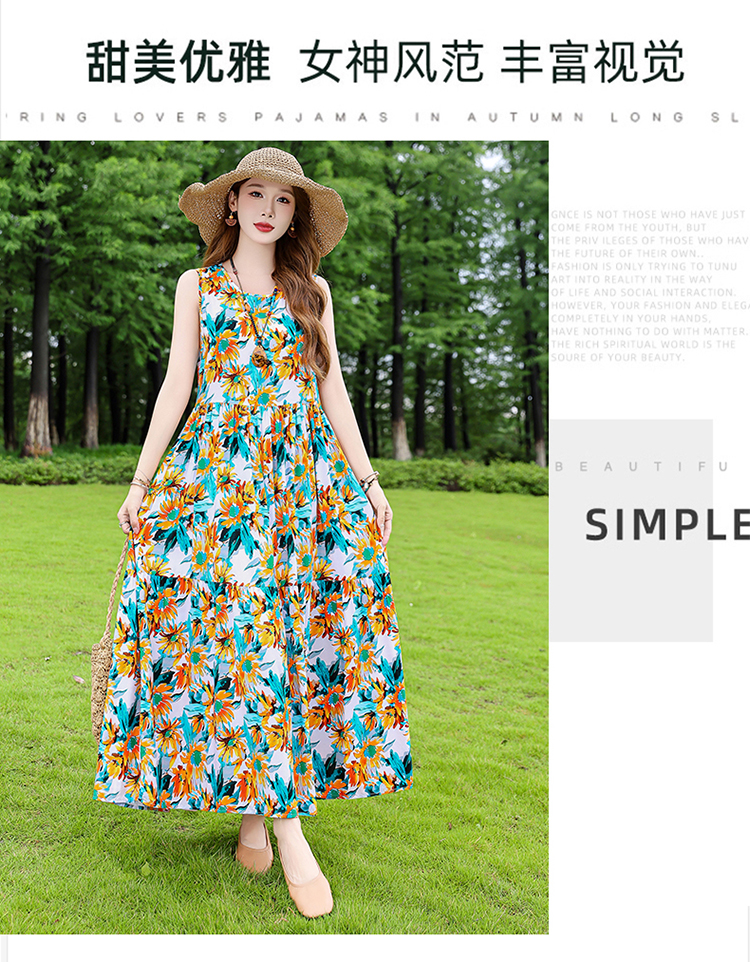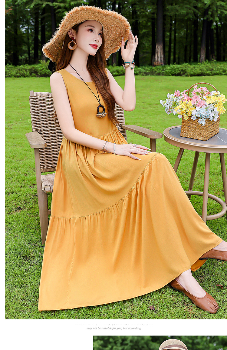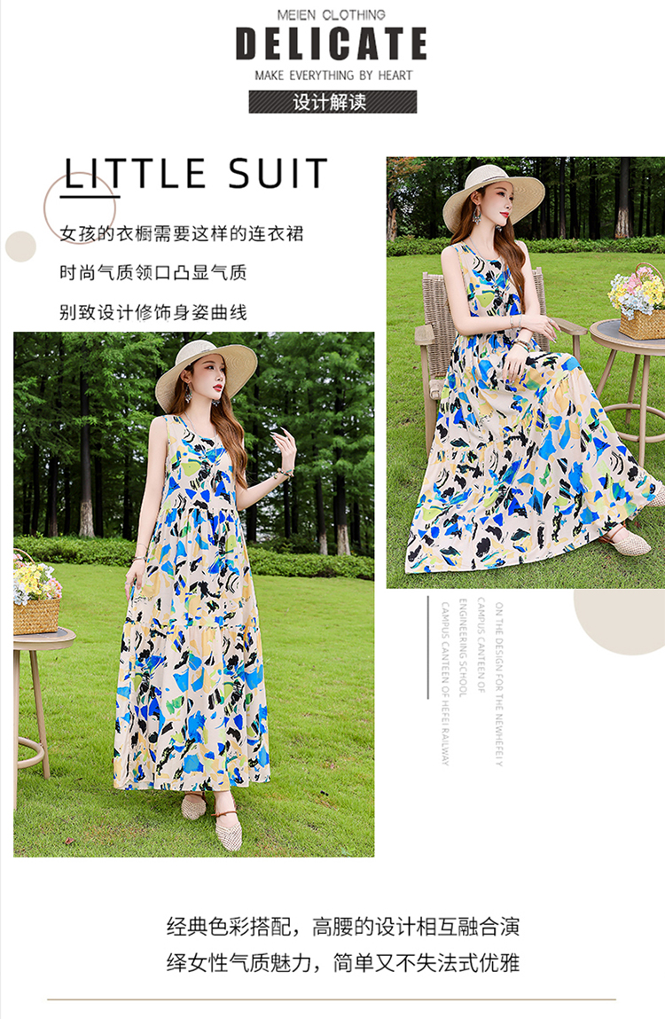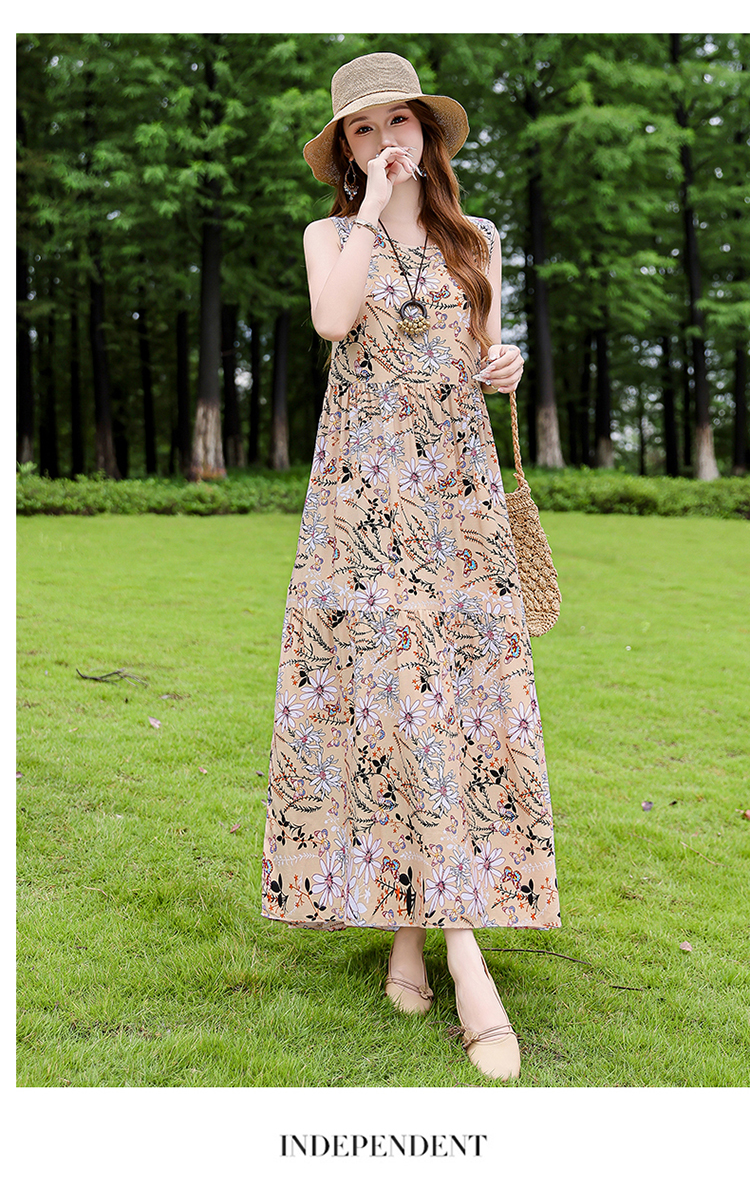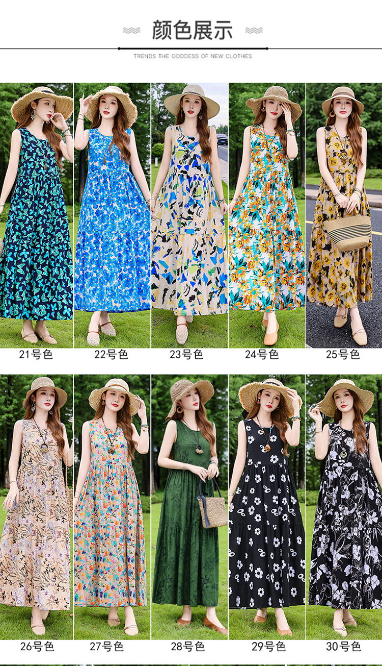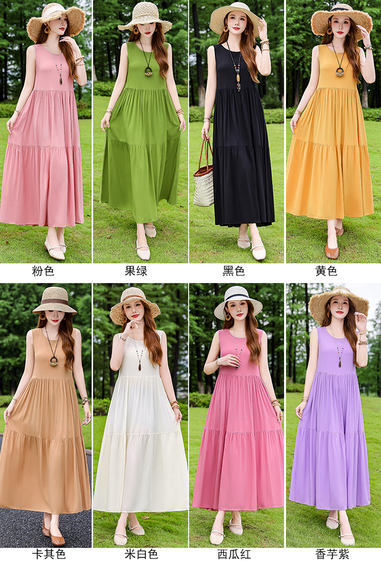 夏季棉綢連衣裙新款三亞年輕款吊帶沙灘裙女無袖度假裙子長裙飄逸