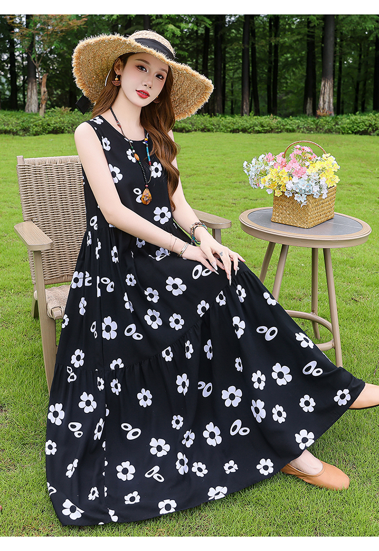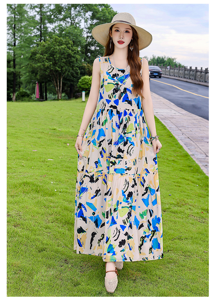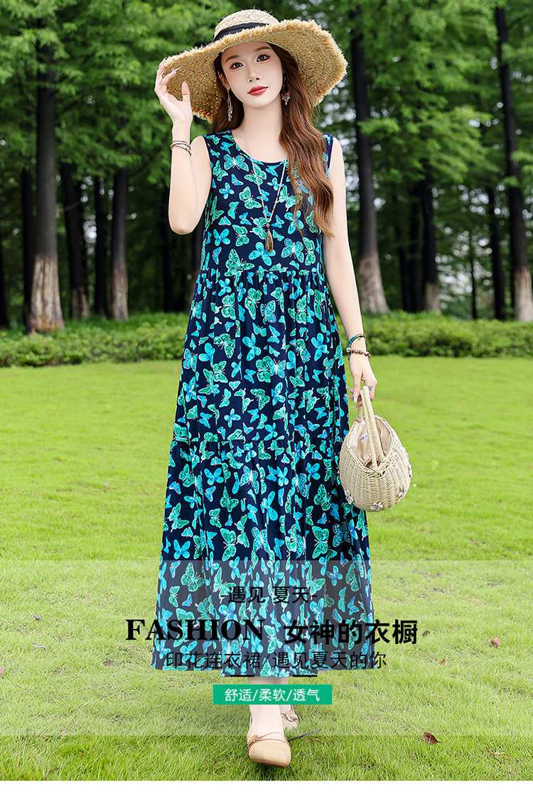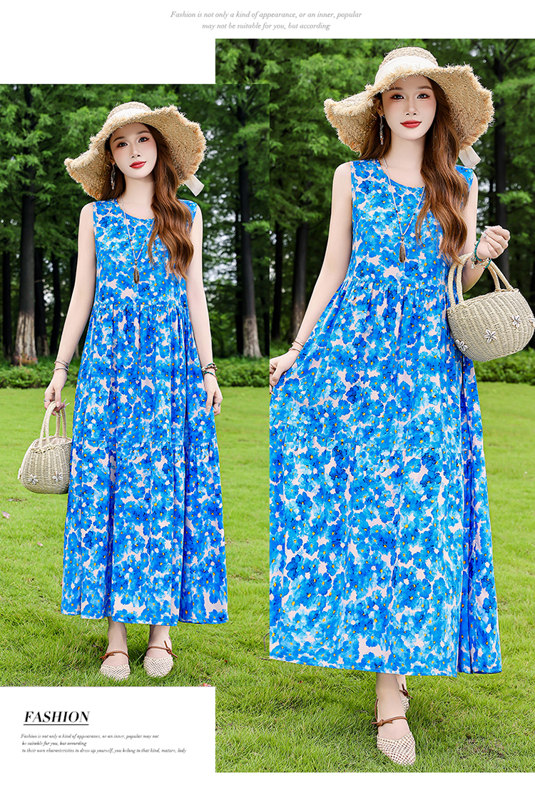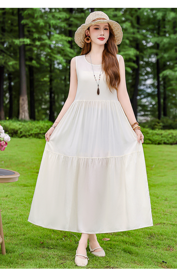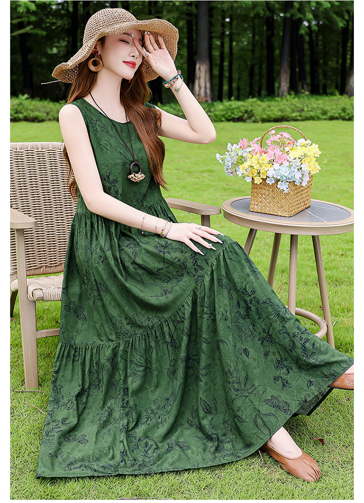 夏季棉綢連衣裙新款三亞年輕款吊帶沙灘裙女無袖度假裙子長裙飄逸