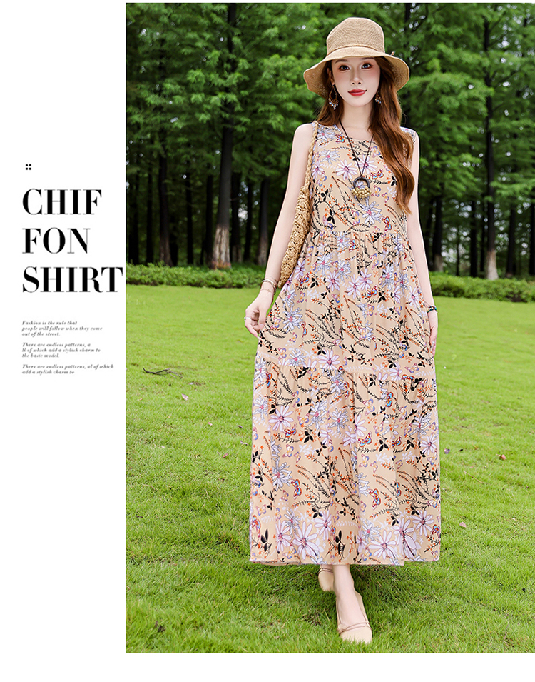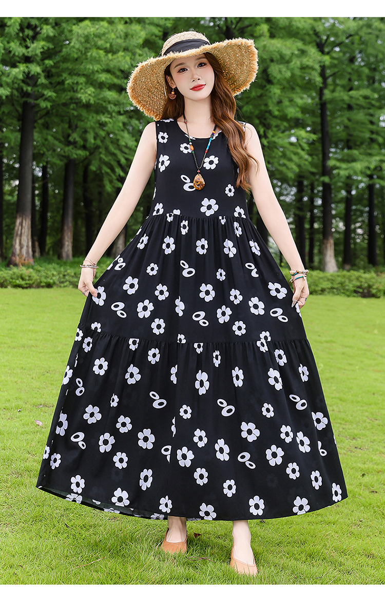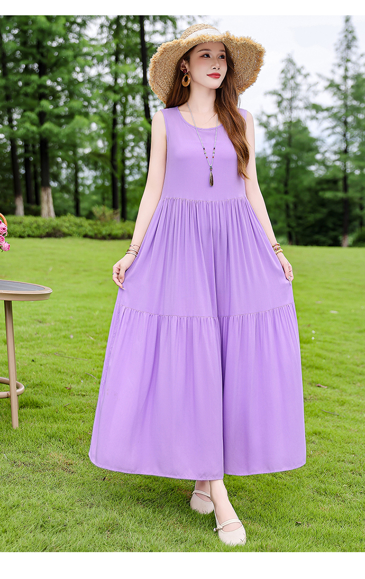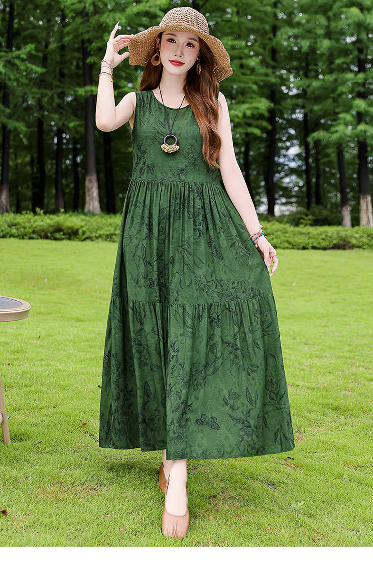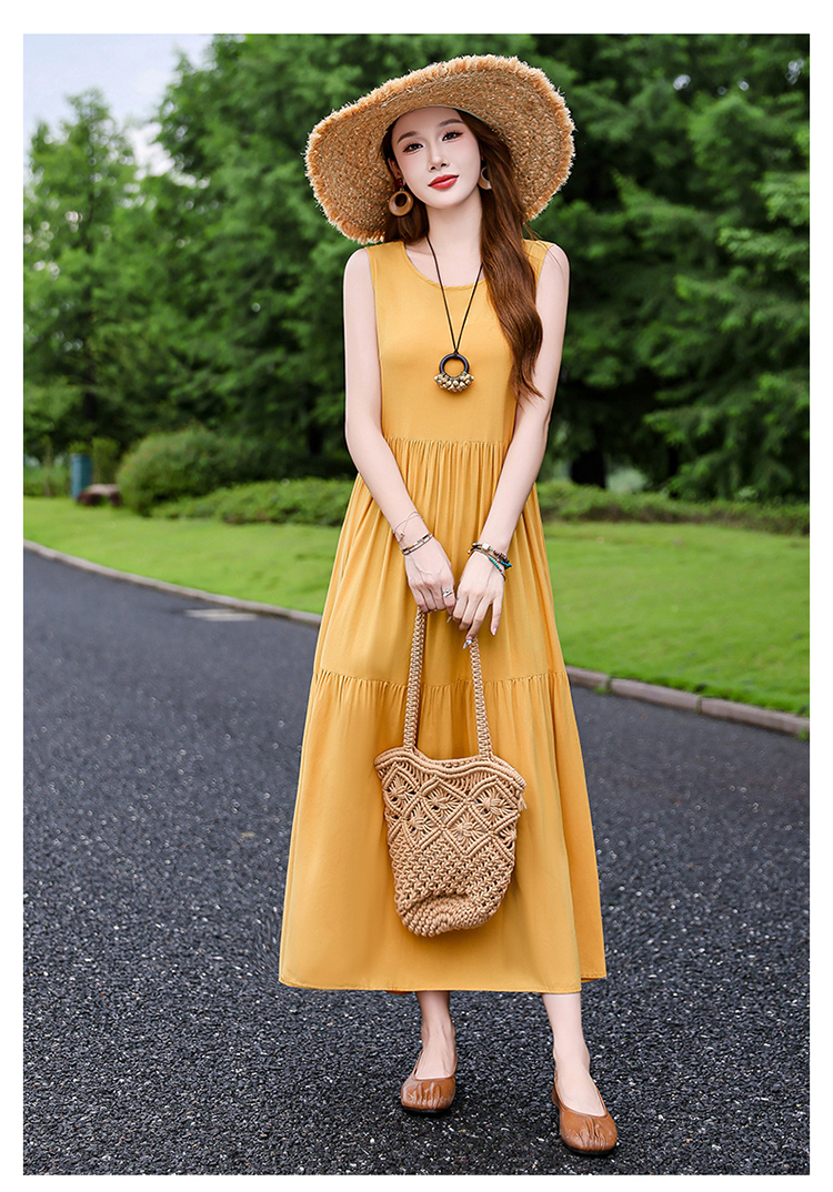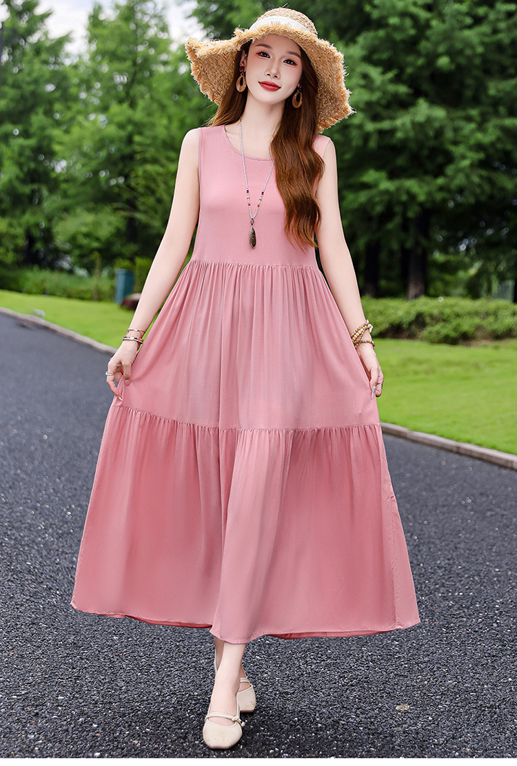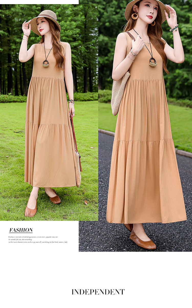 夏季棉綢連衣裙新款三亞年輕款吊帶沙灘裙女無袖度假裙子長裙飄逸
