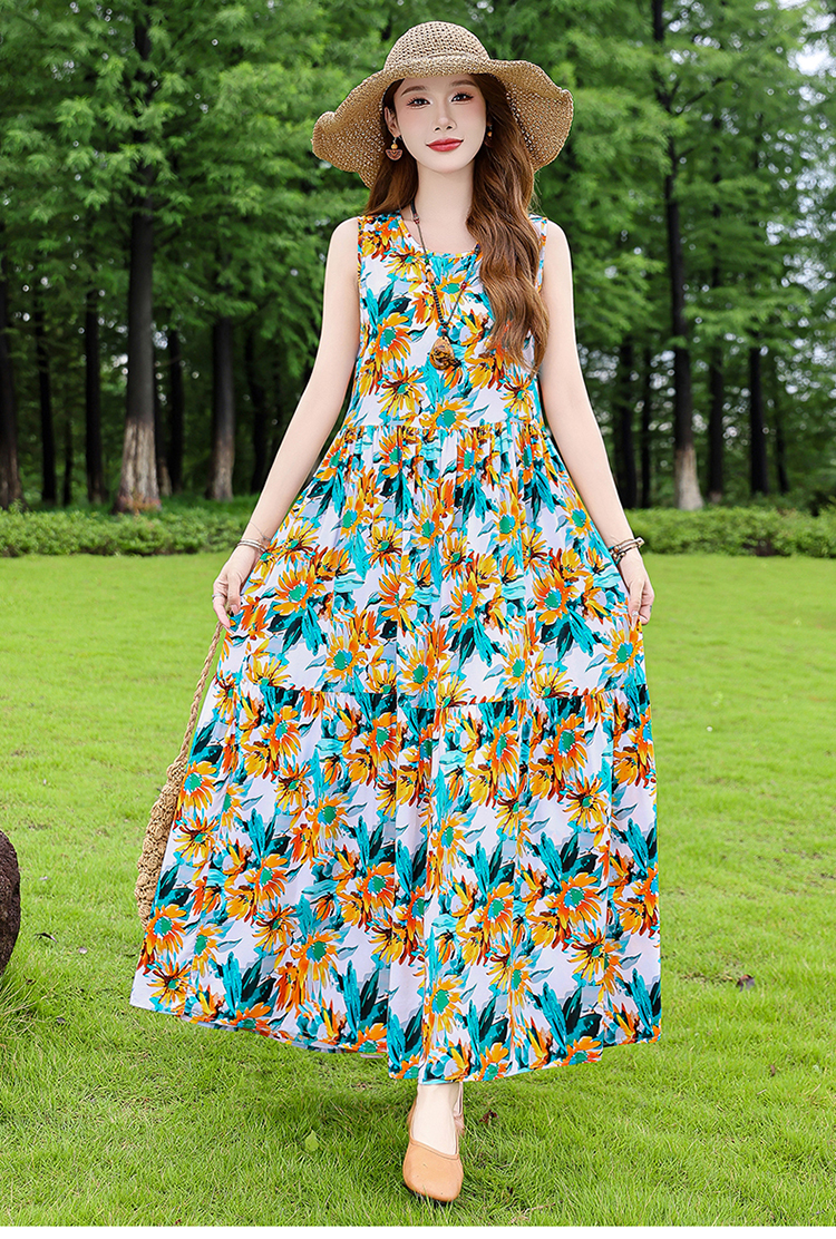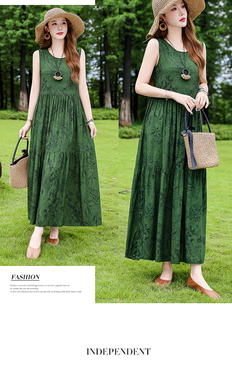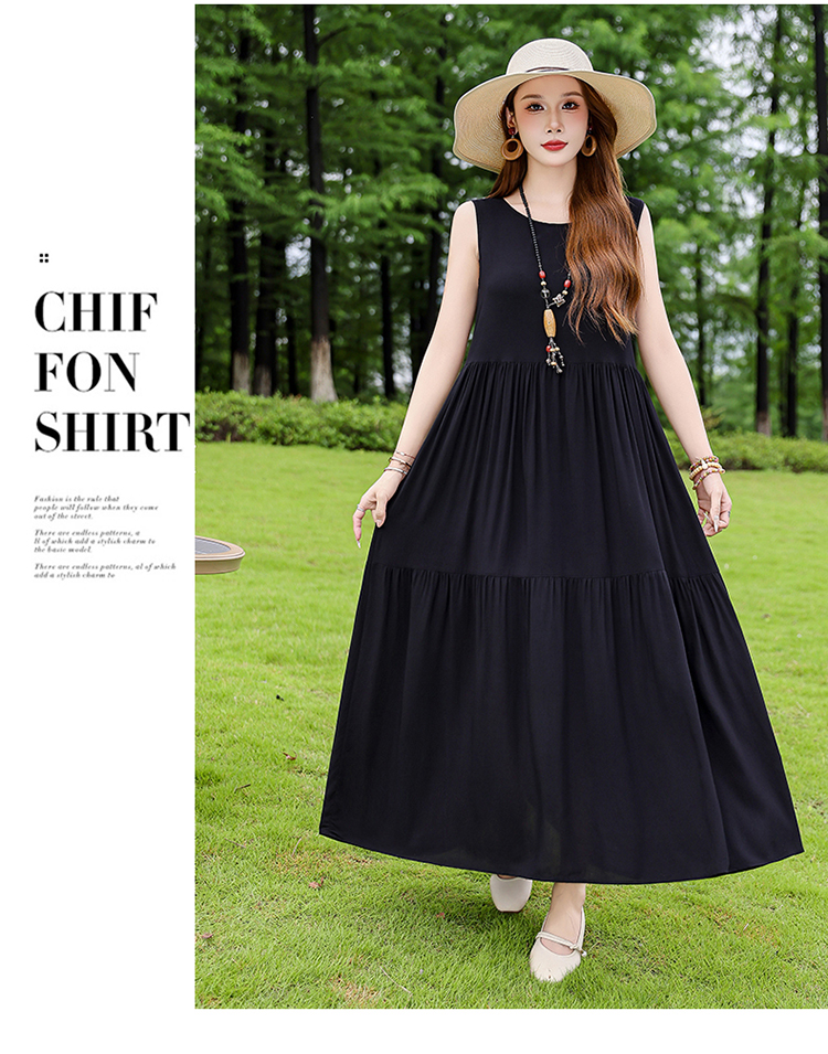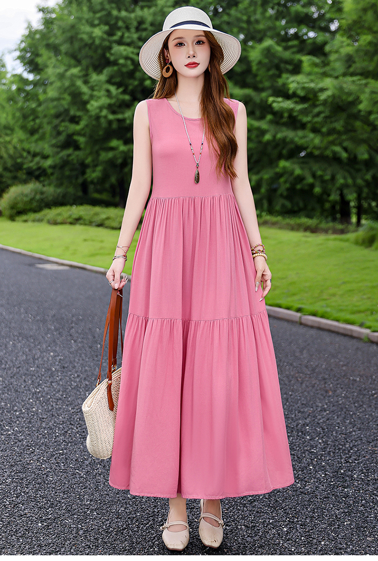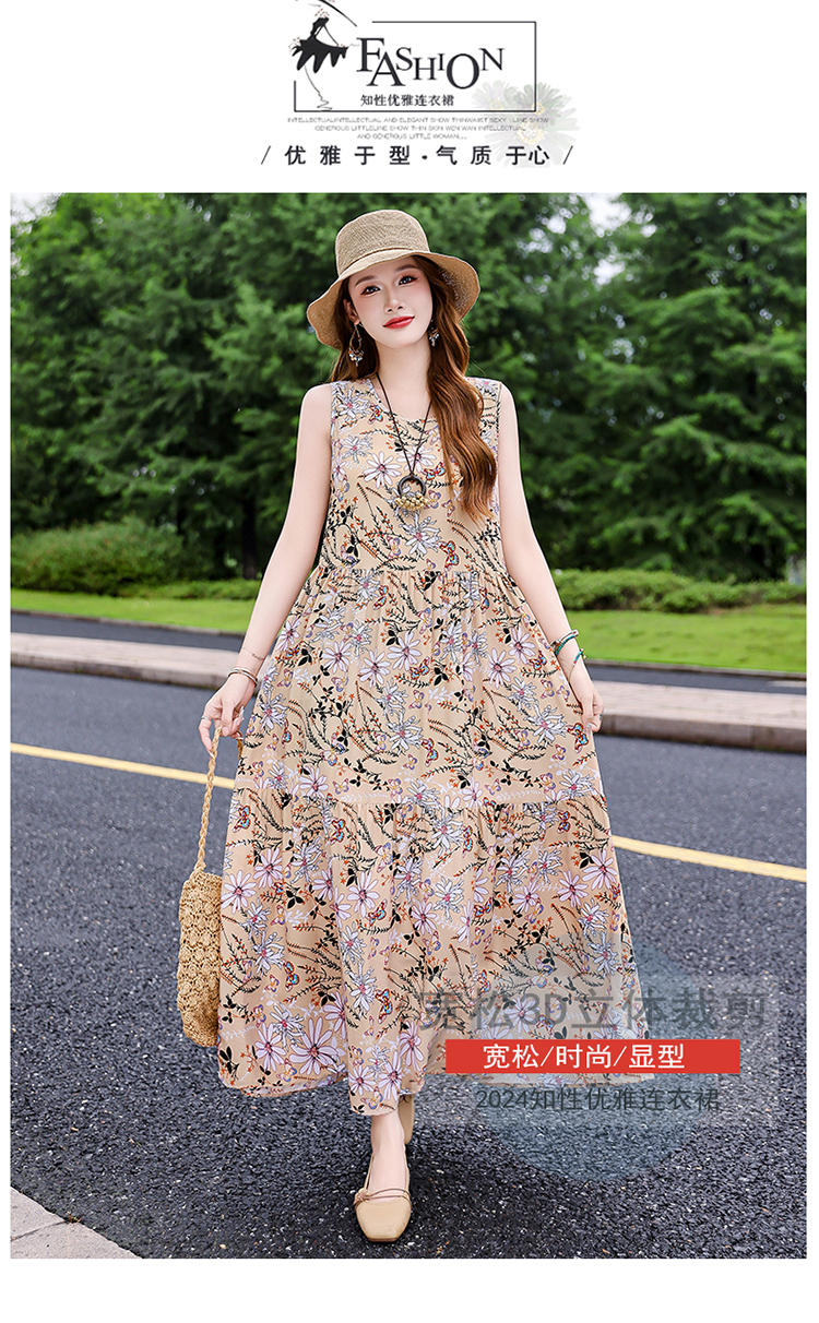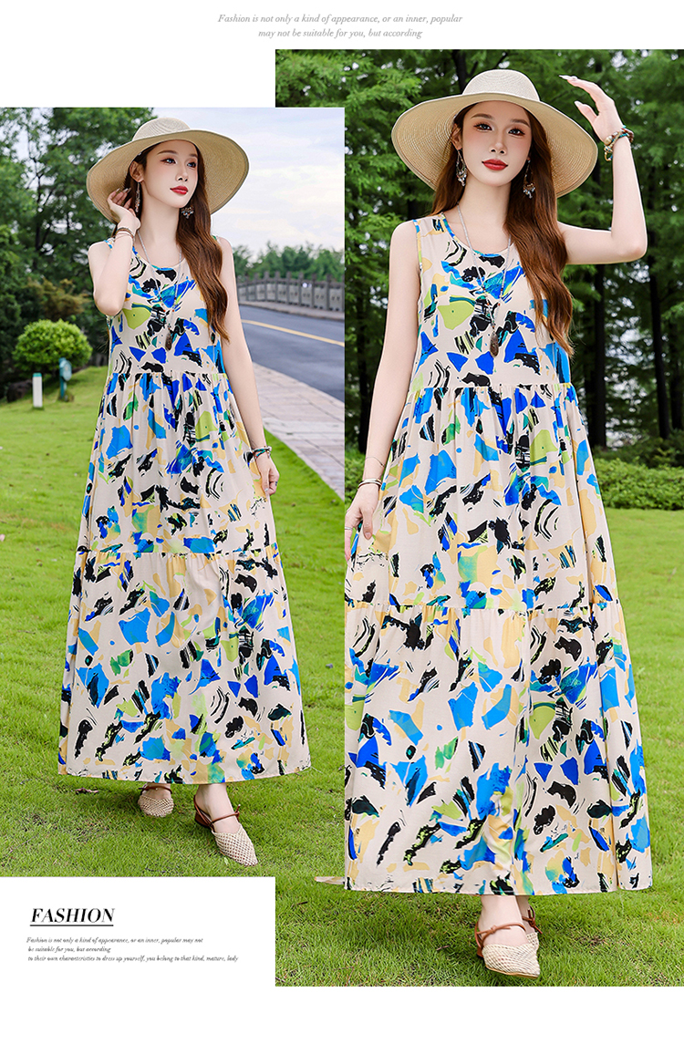 夏季棉綢連衣裙新款三亞年輕款吊帶沙灘裙女無袖度假裙子長裙飄逸
