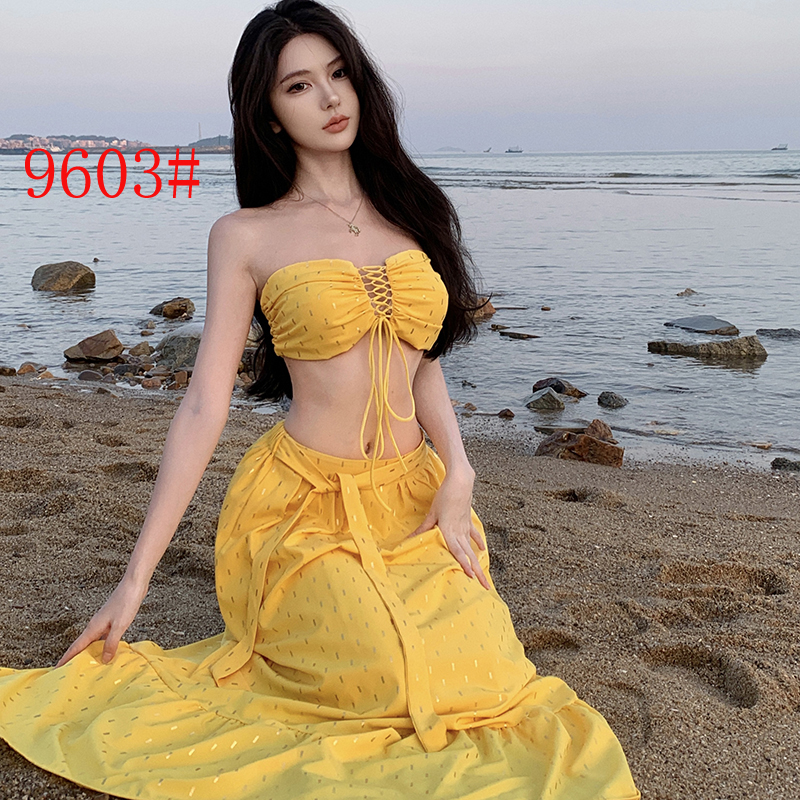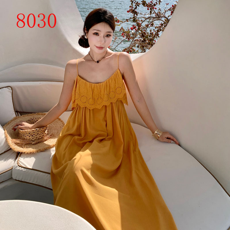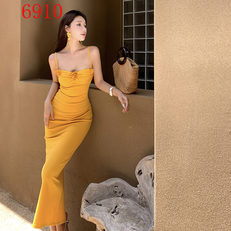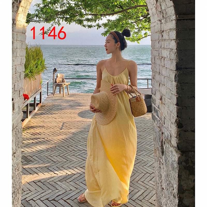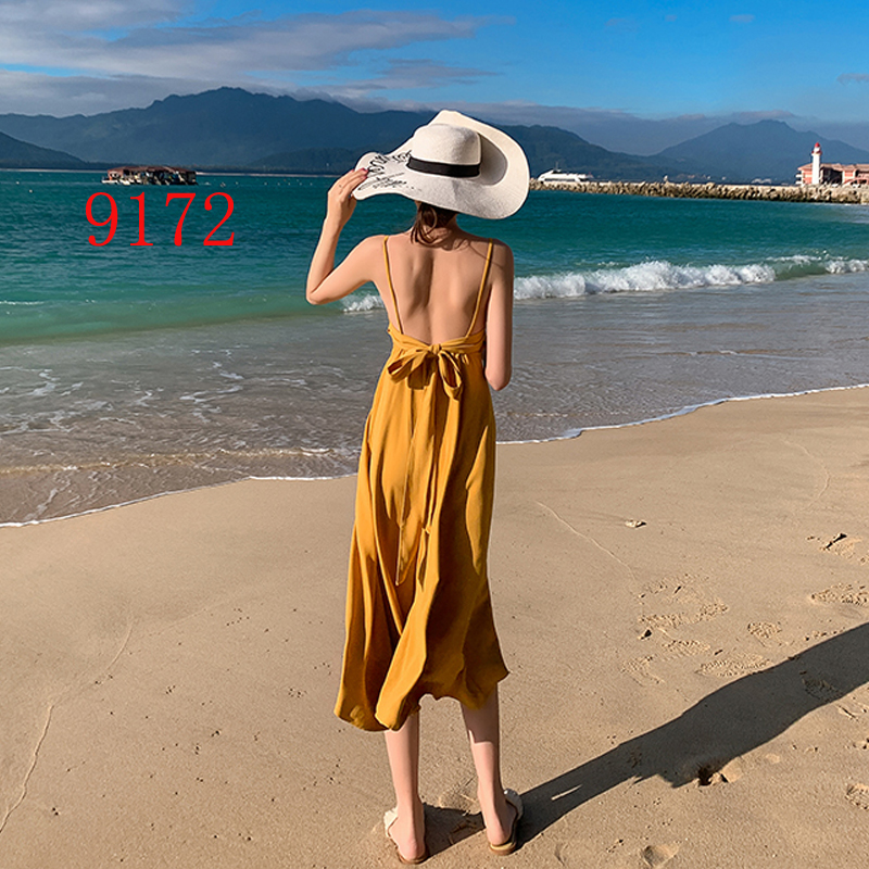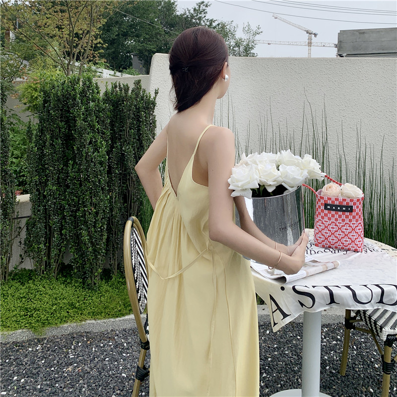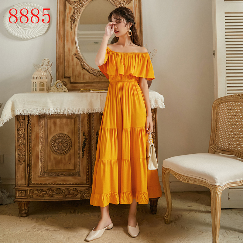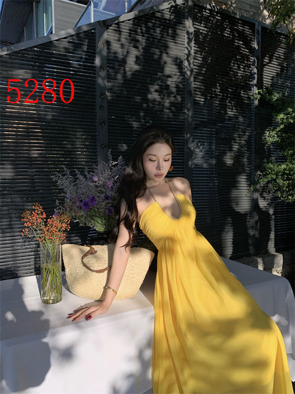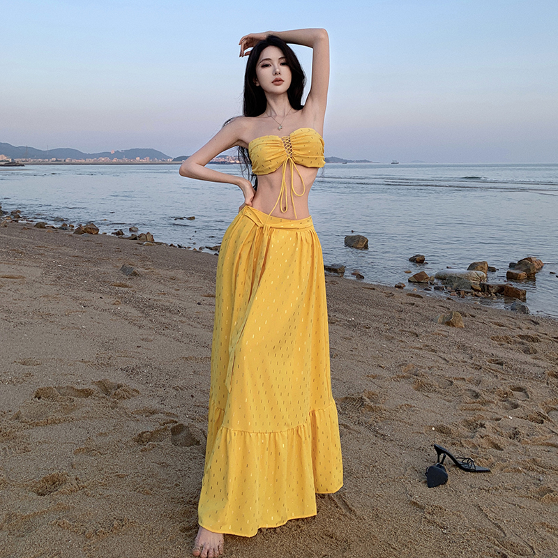 夏季新款巴厘島海邊度假黃色沙灘裙女復古顯瘦韓版連衣裙超仙長裙