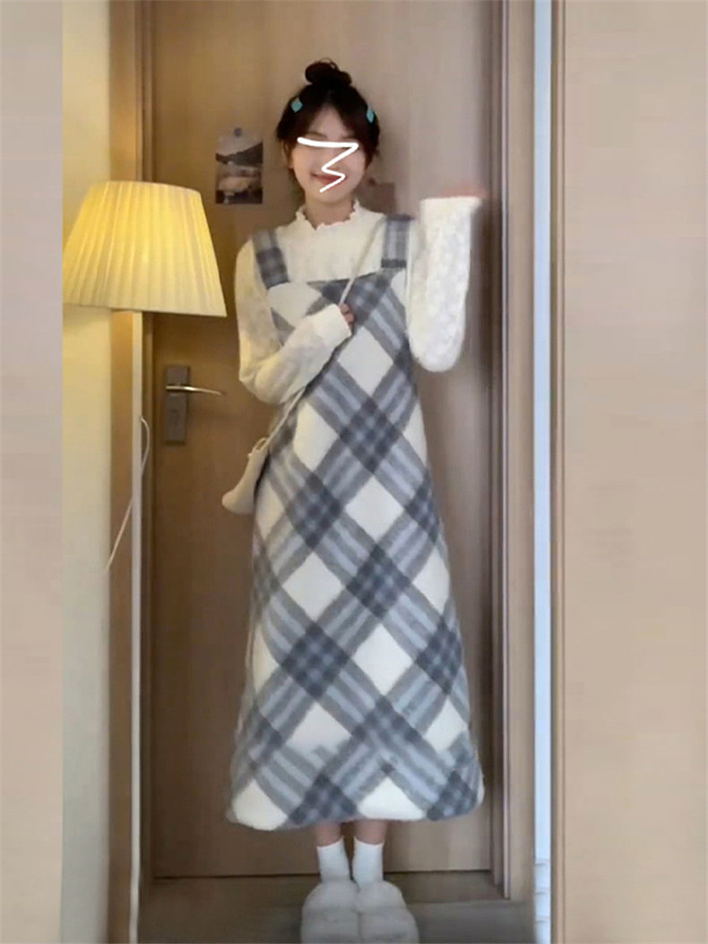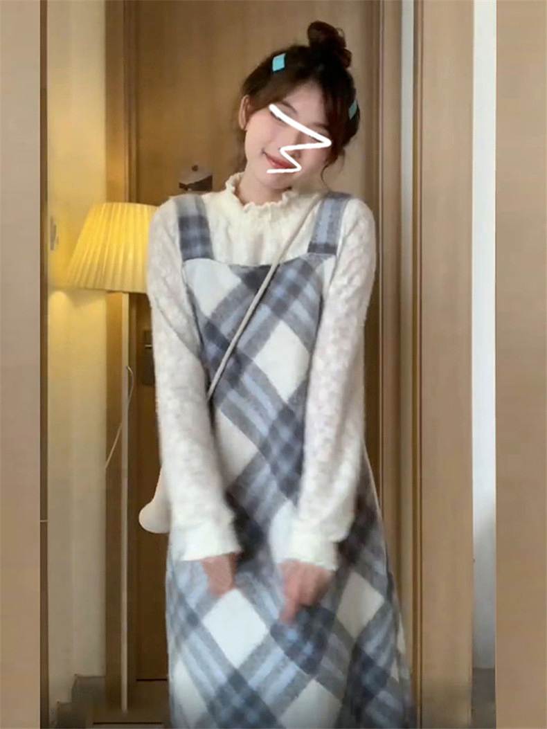 2025新款小個子法式背帶連衣裙子女秋冬季高級感搭配一整套裝長裙