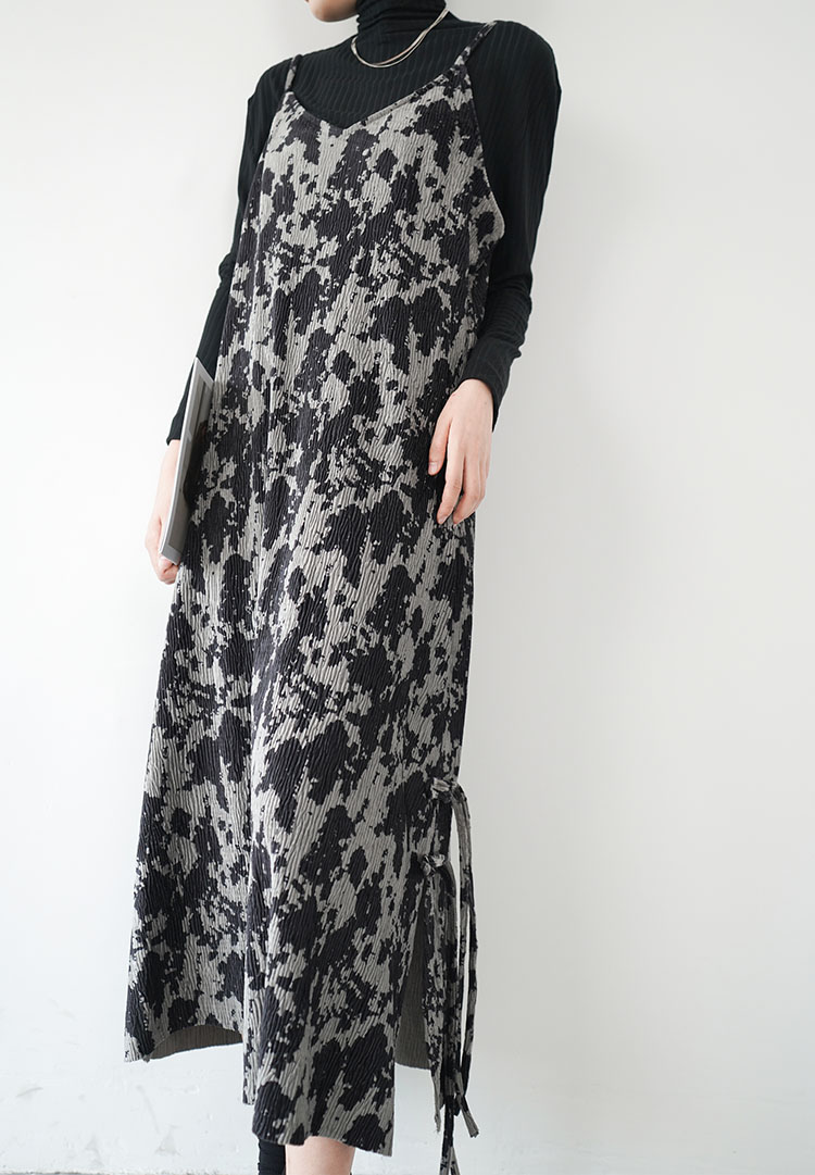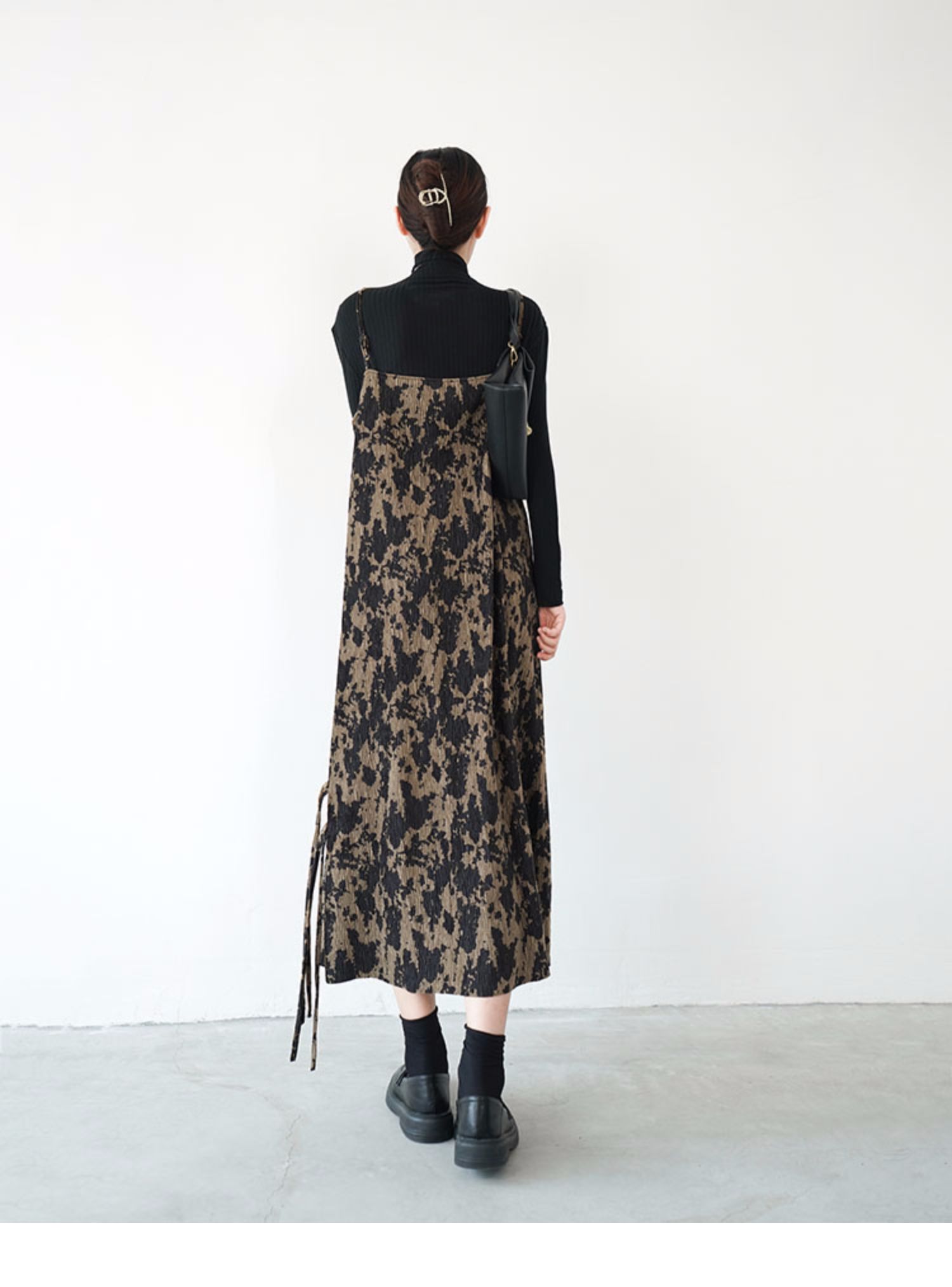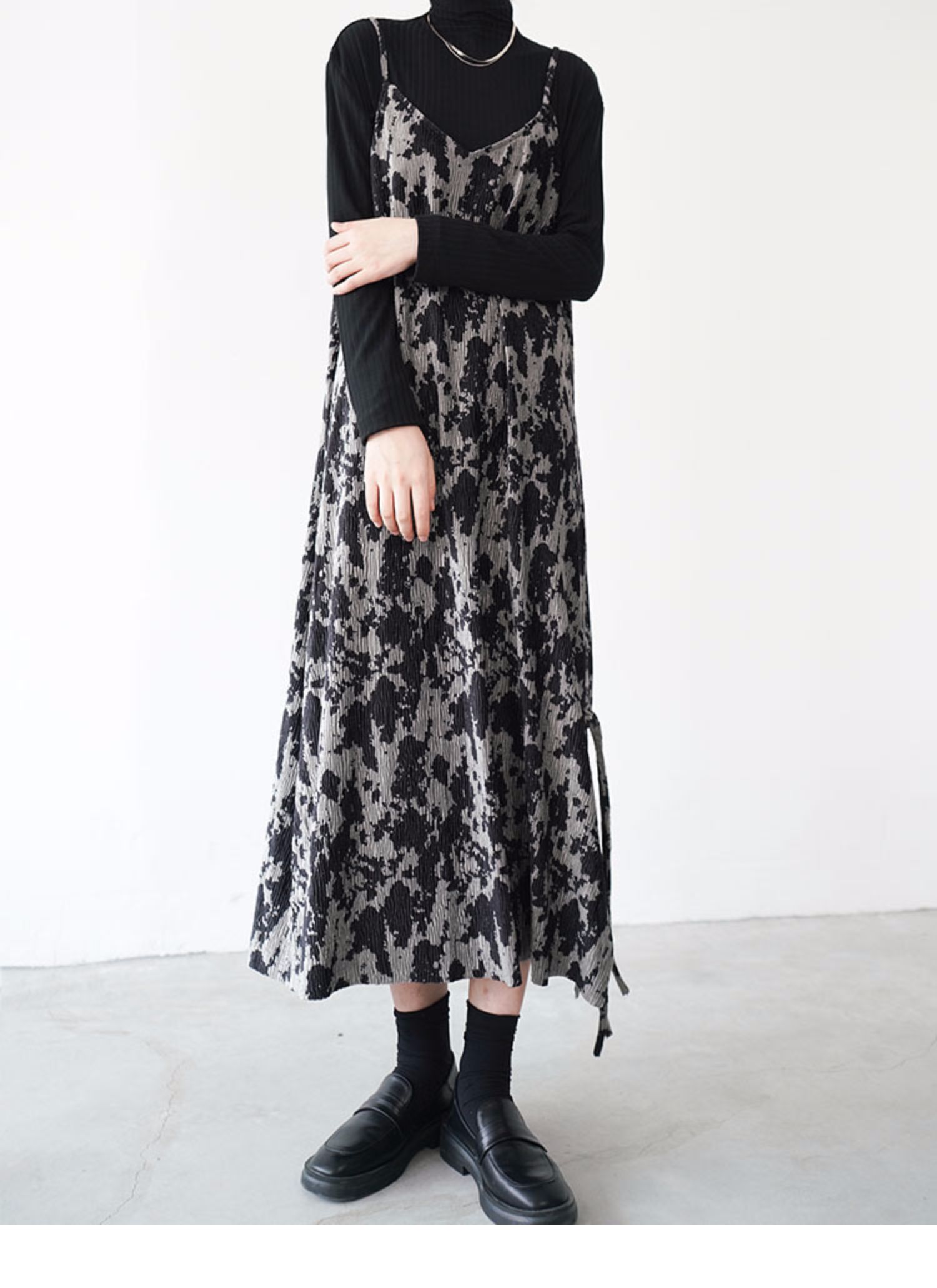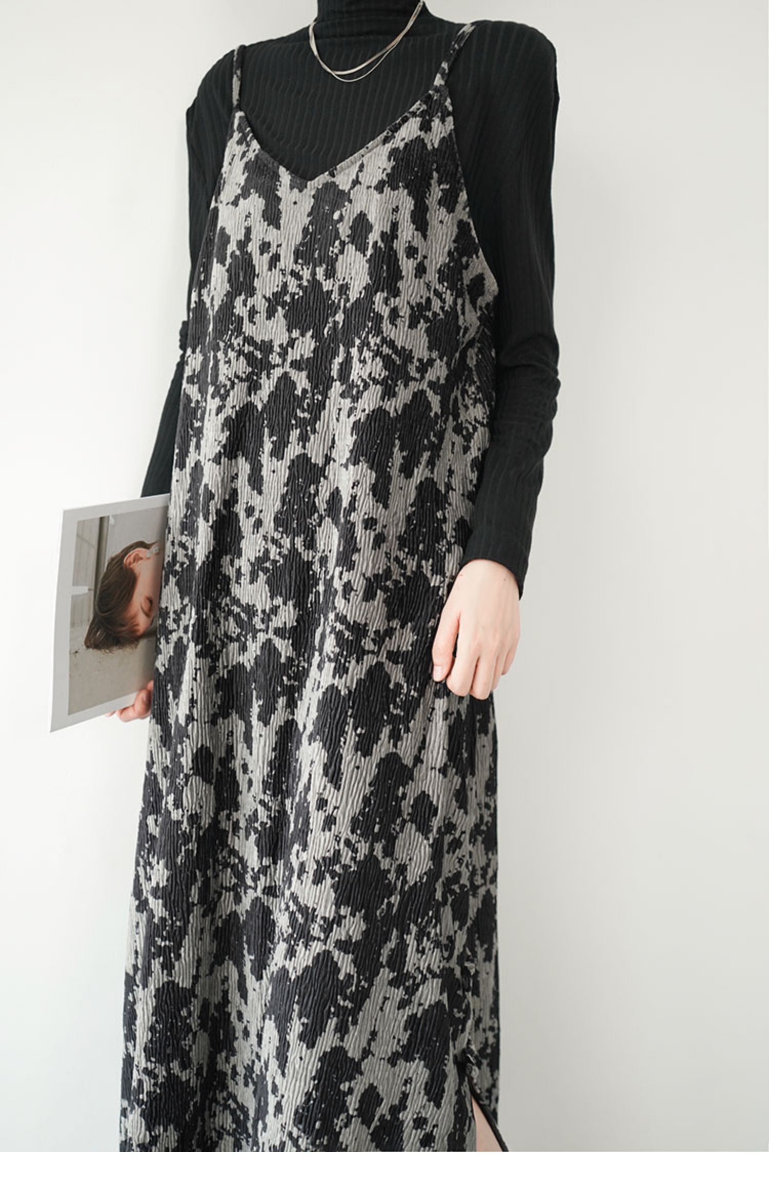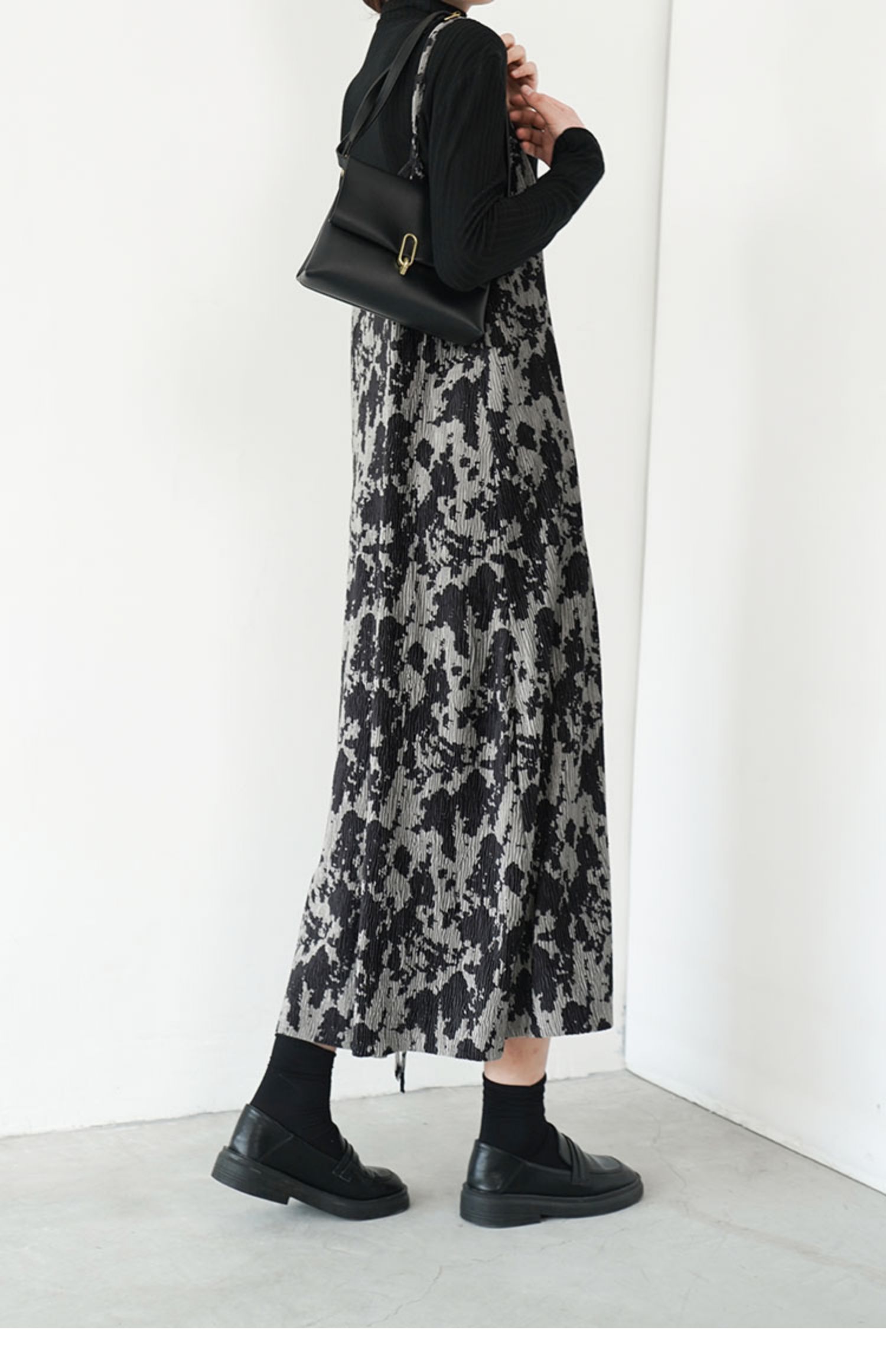 復古碎花絲絨吊帶裙秋冬背帶裙女豹紋連衣裙V領中長款燈芯絨裙子