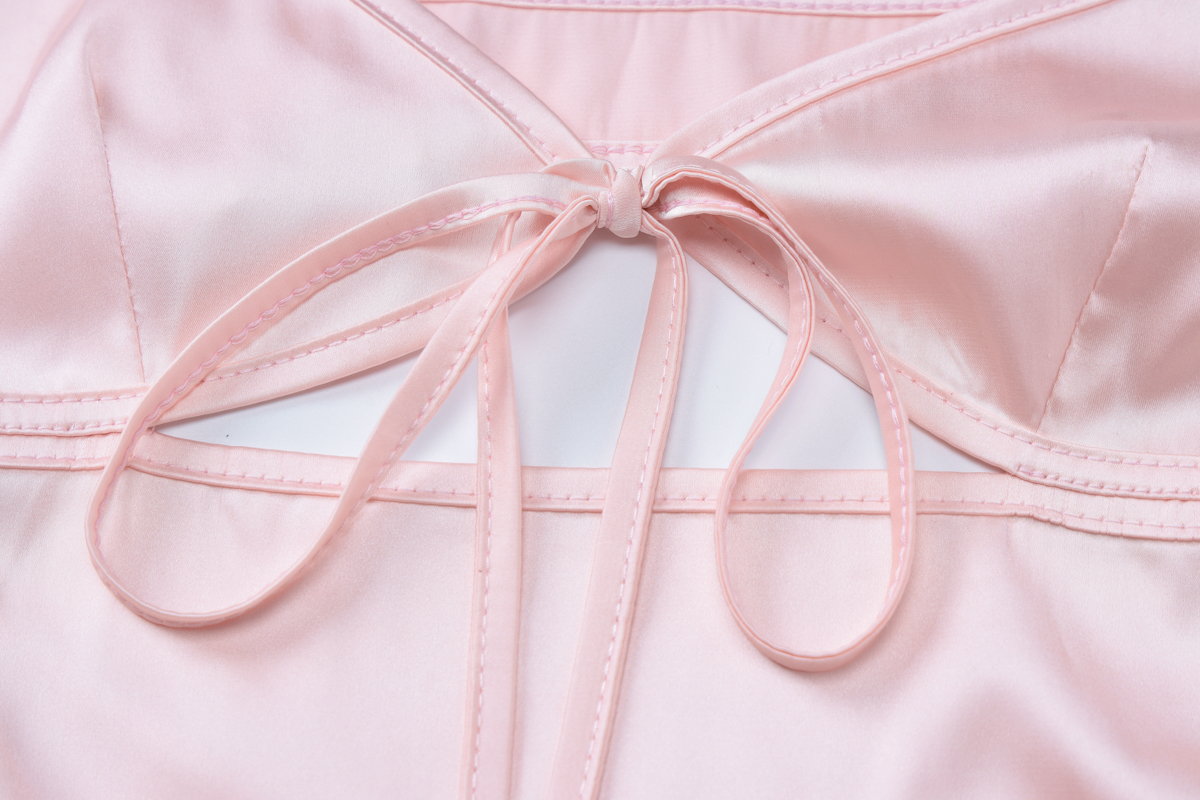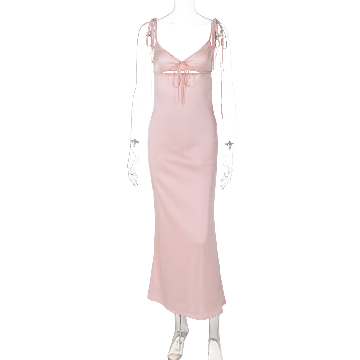 少女粉絲緞面高級感鏤空設計吊帶連衣裙法式修身顯瘦包臀魚尾長裙