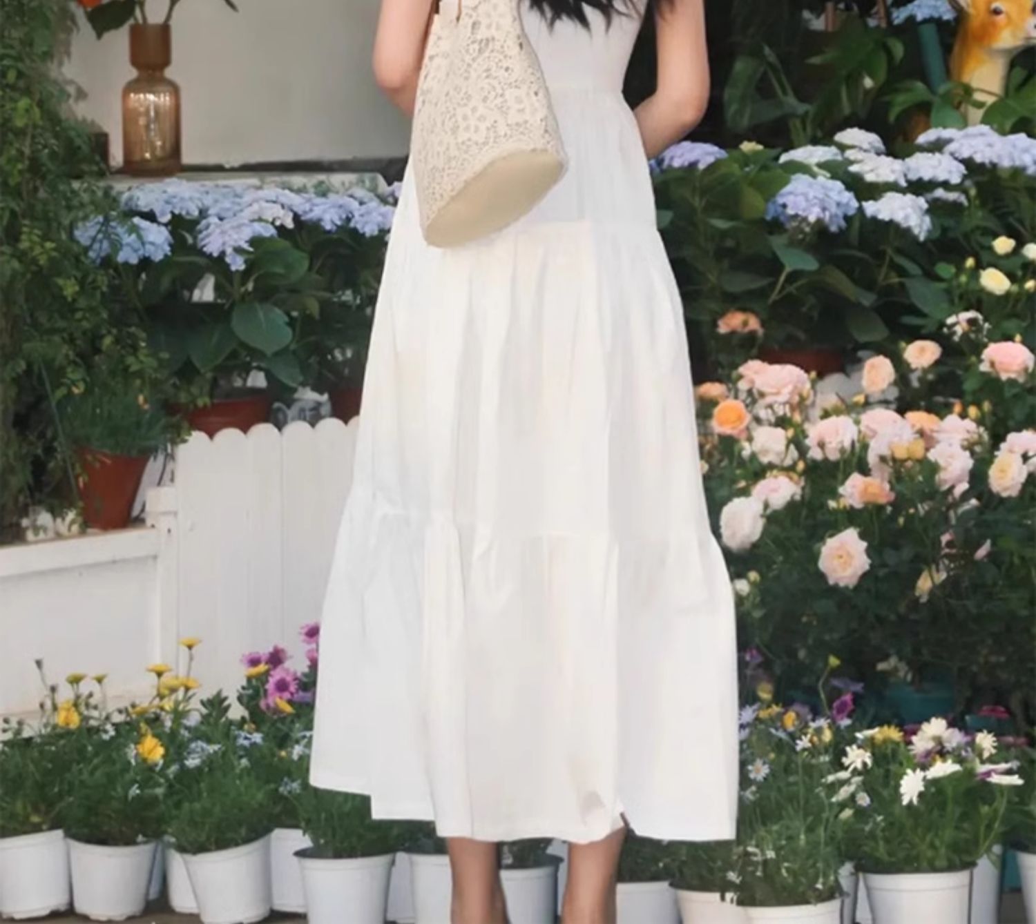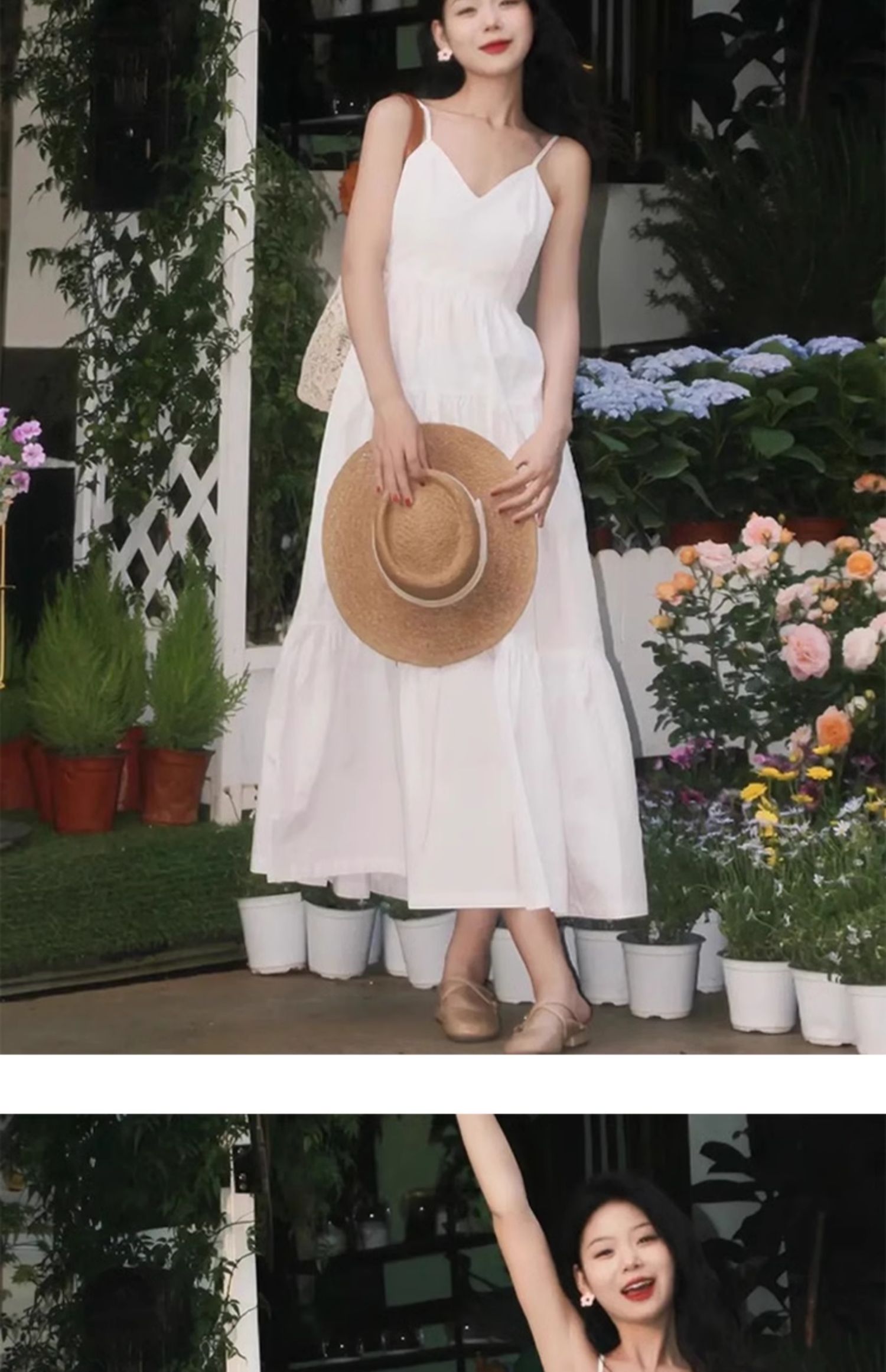 白色吊帶連衣裙女2025夏季新款法式V領溫柔氣質顯瘦初戀蛋糕長裙
