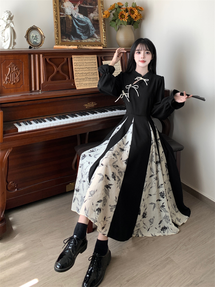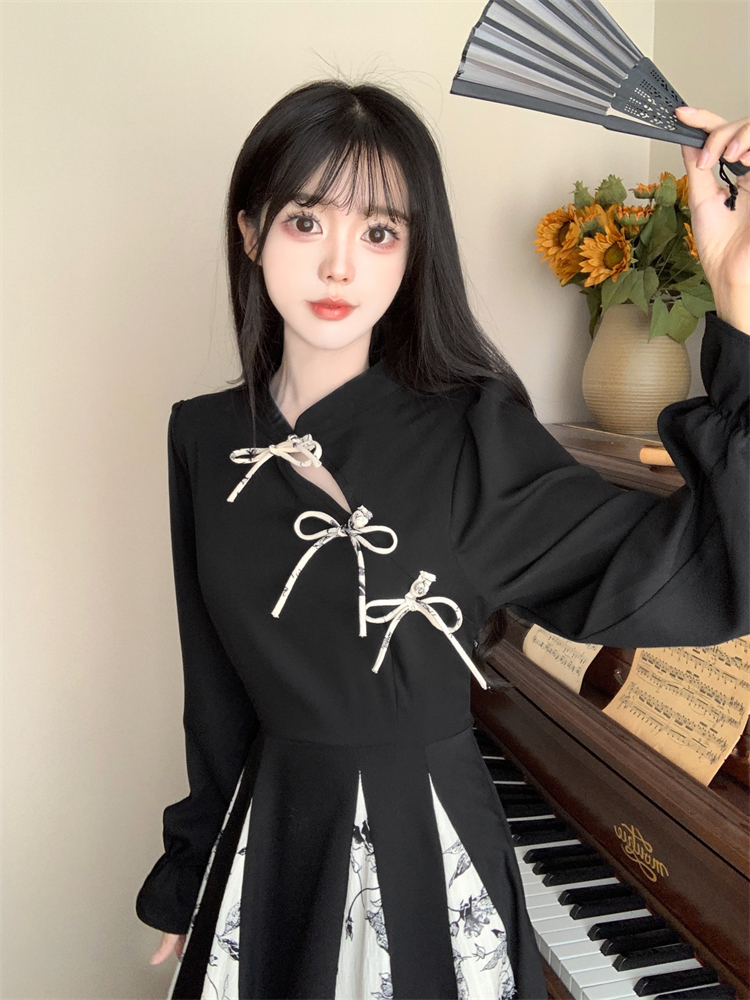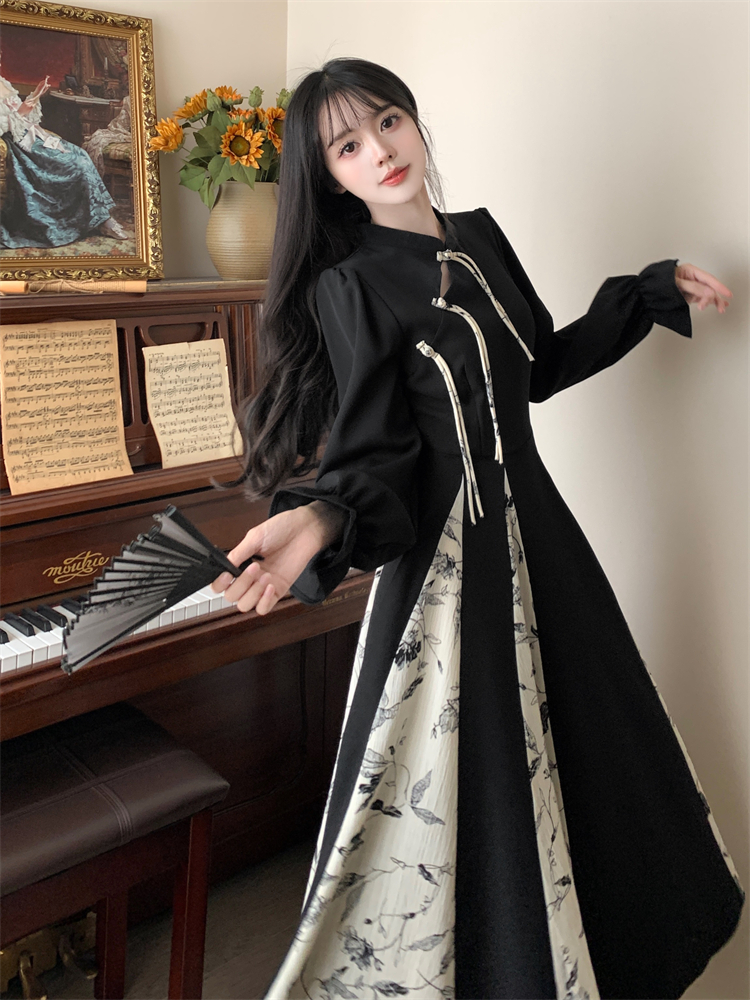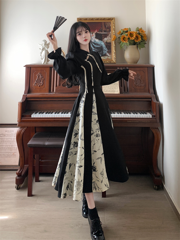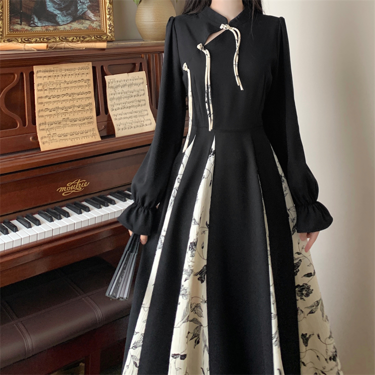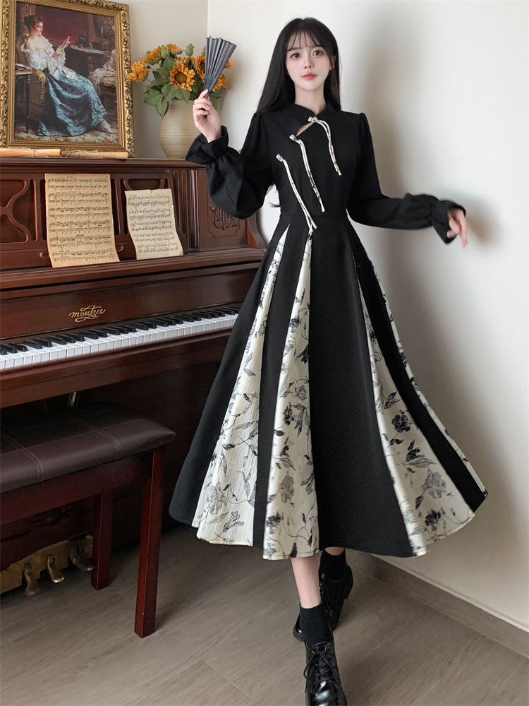 出蓆重要場合巨好看的早秋冬裝日國風新中式旗袍帝政長袖連衣裙子