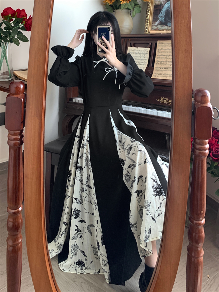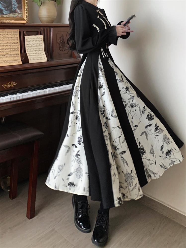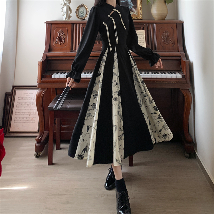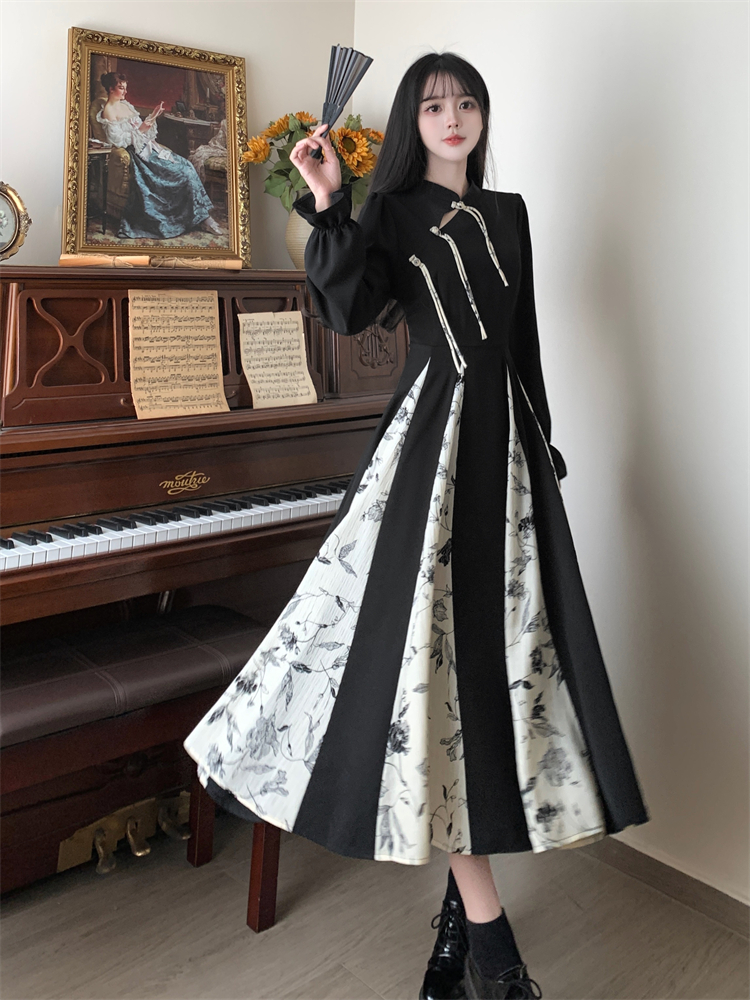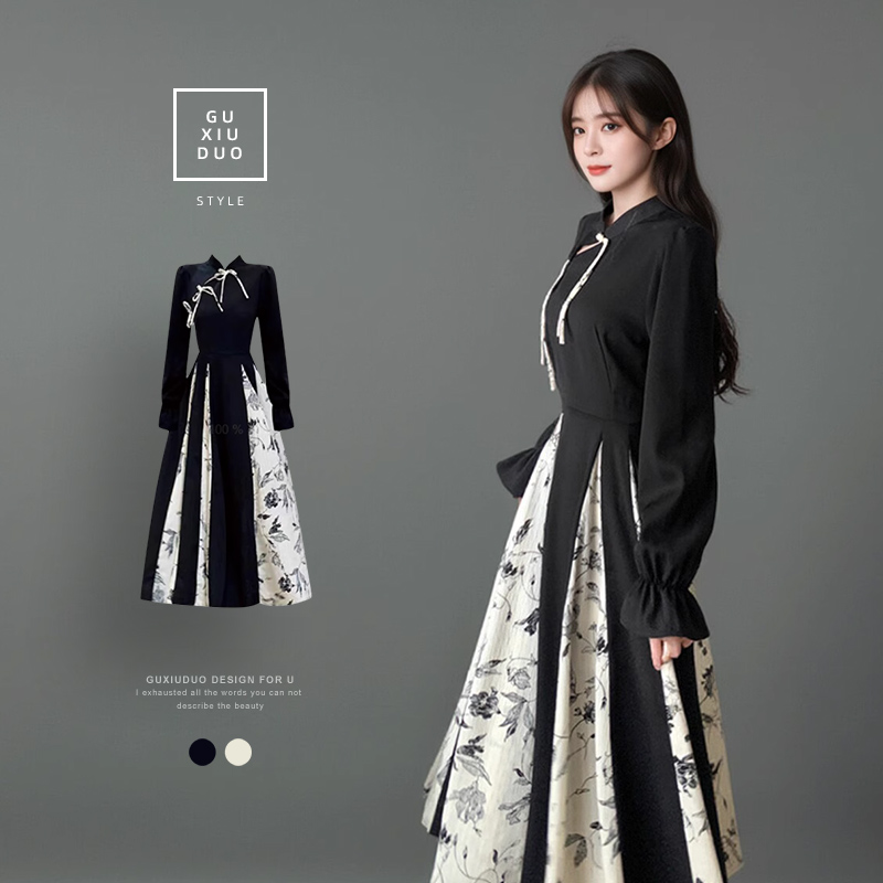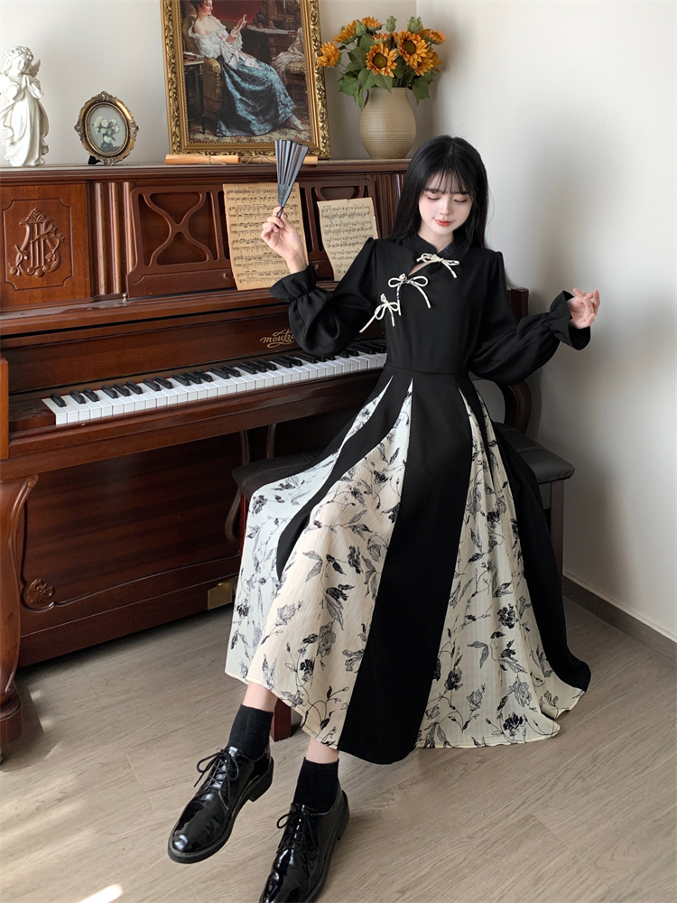 出蓆重要場合巨好看的早秋冬裝日國風新中式旗袍帝政長袖連衣裙子