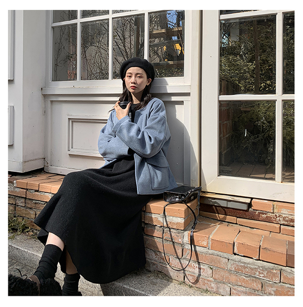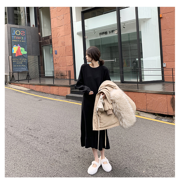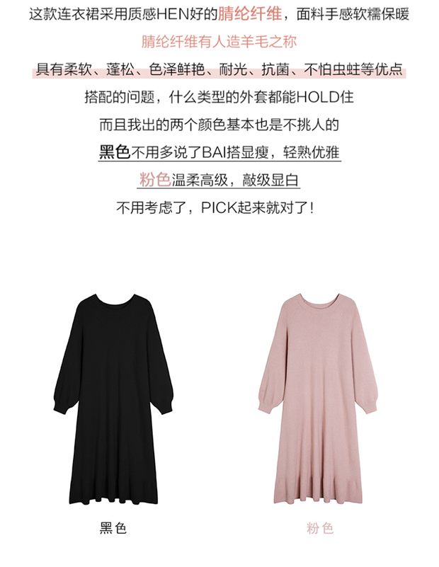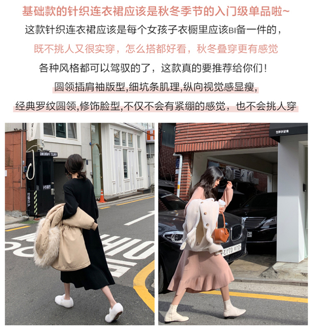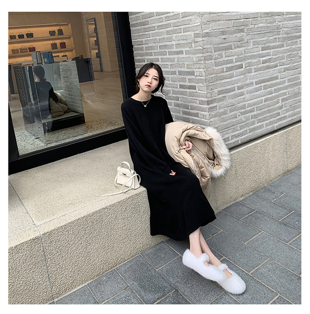 大碼女裝寬松加厚長款魚尾毛衣裙秋冬胖mm遮肚內搭過膝針織連衣裙