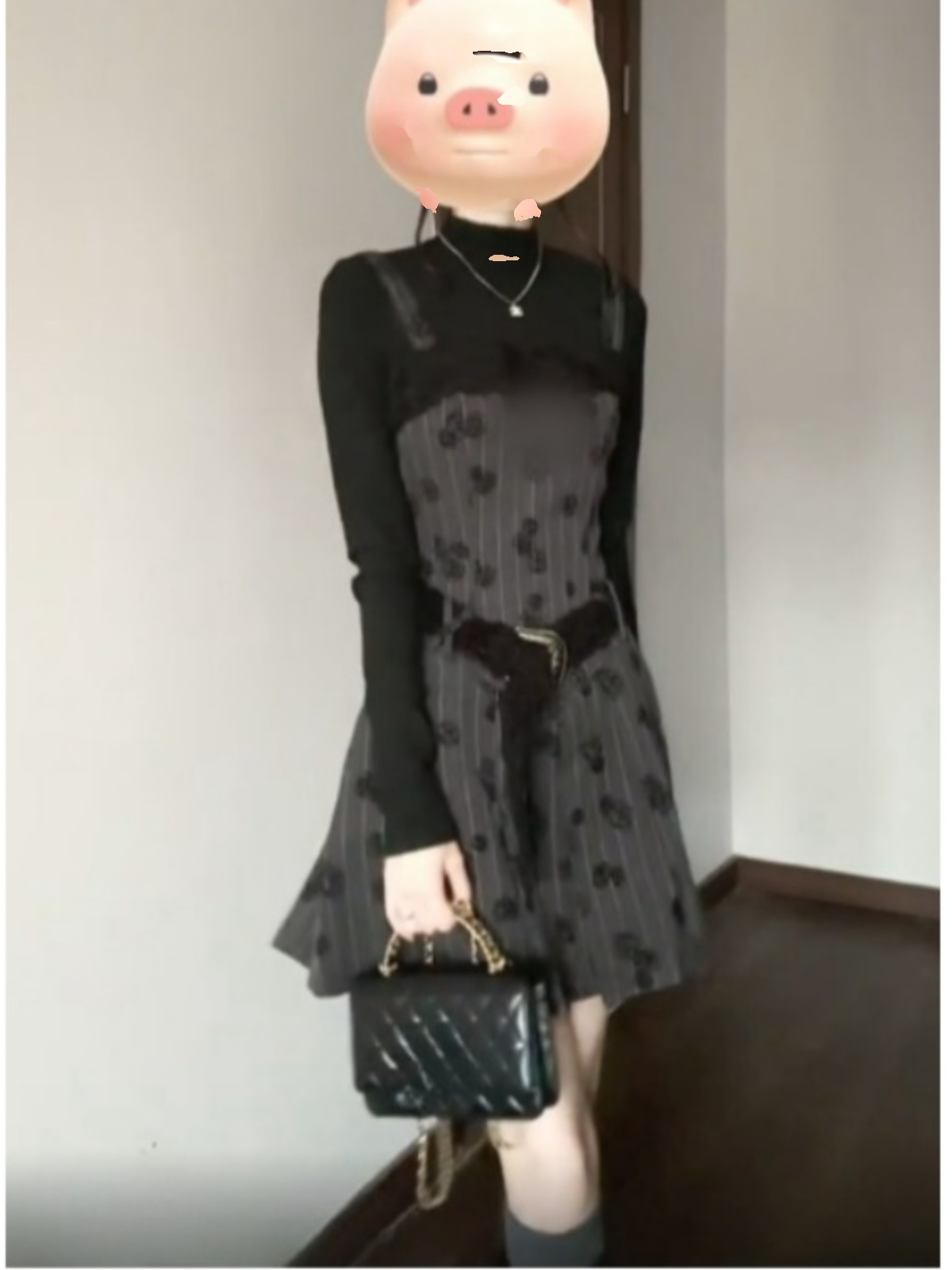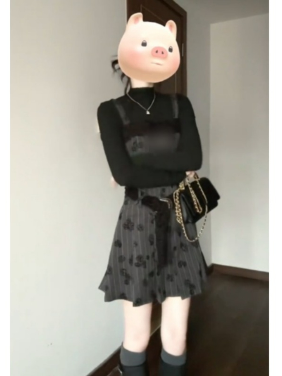 韓系氛圍感穿搭打底衫吊帶百褶連衣裙兩件套裝今年流行爆款裙子秋