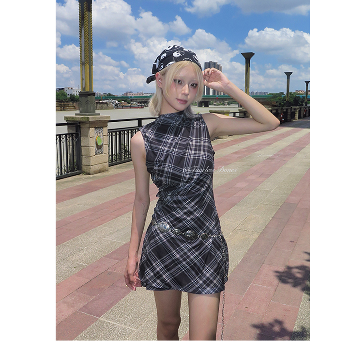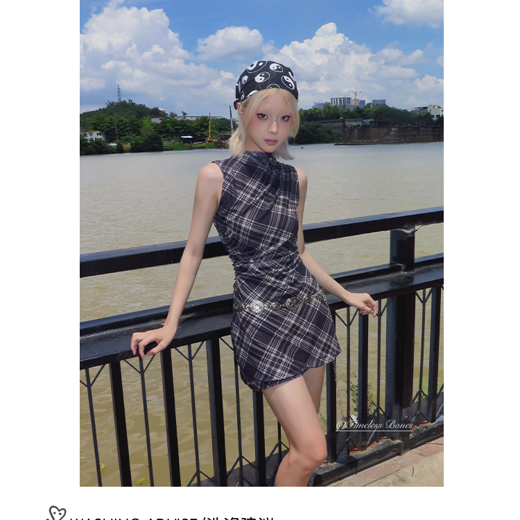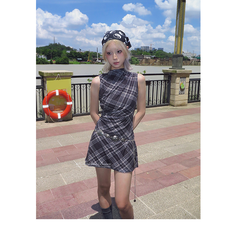千禧風辣妹連衣裙音樂節穿搭格子網紗裙復古y2k亞比美式龐克裙子