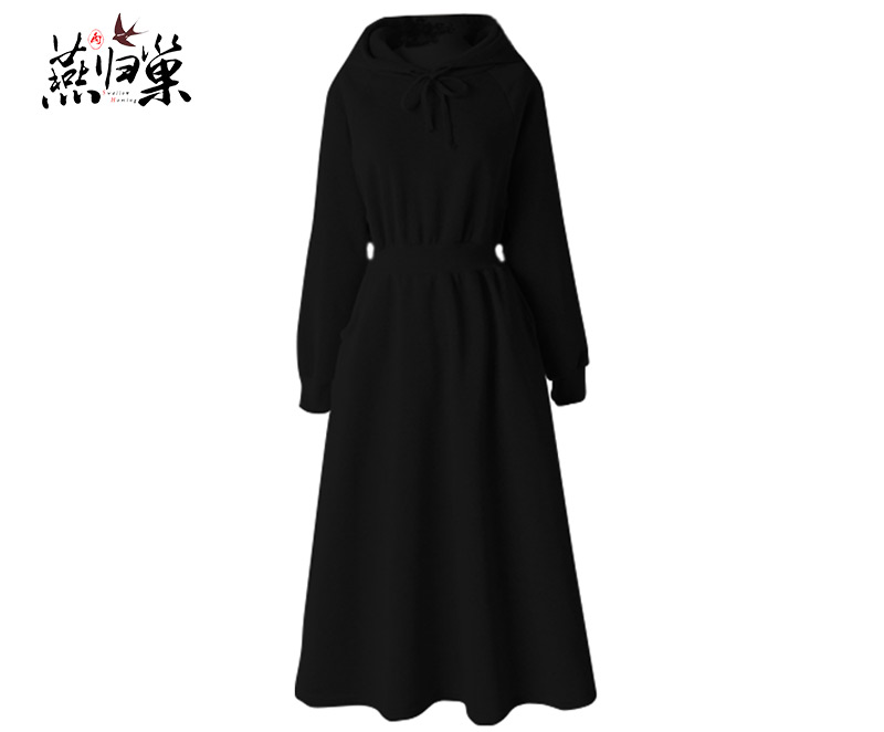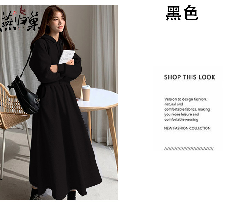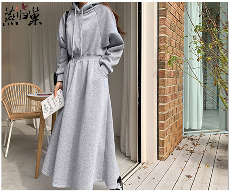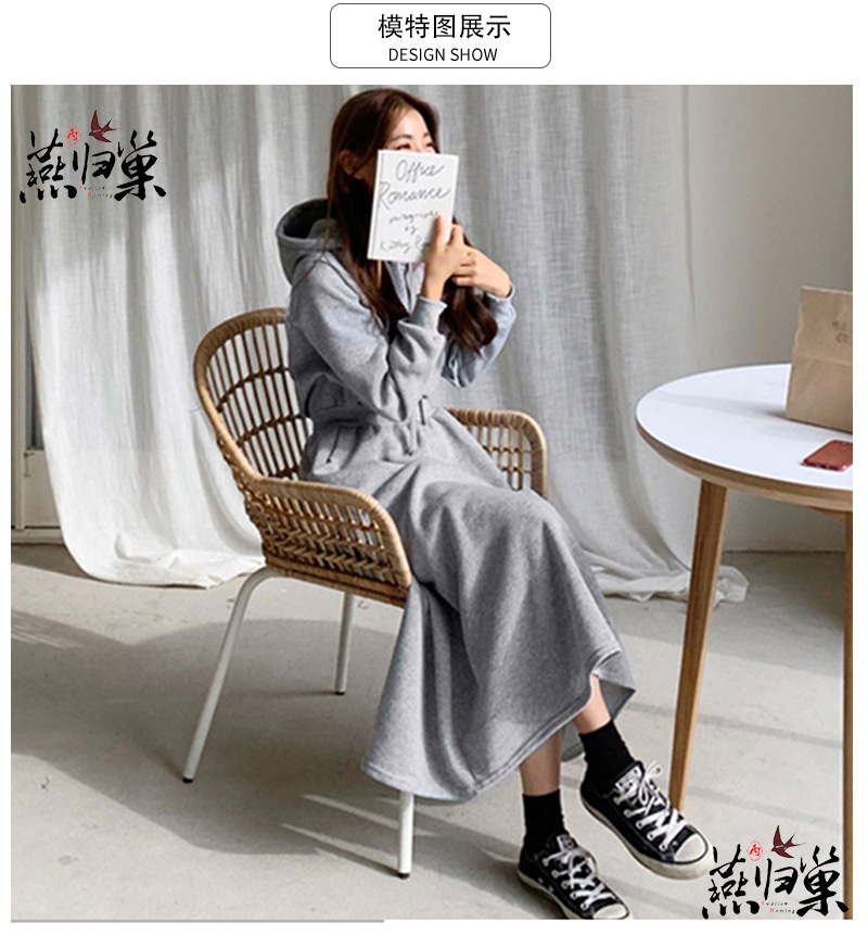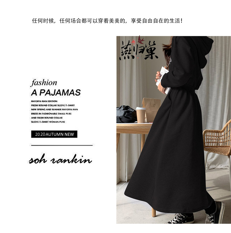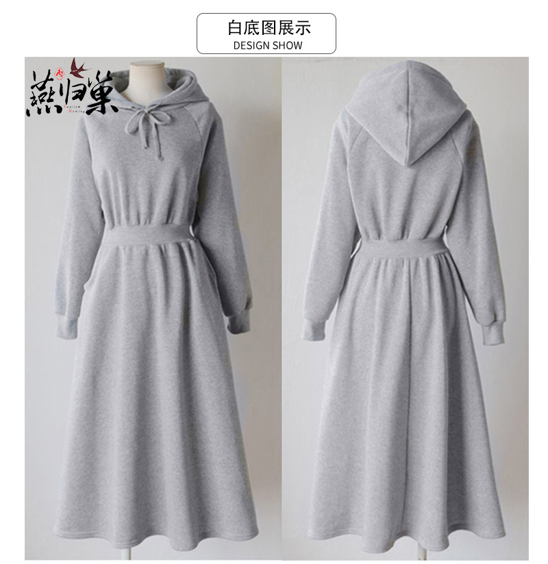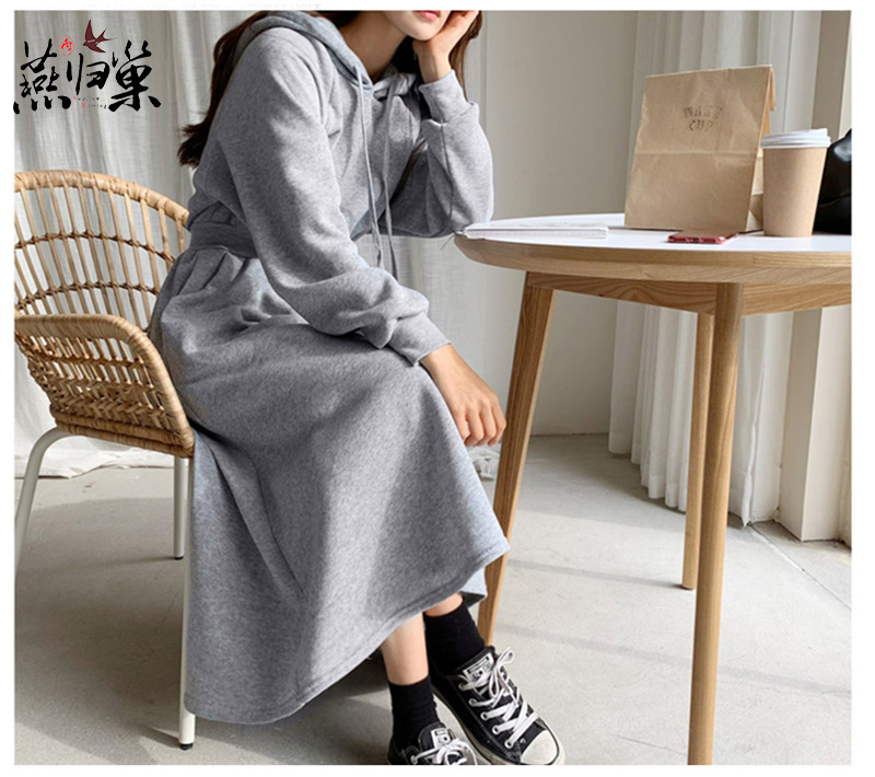 秋冬連帽長款加厚加絨衛衣裙大碼收腰胖mm長裙到腳踝學生女連衣裙