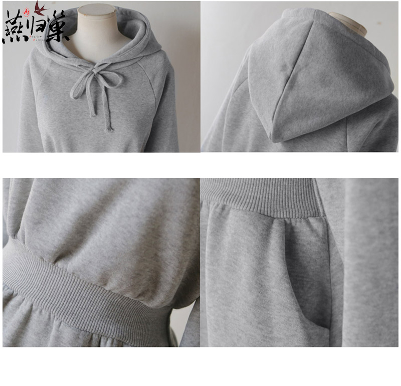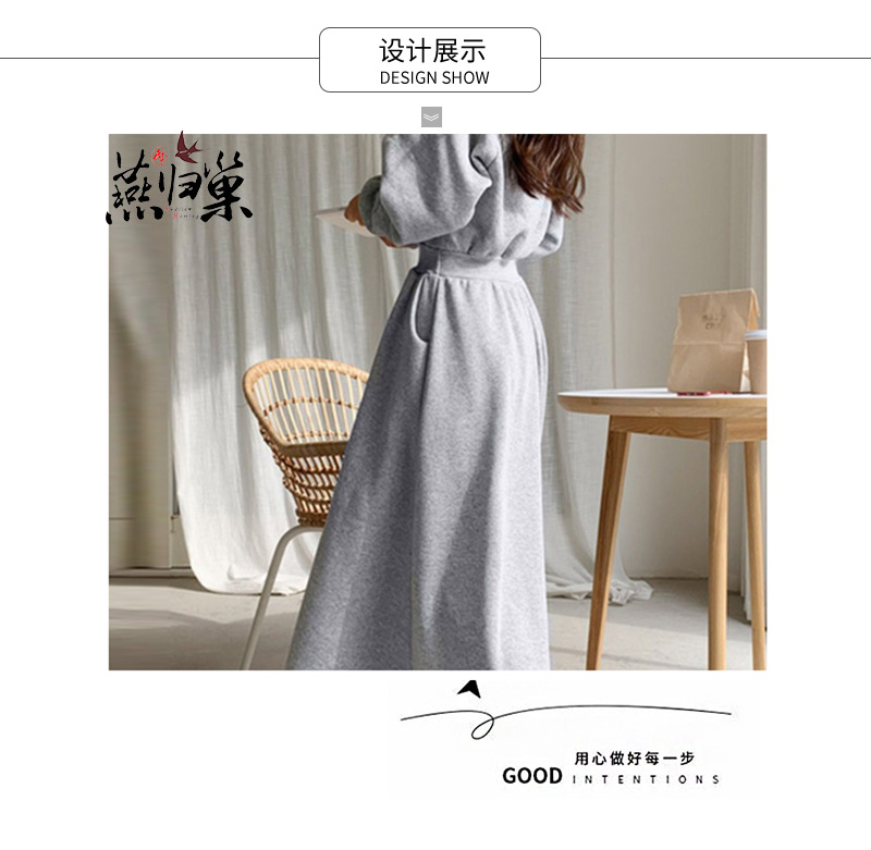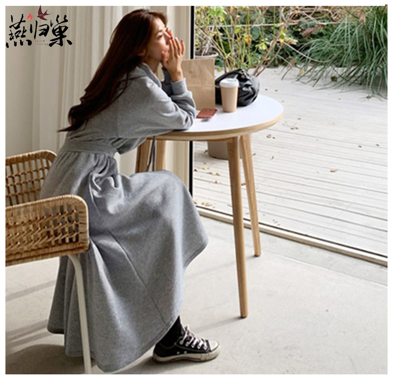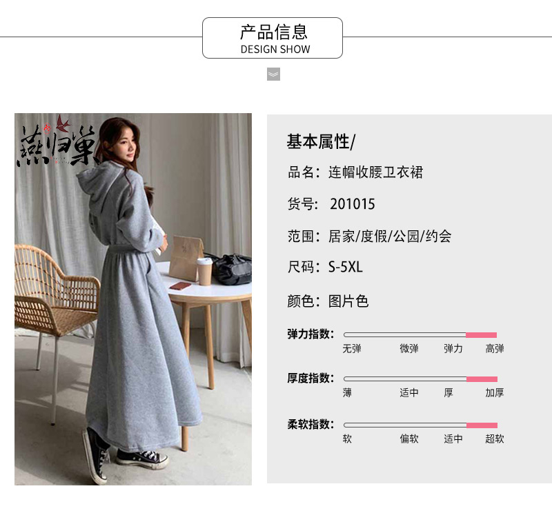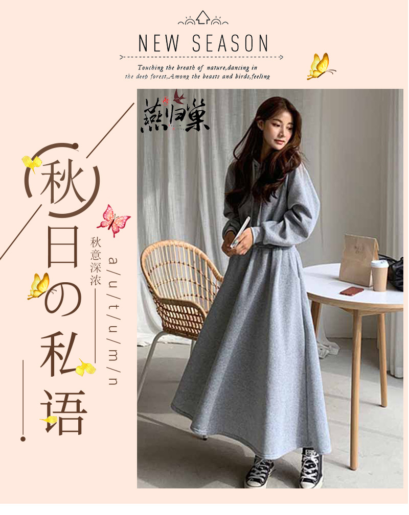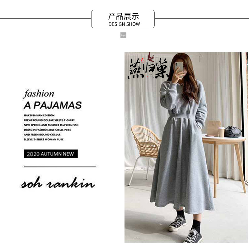 秋冬連帽長款加厚加絨衛衣裙大碼收腰胖mm長裙到腳踝學生女連衣裙