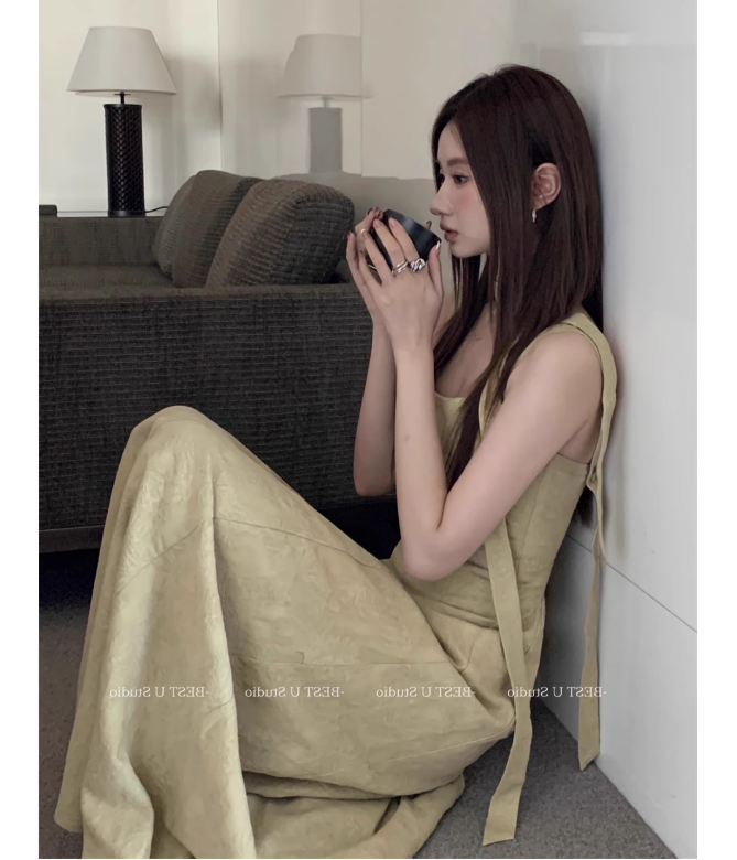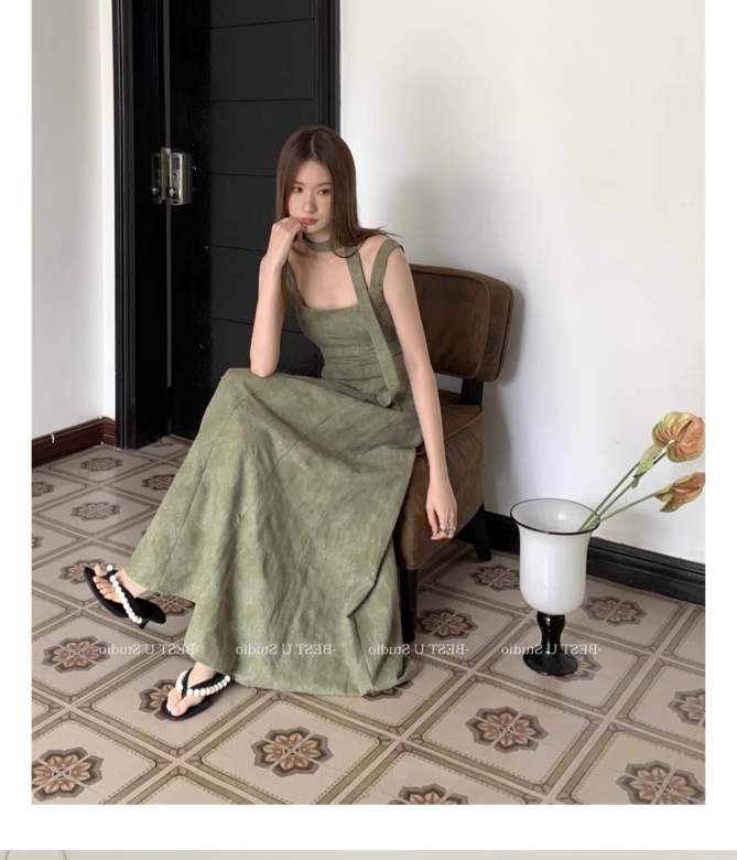2025夏季穿搭巨好看的法式今年流行獨特漂亮掐腰吊帶掛脖連衣裙女
