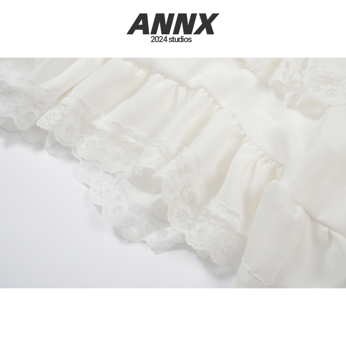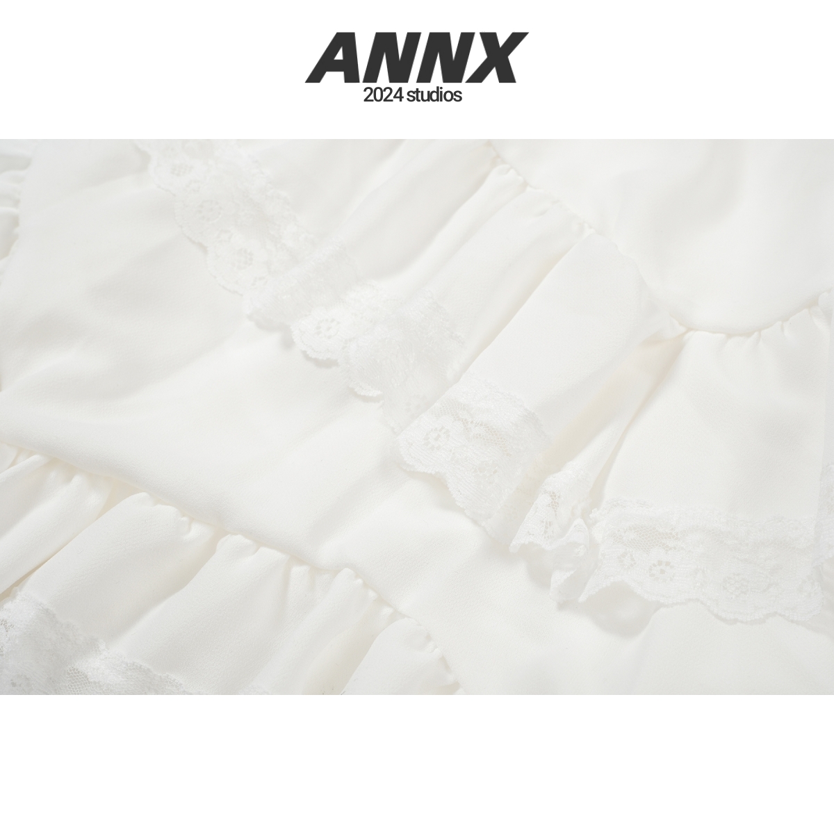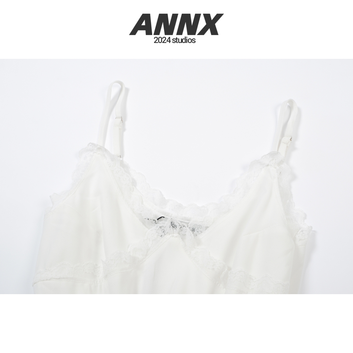 ANNX2025新款不規則白蕾絲拼接吊帶連衣裙女收腰顯瘦內搭短裙子