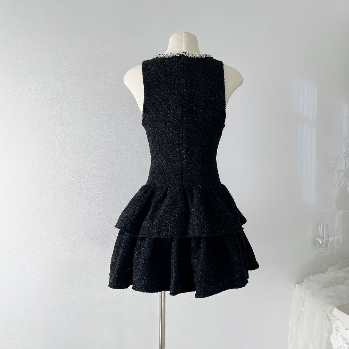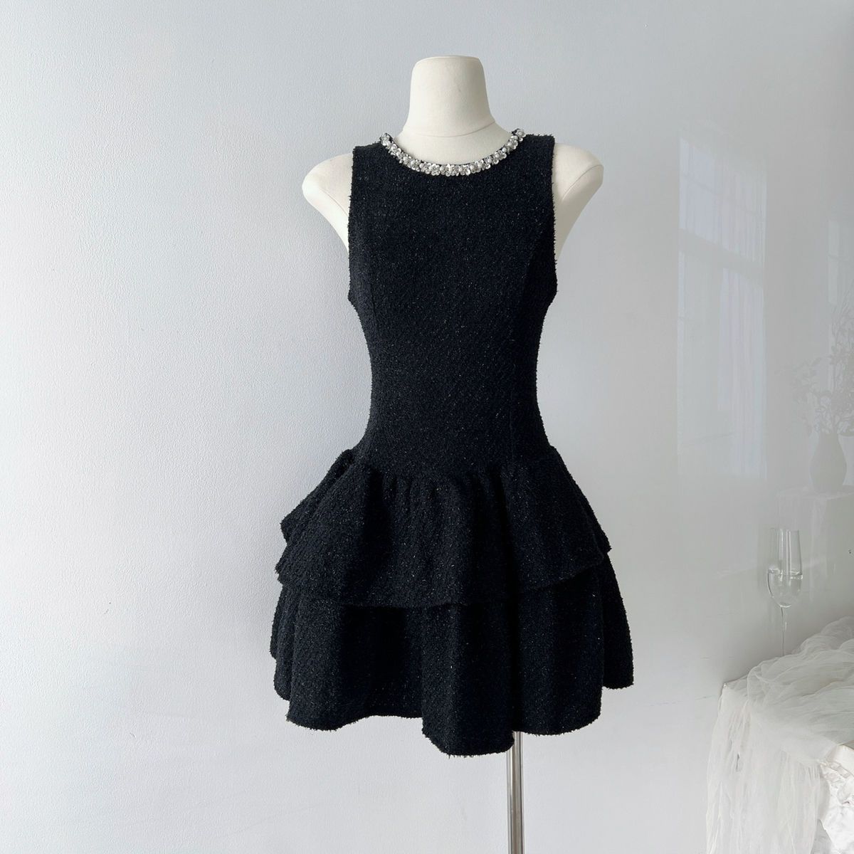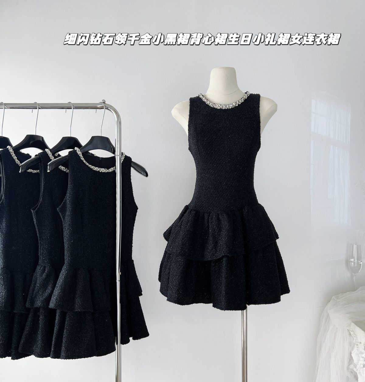 2025春季新款辣妹細閃鑽石領小黑裙背心裙女富家千金感生日小禮裙