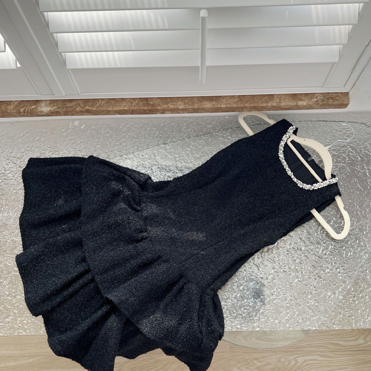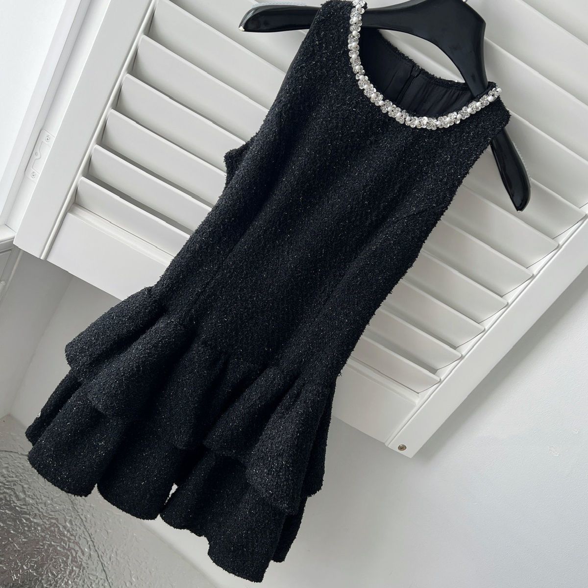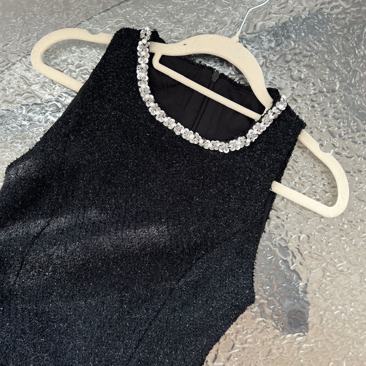 2025春季新款辣妹細閃鑽石領小黑裙背心裙女富家千金感生日小禮裙