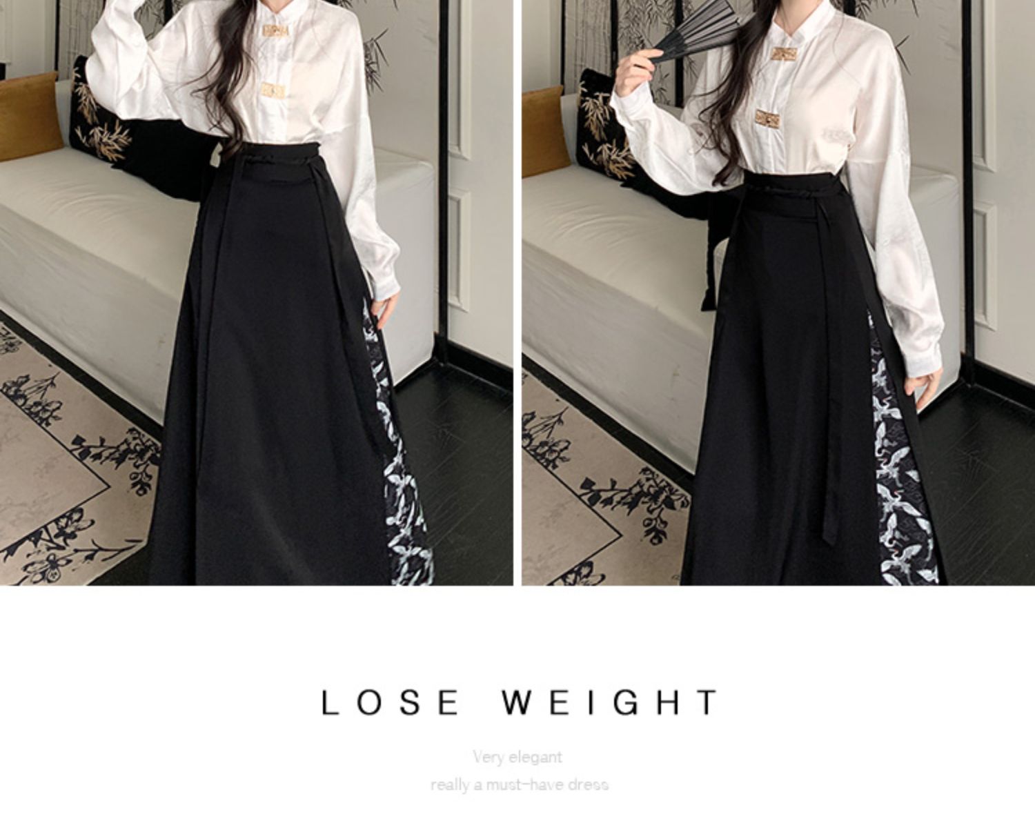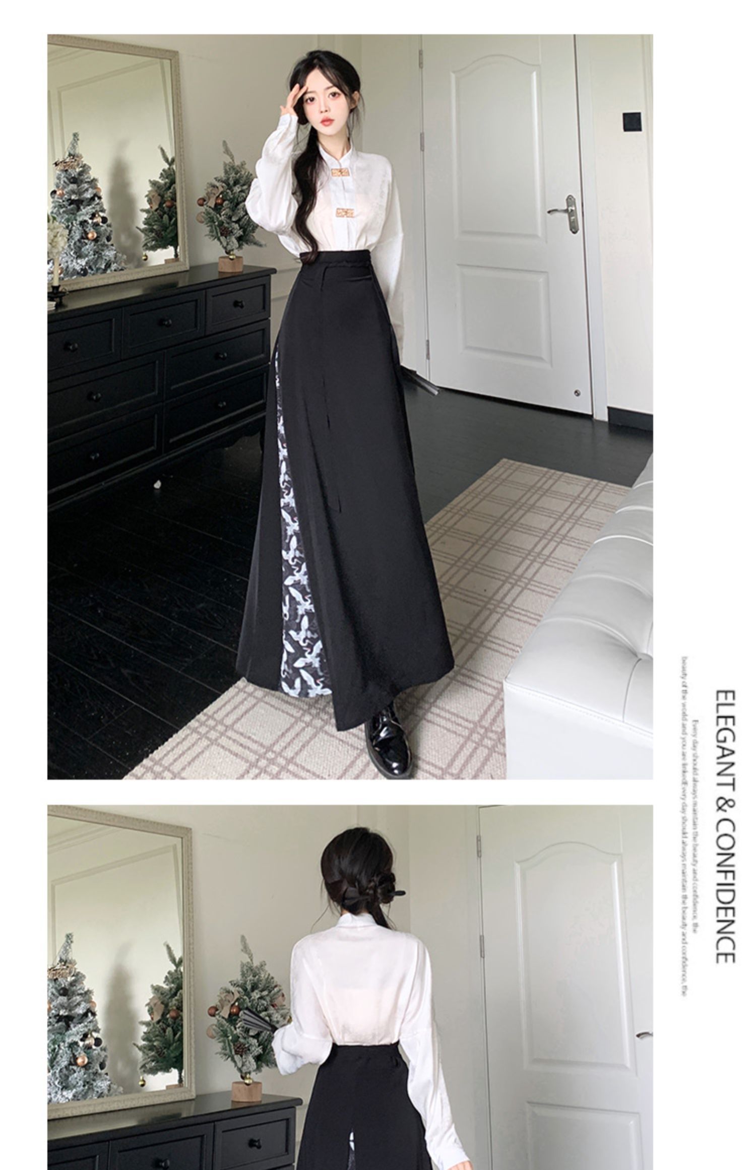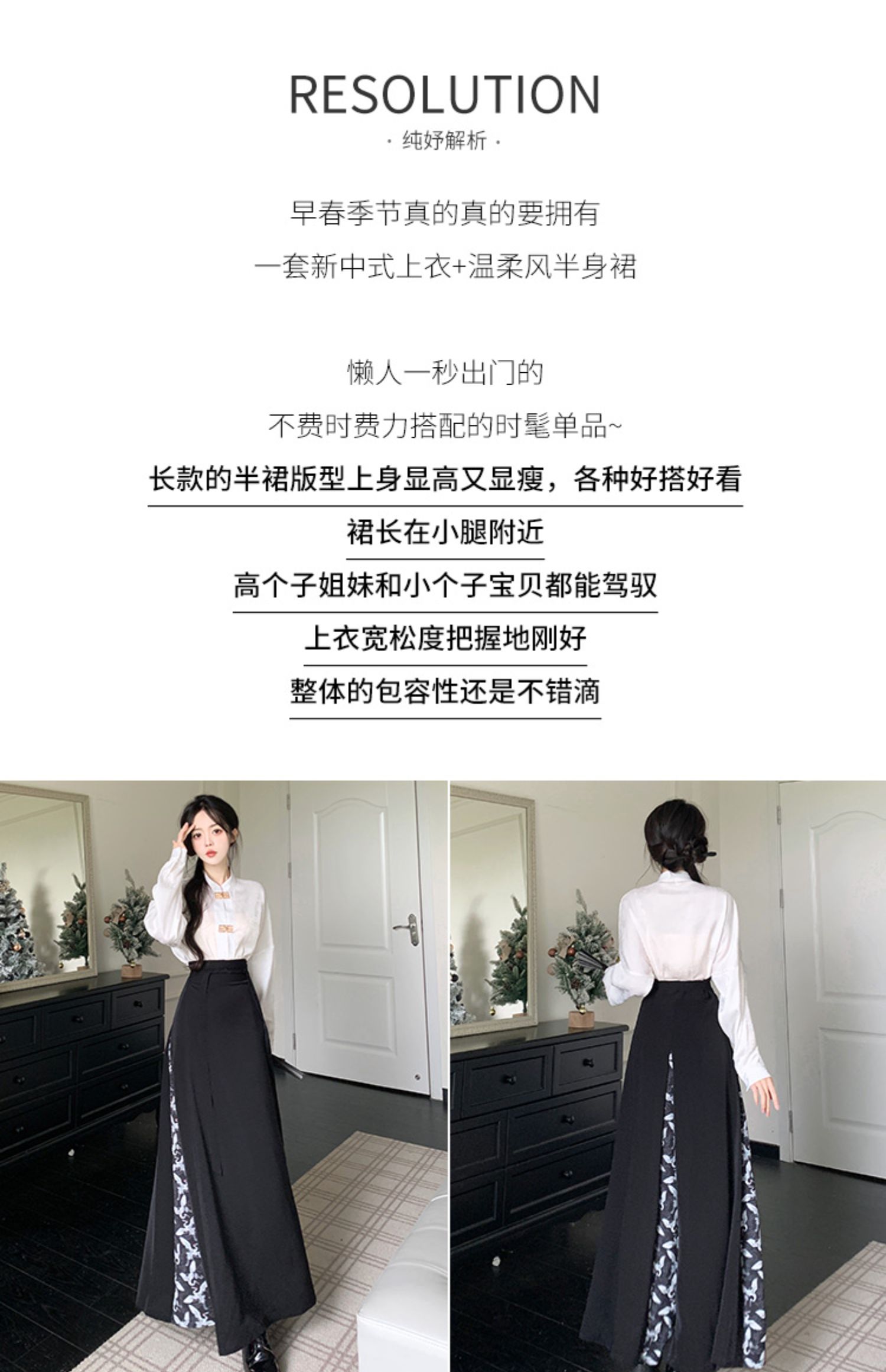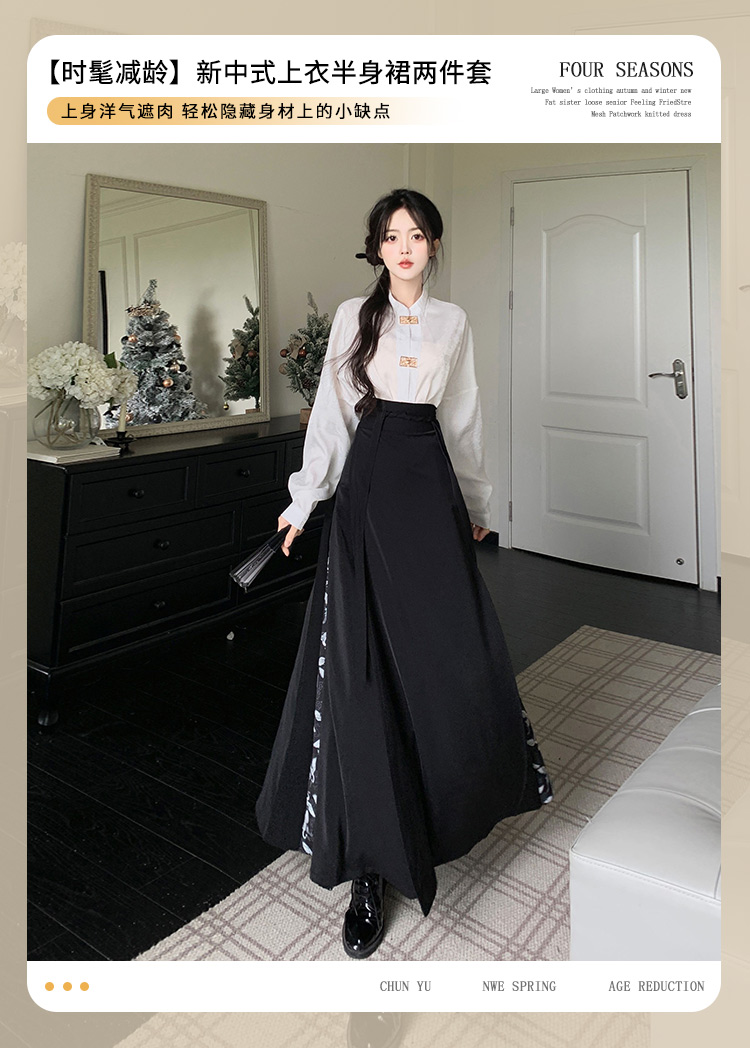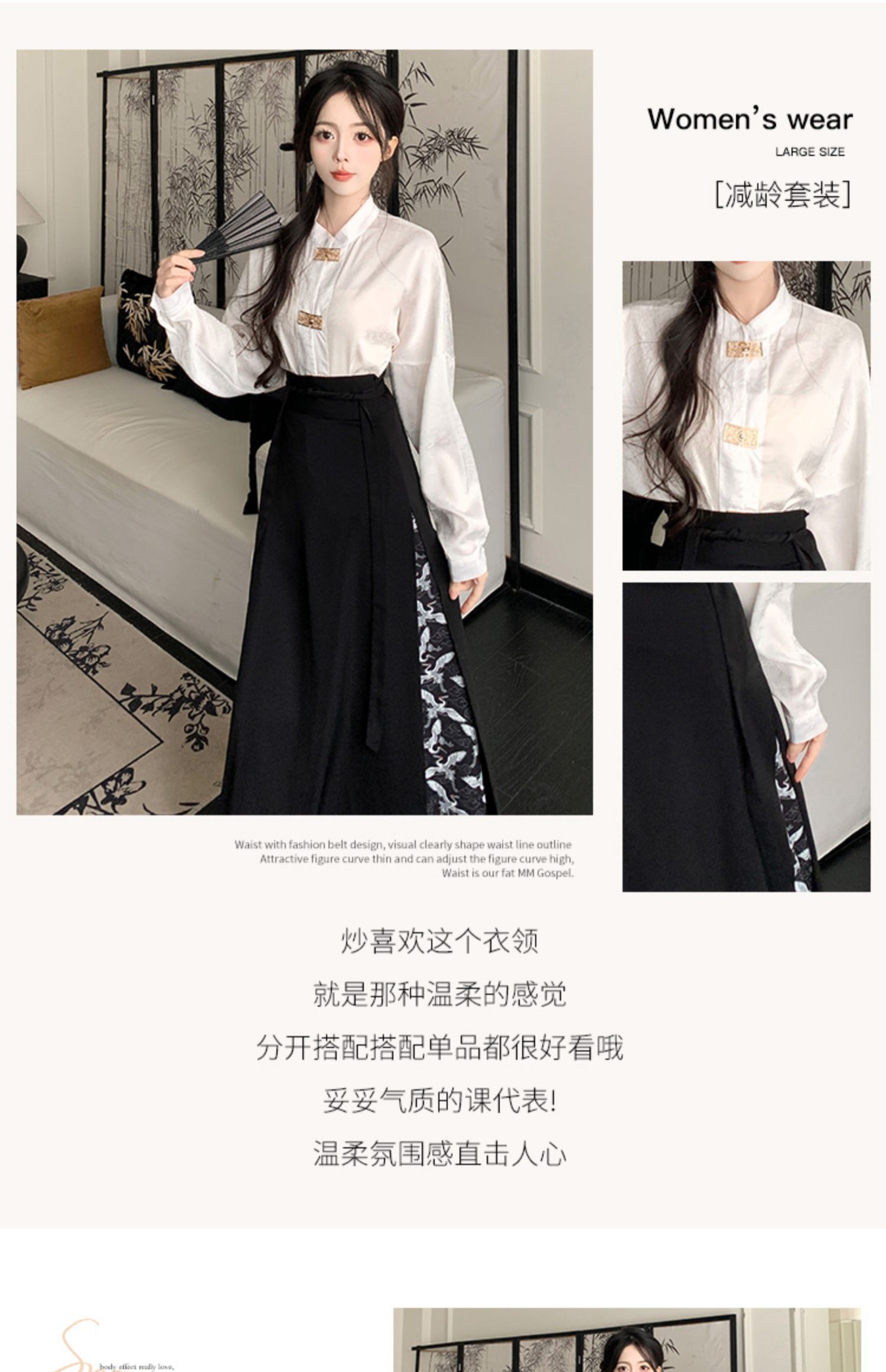 秋季大碼新中式女裝套裝裙國風漢服襯衫上衣高腰a字馬面裙兩件套